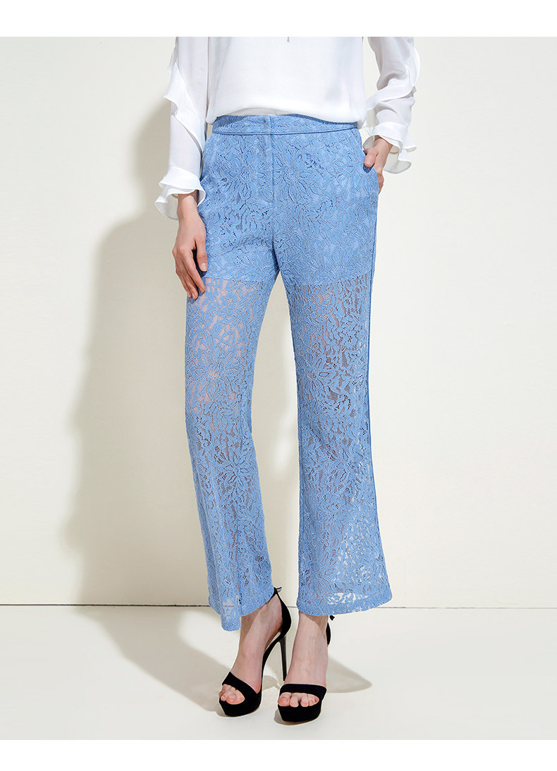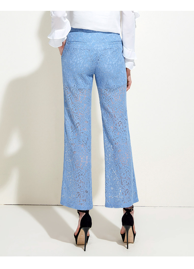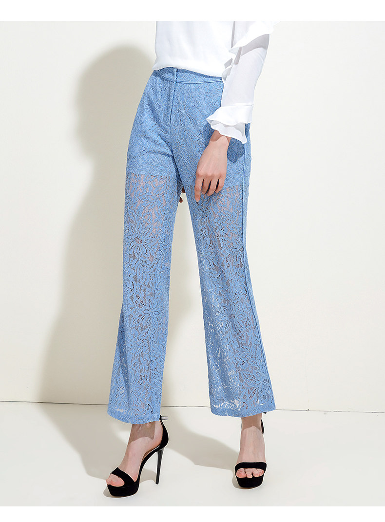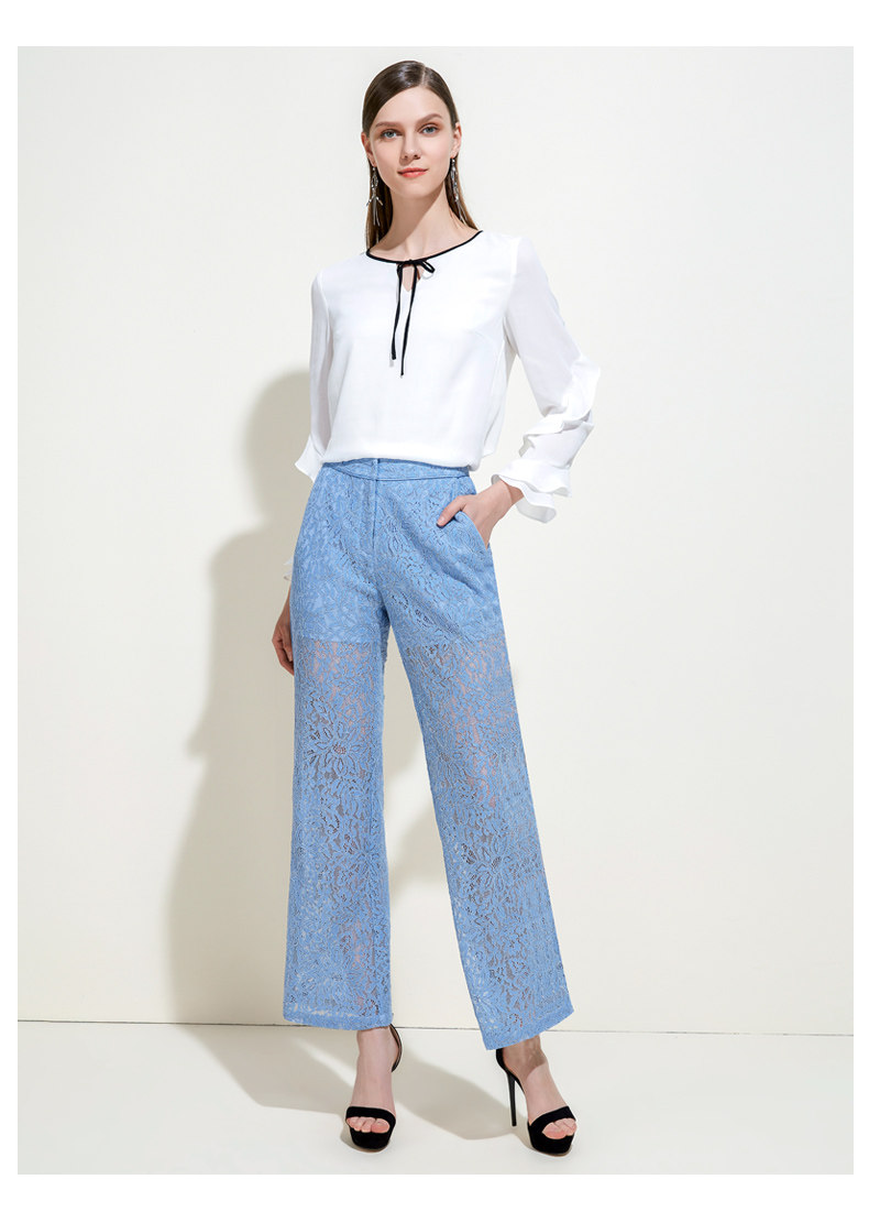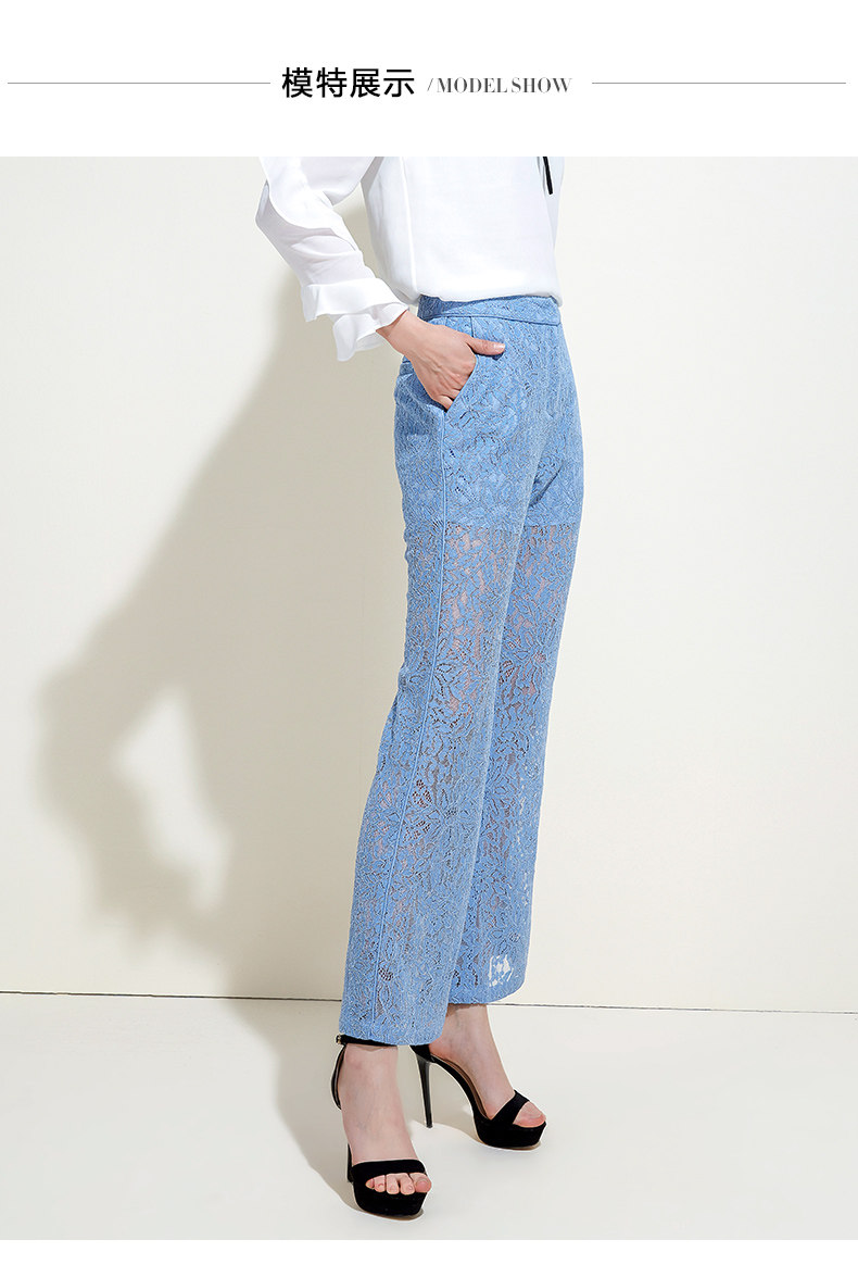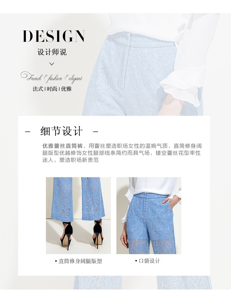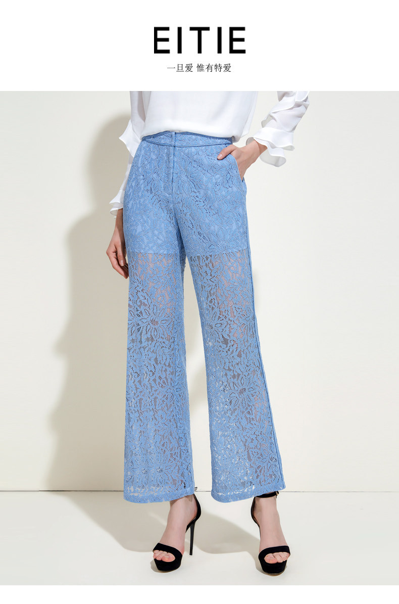 EITIE爱特爱女装夏季显瘦透气蕾丝钩花阔腿直筒休闲裤夏5905616