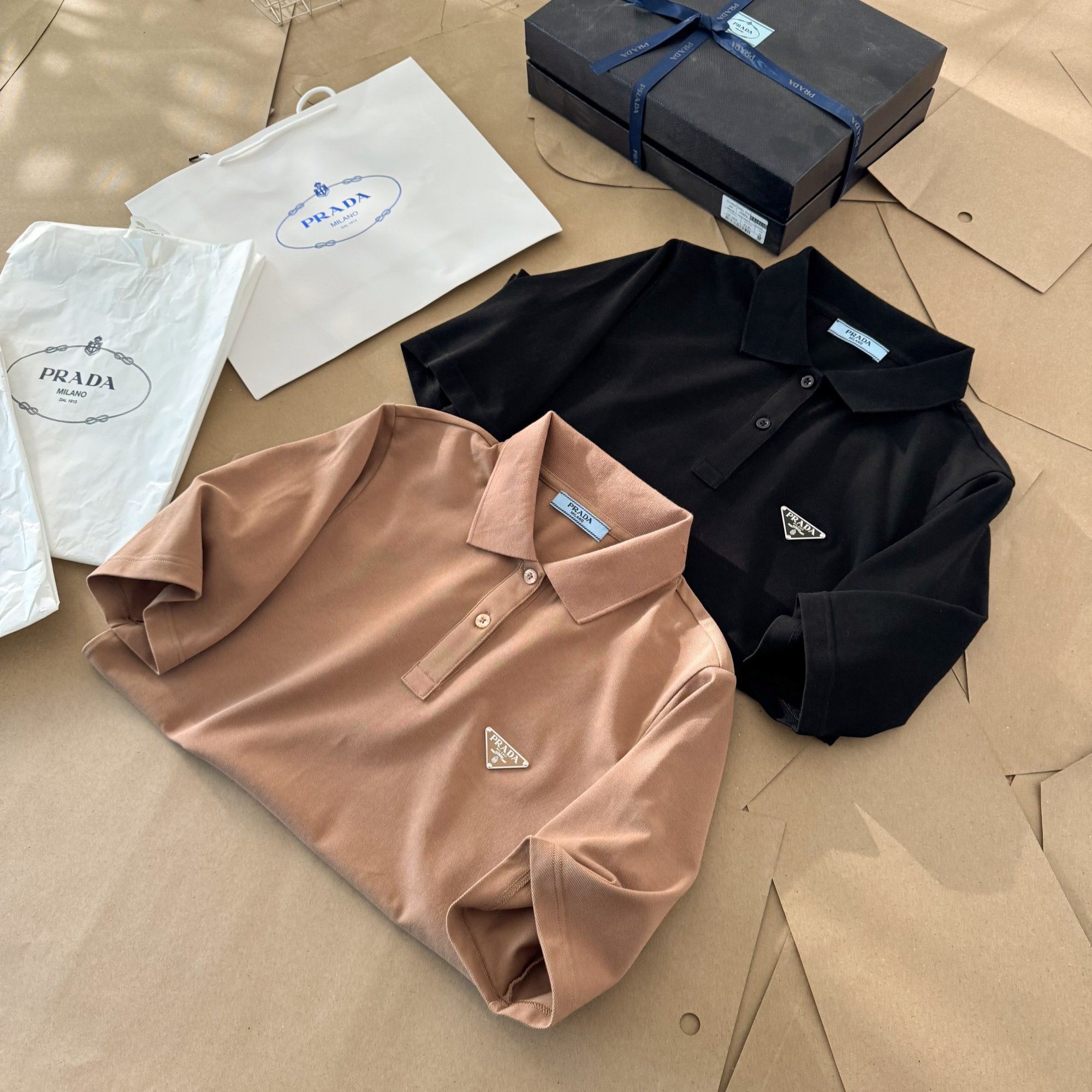 时尚商务休闲系列!高端品质,简单而不失大方,绝对是你这个夏天最爱的一款商务休闲POLO衫!注入各种元素风格的POLO衫,已经不再有印象中单调沉闷的感觉了!既有T恤的休闲!又有衬衫的沉稳大气!集商务风格和运动风格于一身!绝对是百搭的单品!上班穿着大气沉稳,下班穿着内敛有型,是魅力型男的不二选择!每个成功男士的衣柜里必须有一件Prada的POLO衫!