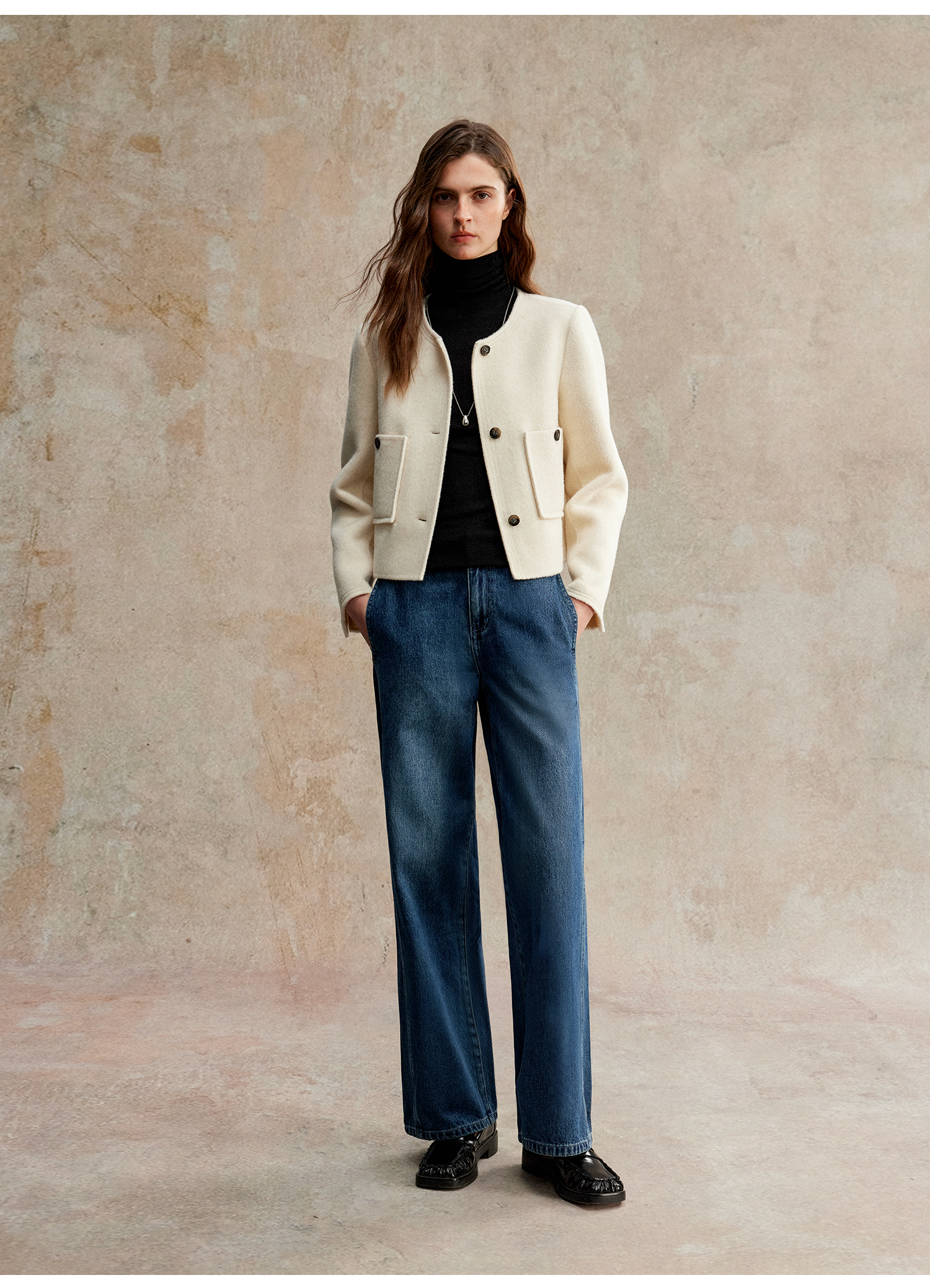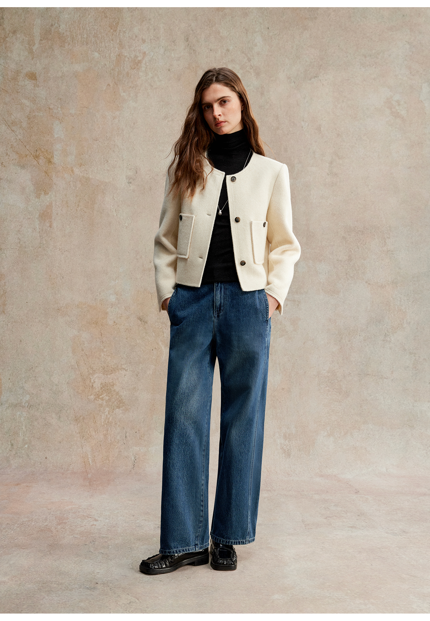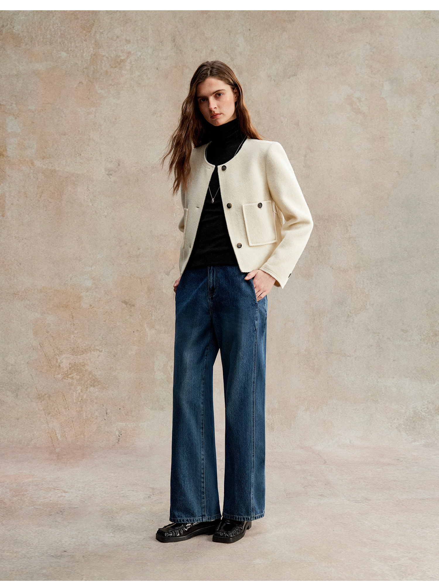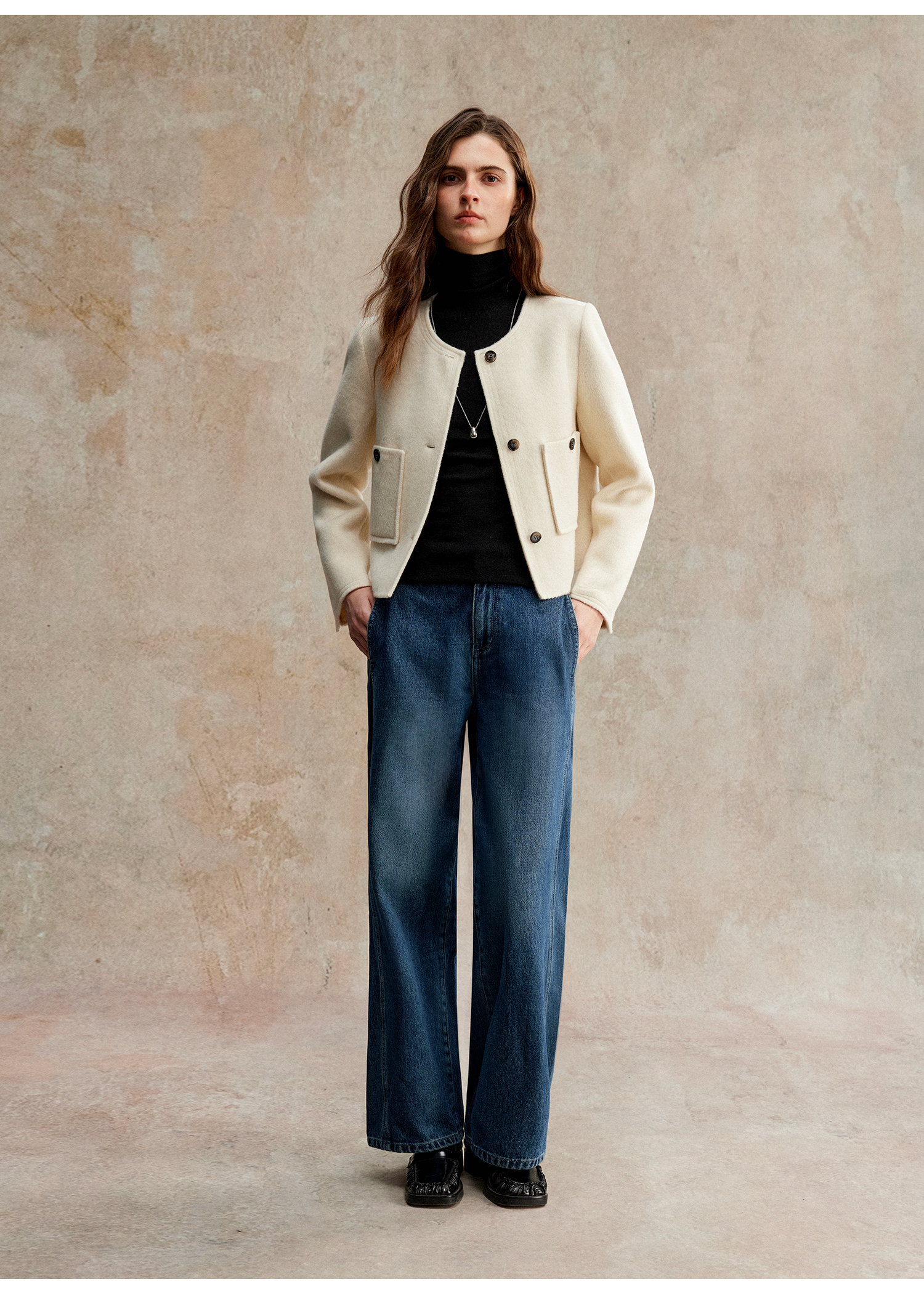 C+IMPRESS/西嘉美利奴羊毛 经典箱型小香风短款圆领双面毛呢外套