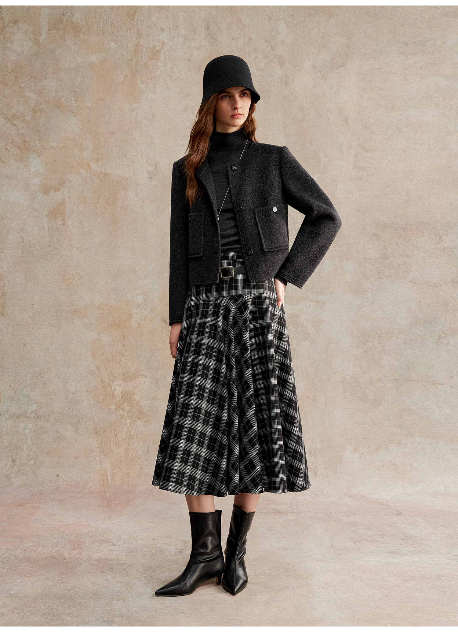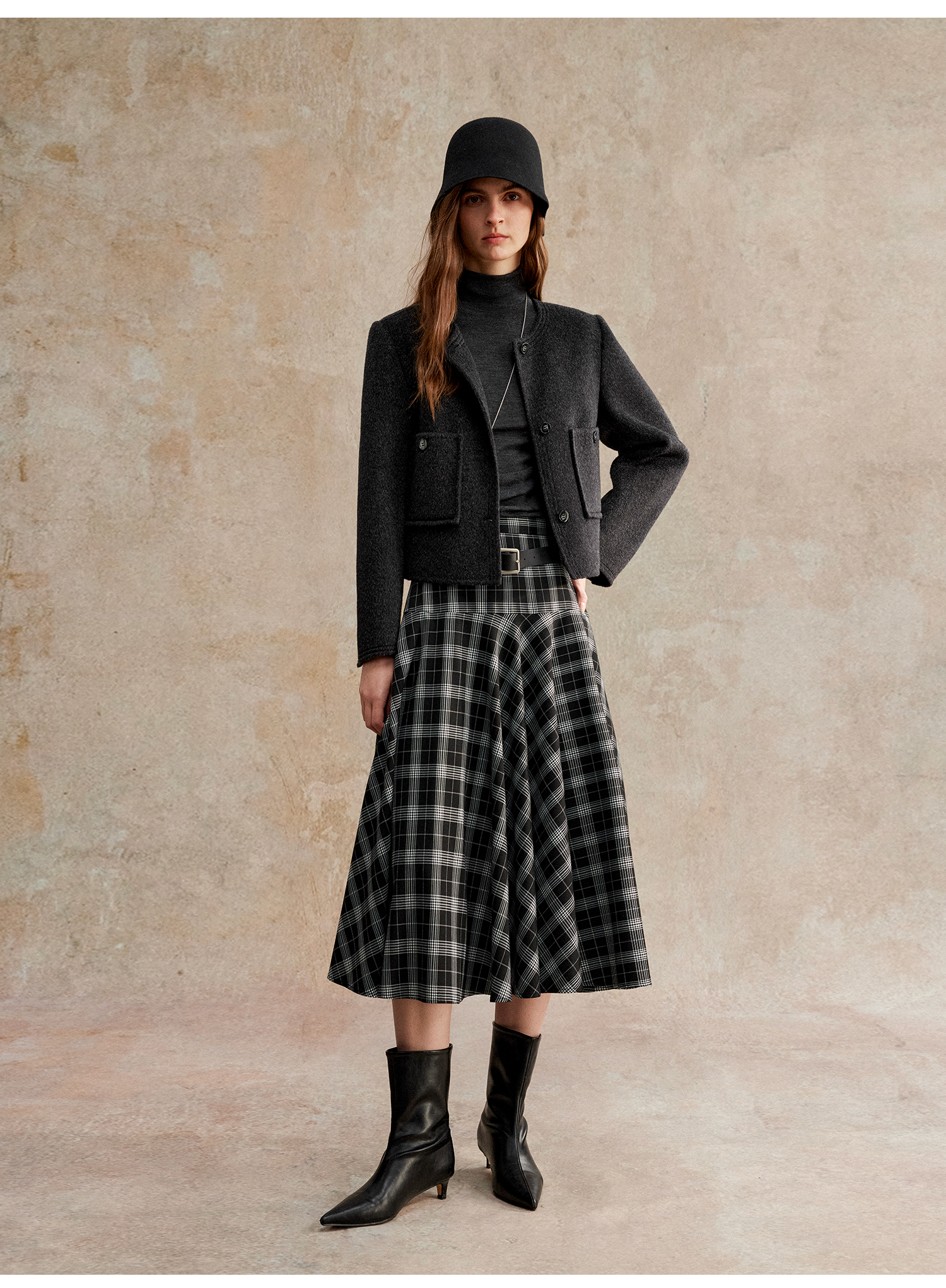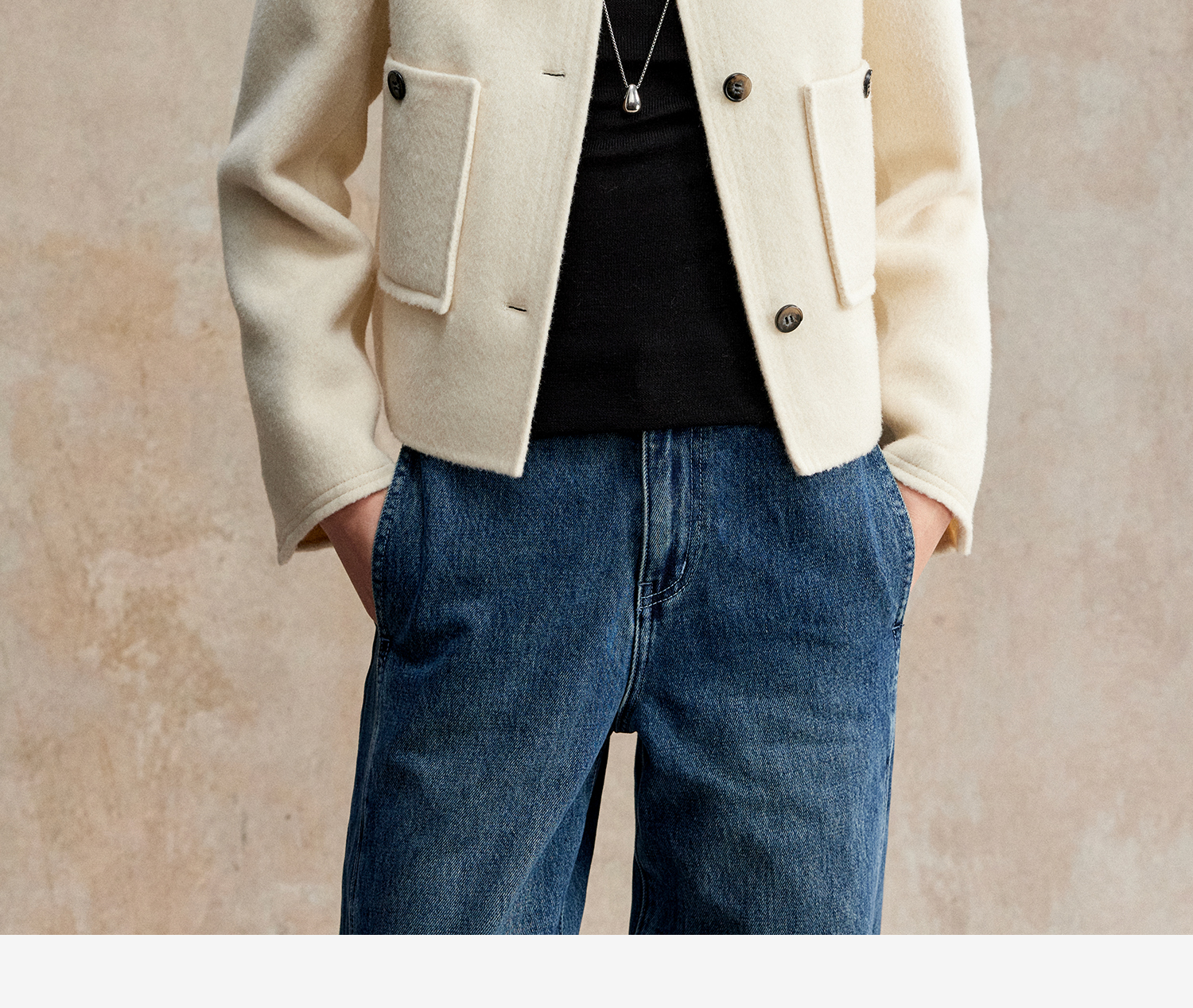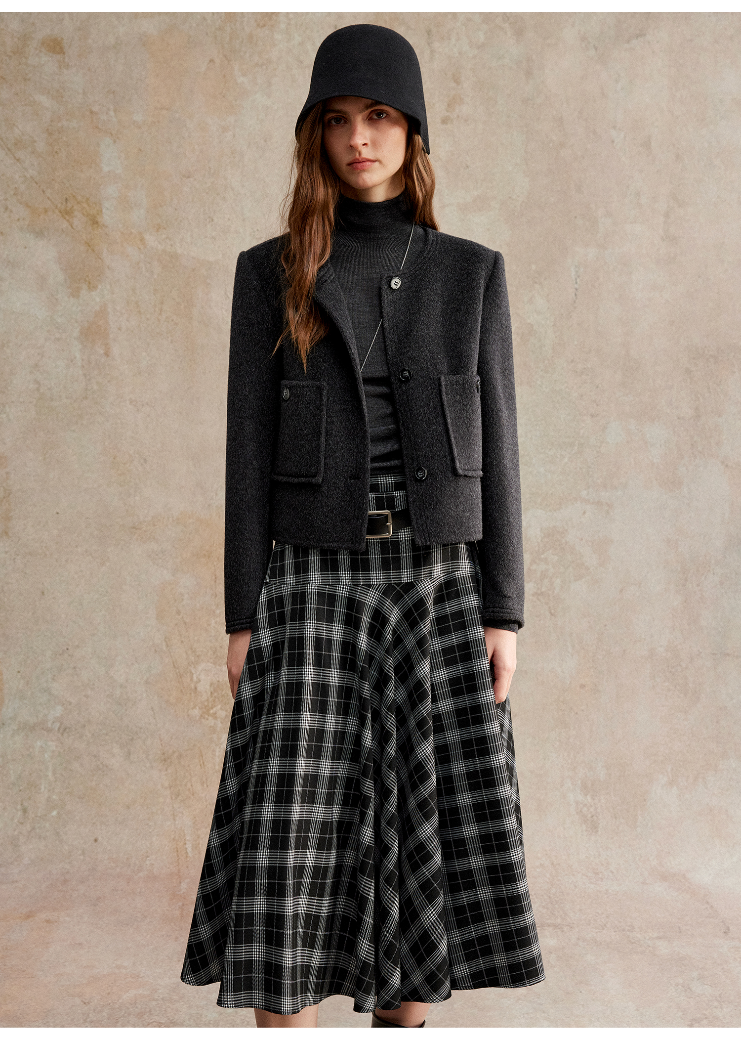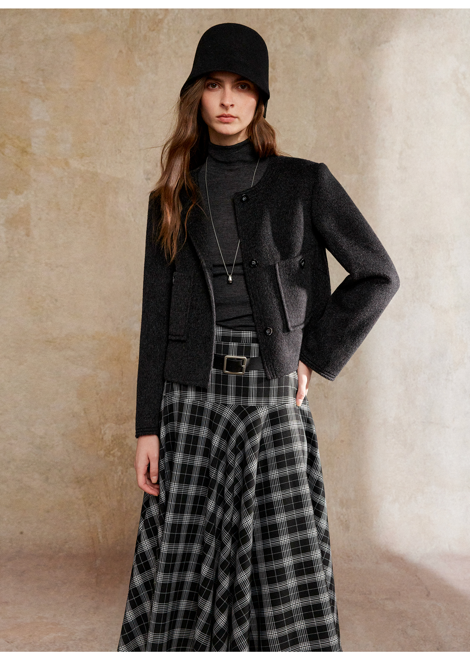 C+IMPRESS/西嘉美利奴羊毛 经典箱型小香风短款圆领双面毛呢外套
