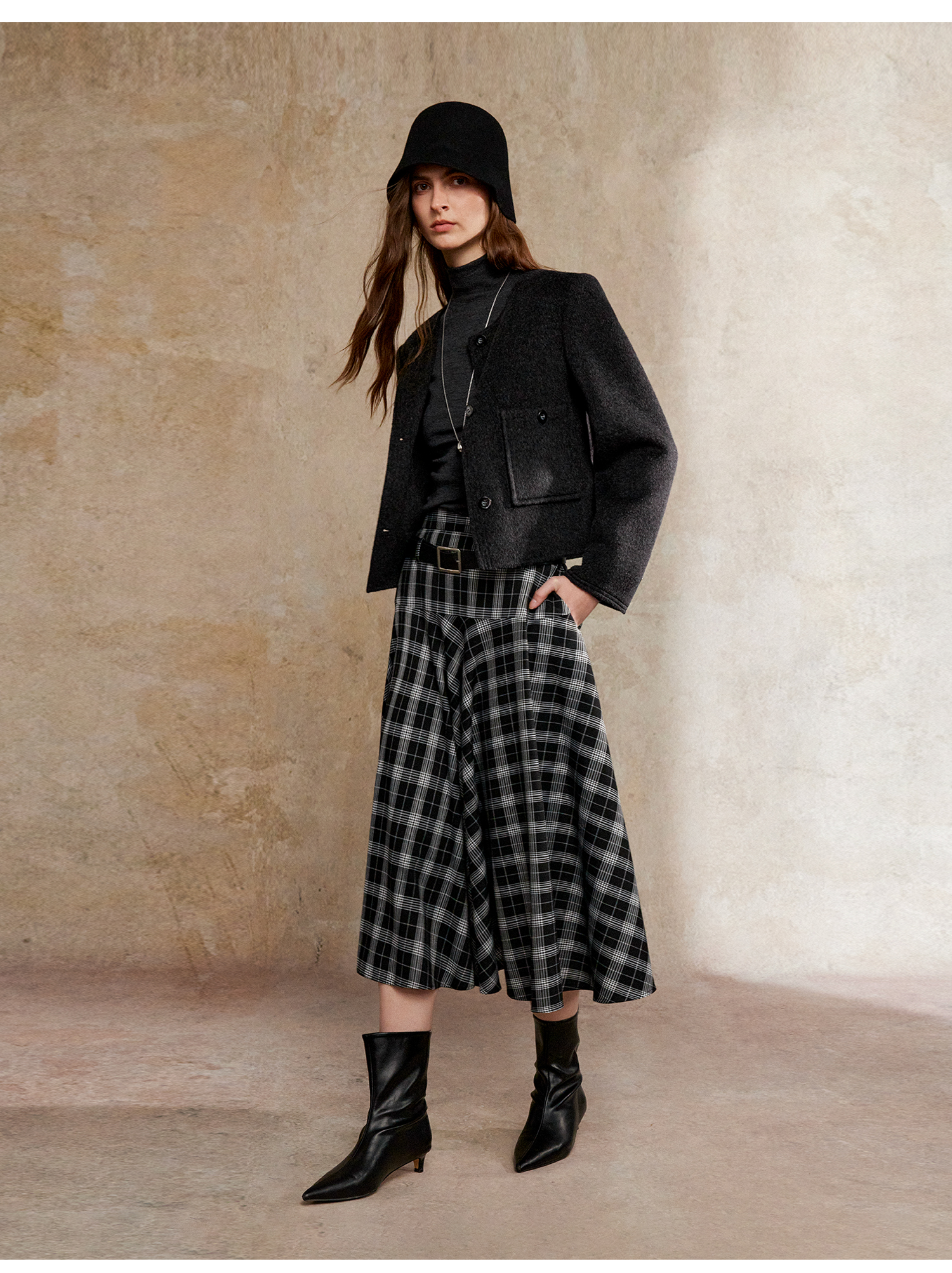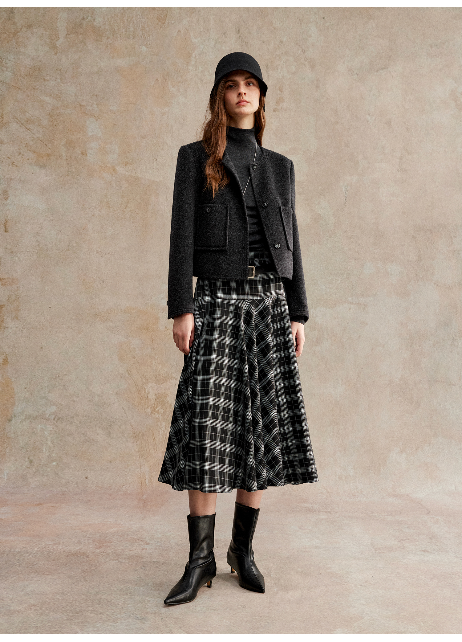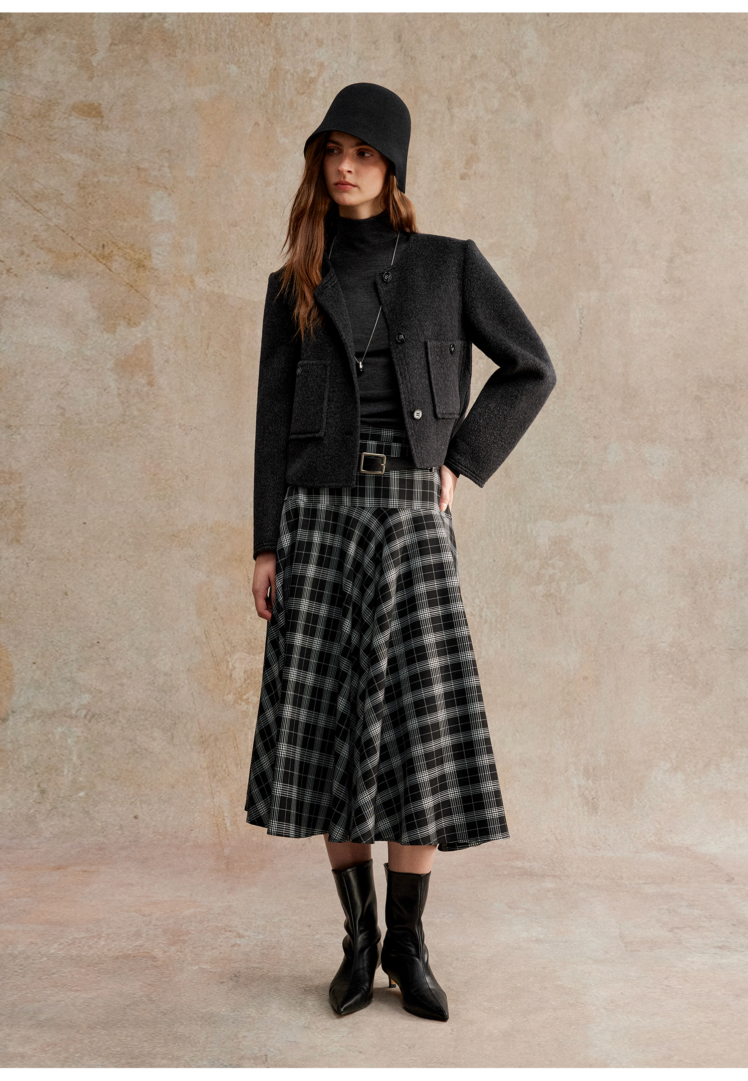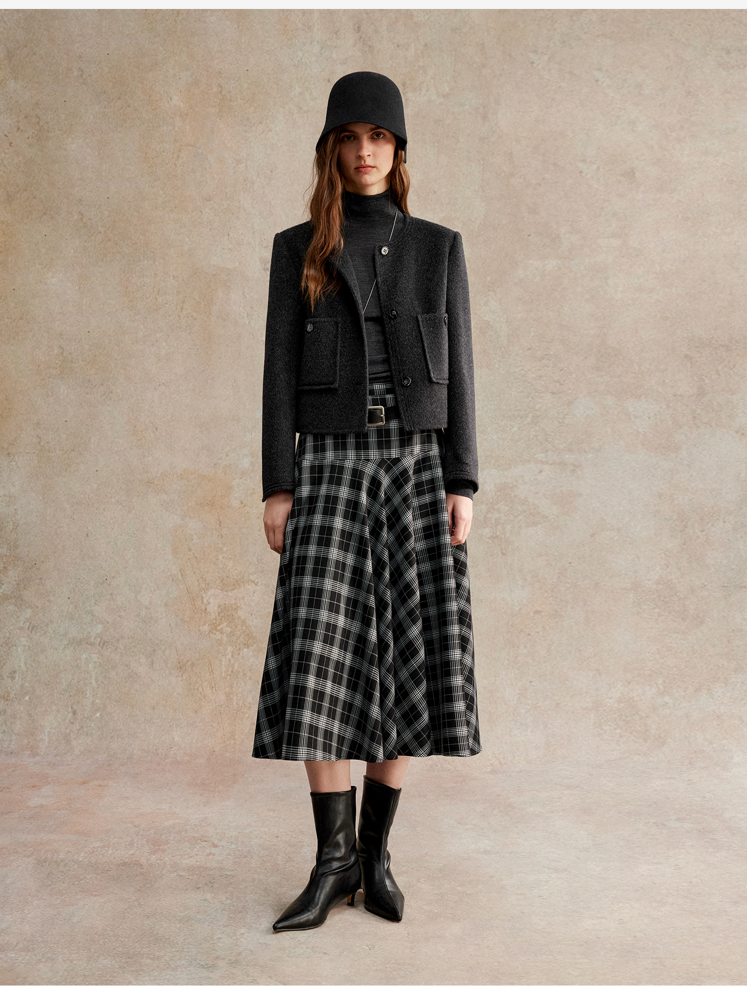C+IMPRESS/西嘉美利奴羊毛 经典箱型小香风短款圆领双面毛呢外套