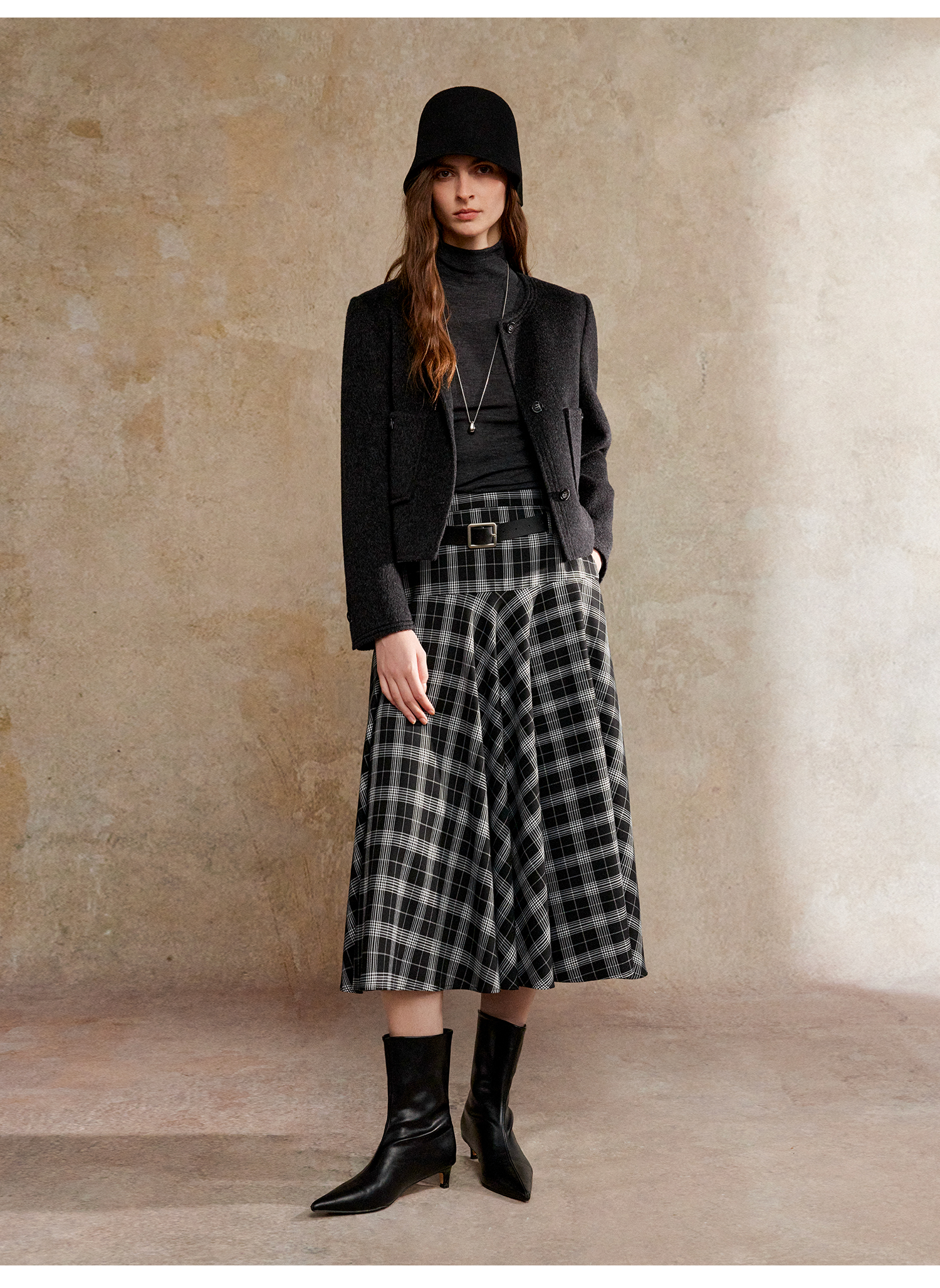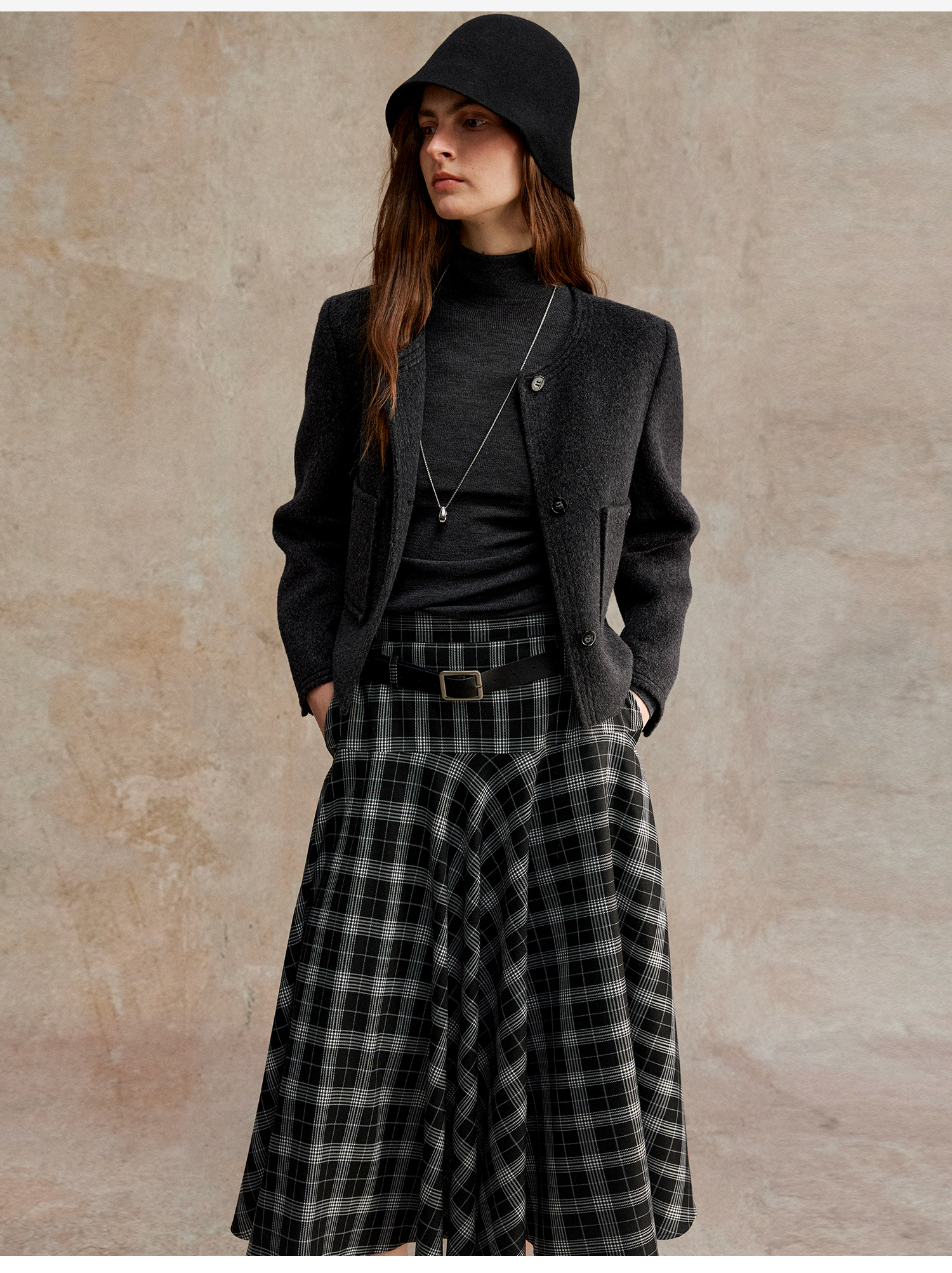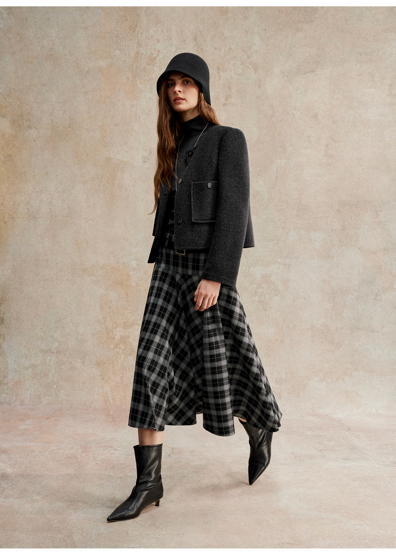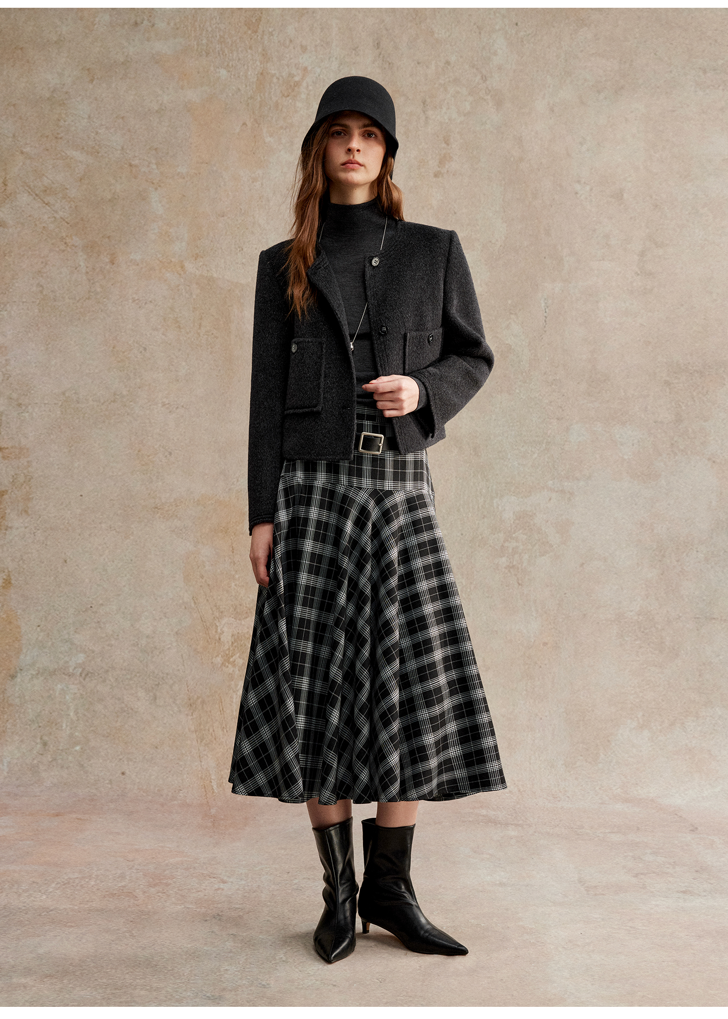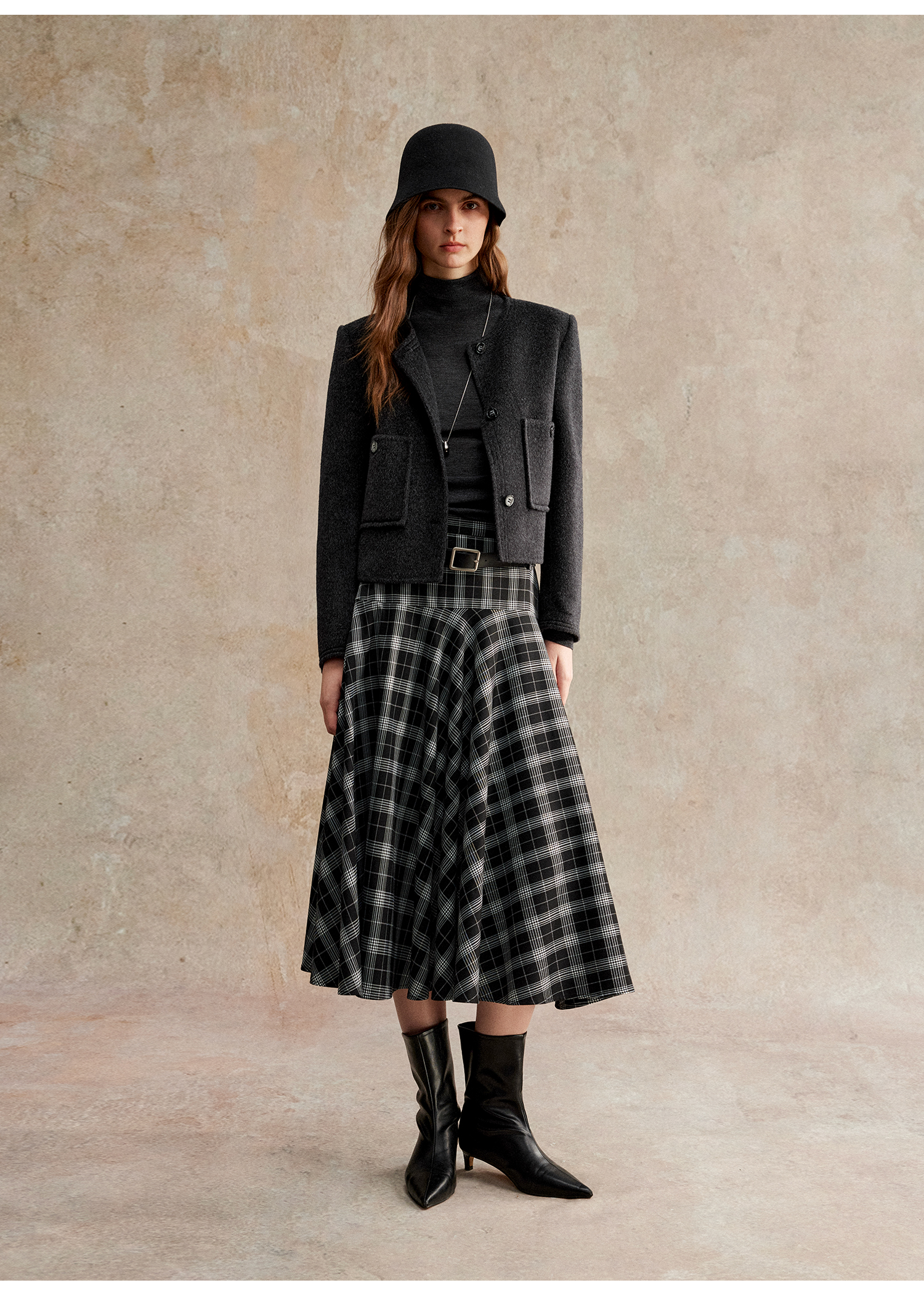 C+IMPRESS/西嘉美利奴羊毛 经典箱型小香风短款圆领双面毛呢外套