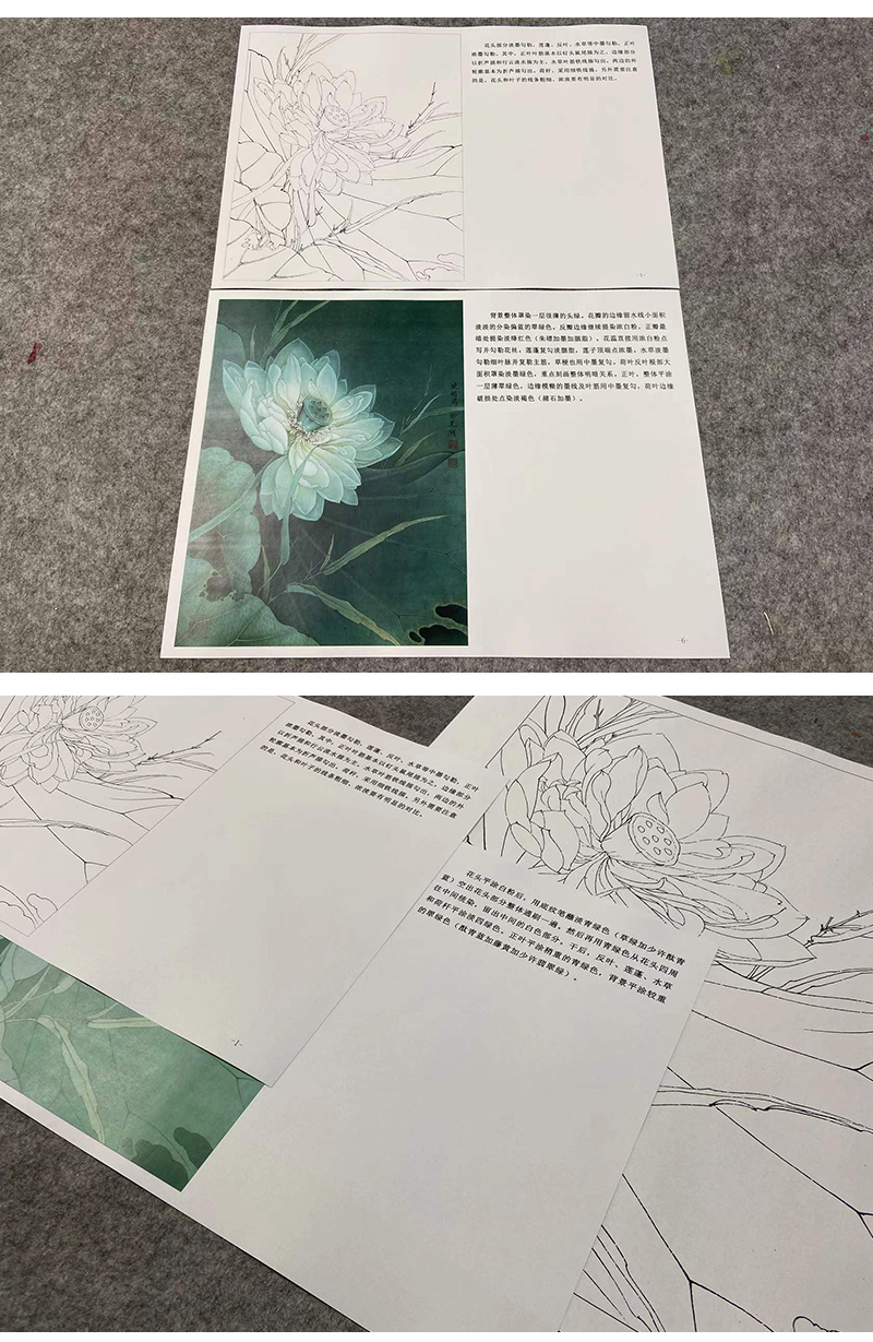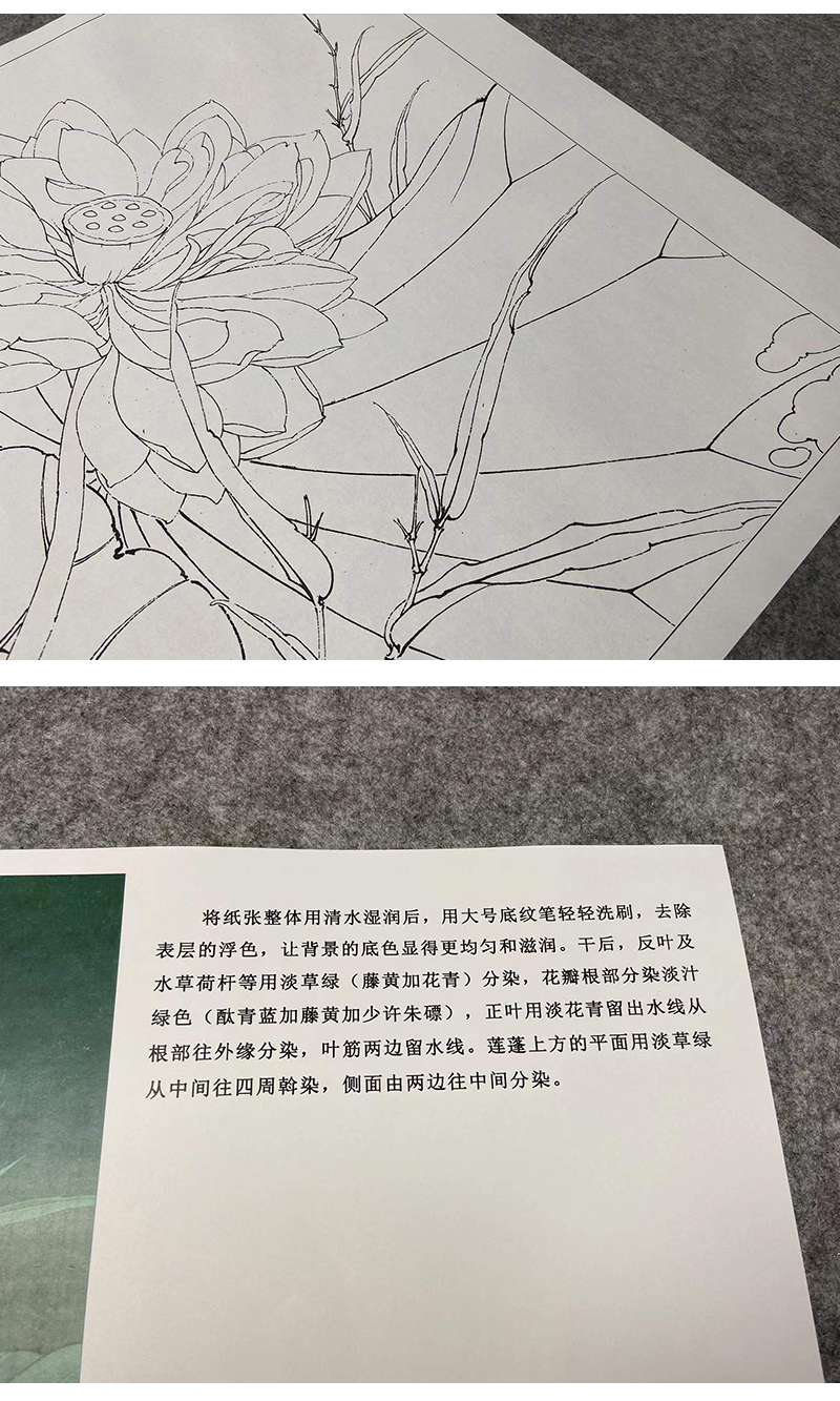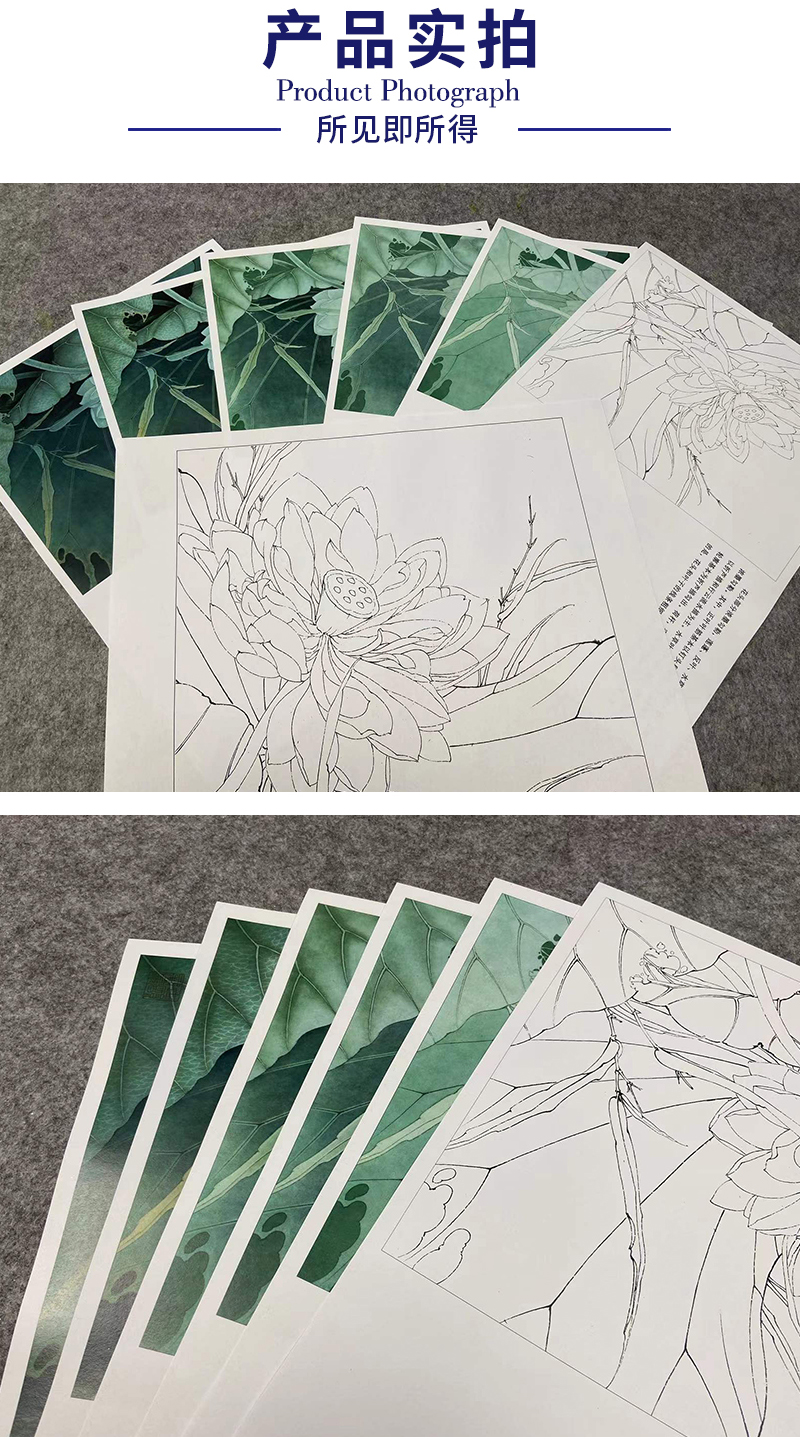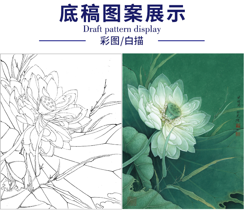【有步骤、大彩图】李晓明工笔画白描底稿斗方小品《荷池清梦》荷花初学者临摹花鸟线稿K088