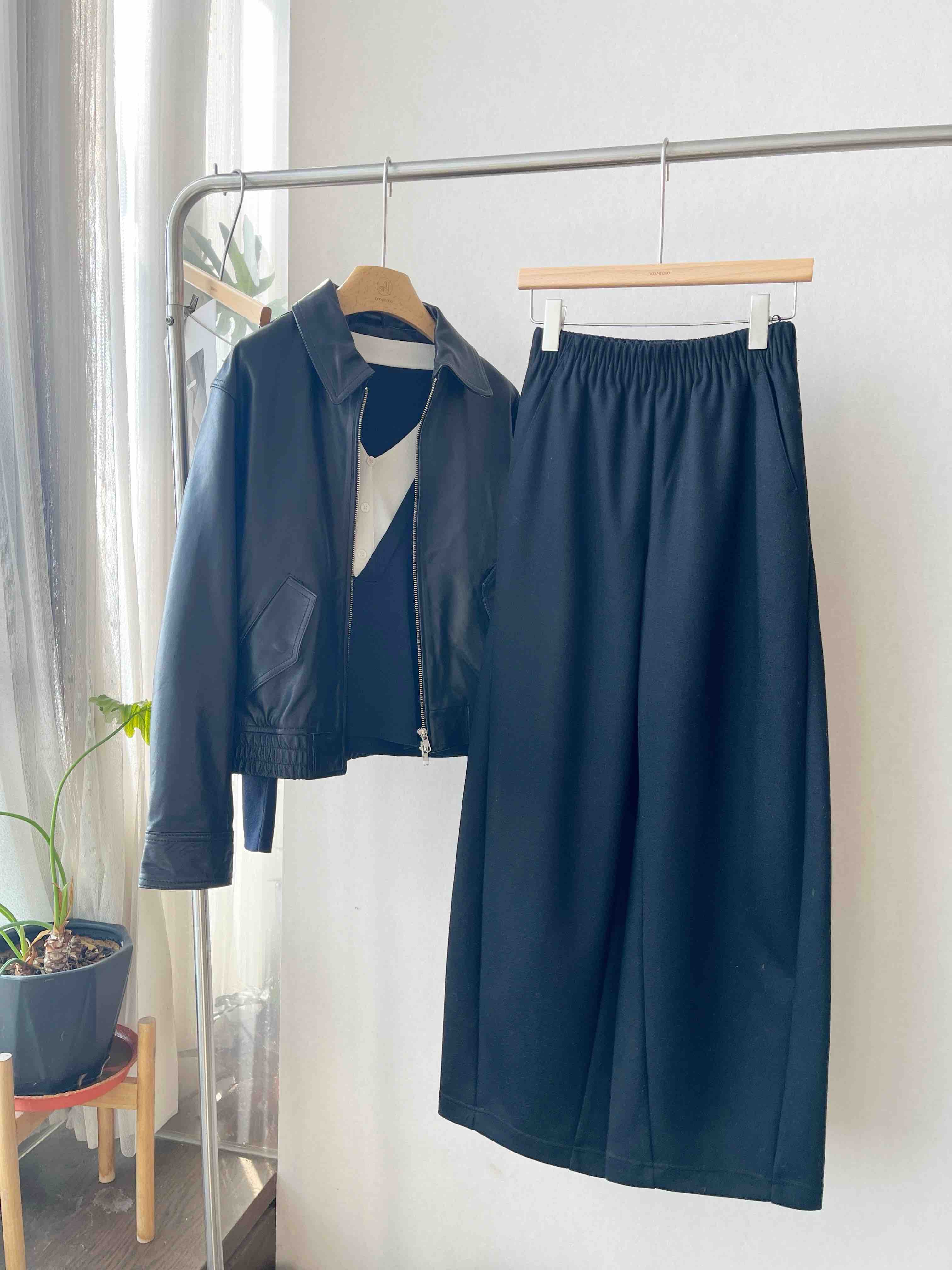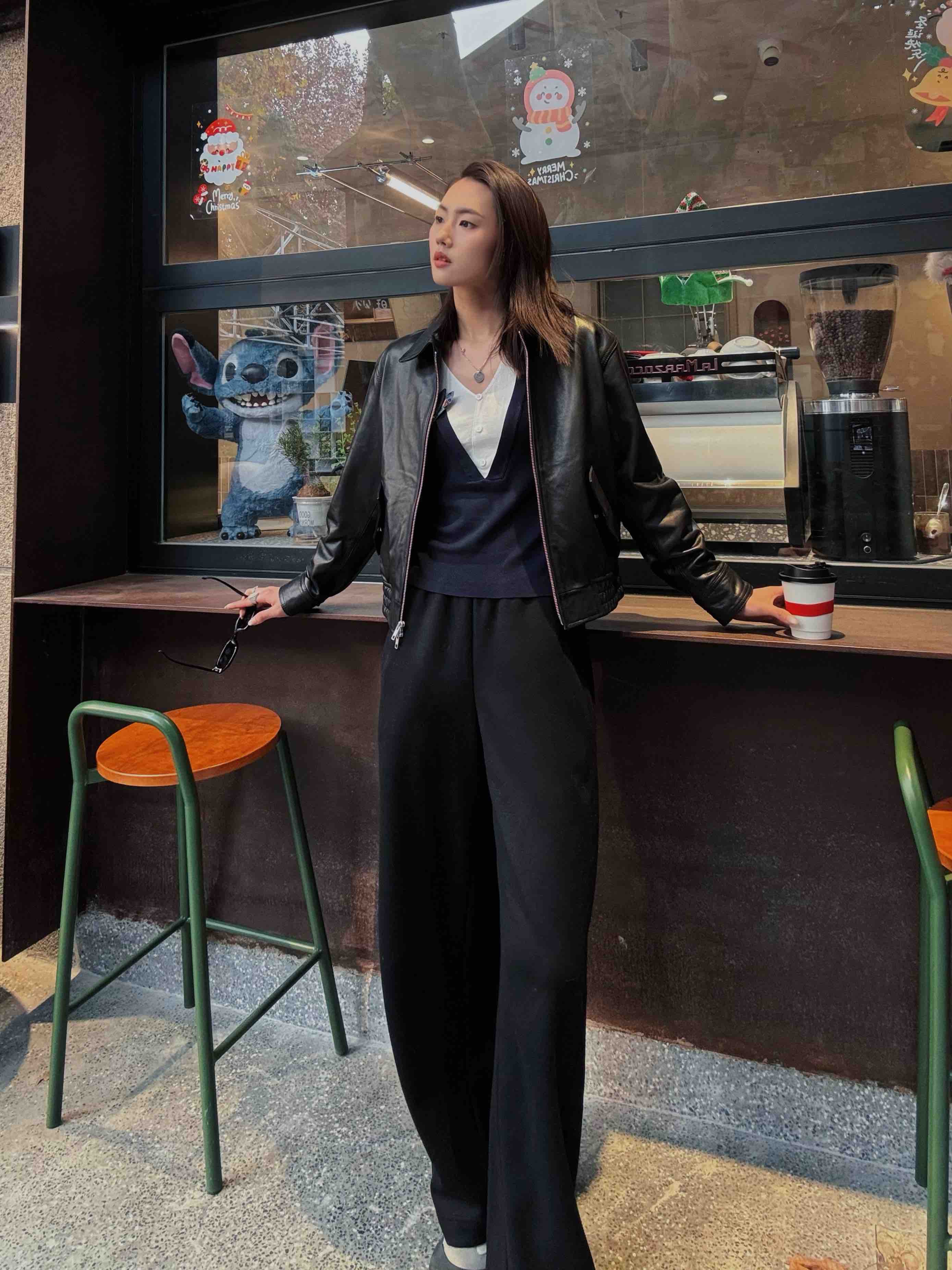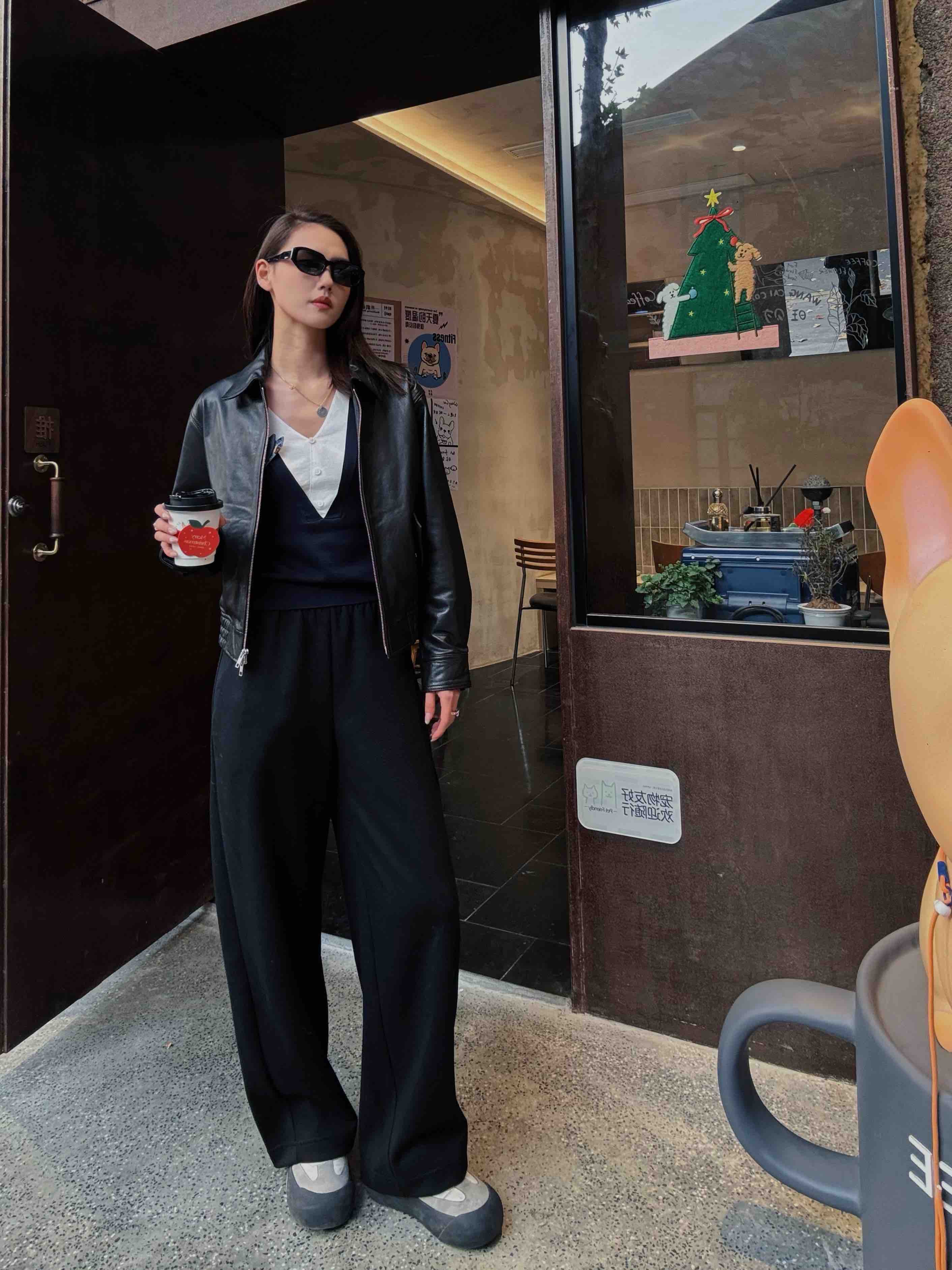 · 【显瘦王者版型】 经典黑色结合垂顺宽腿剪裁,配合毛呢肌理,视觉强力收窄身形,重塑"竹竿腿"比例。