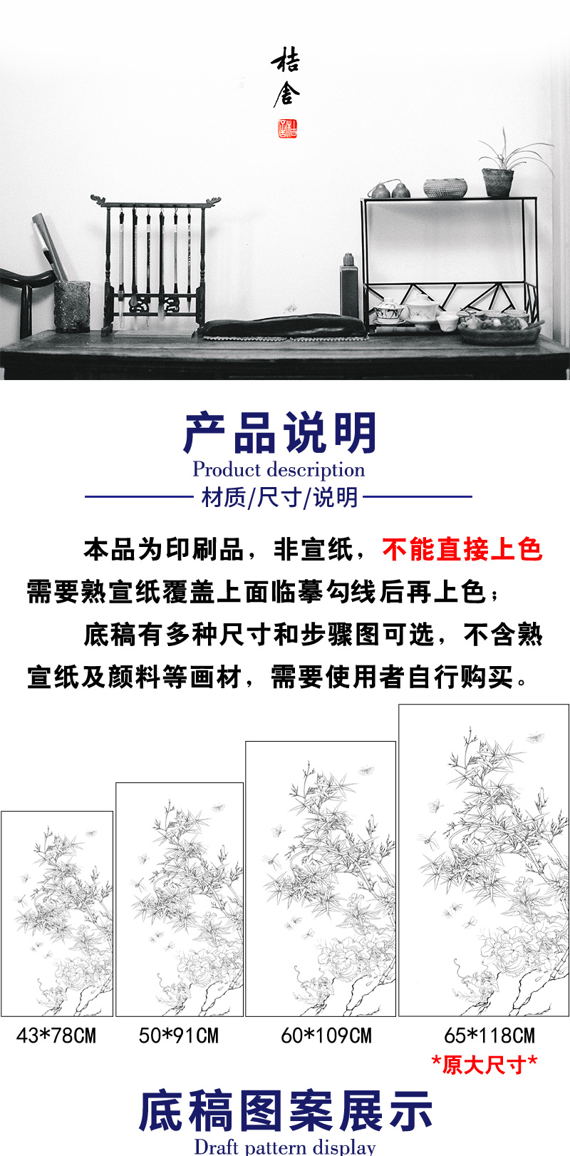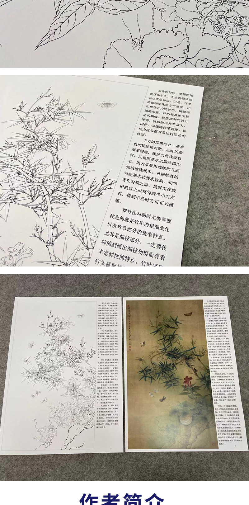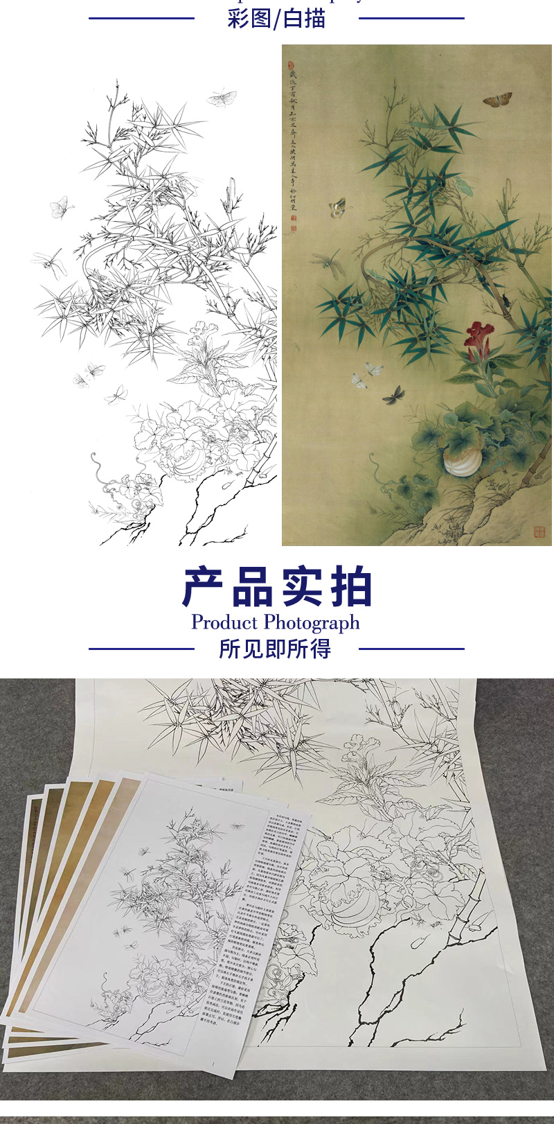 【有步骤、大彩图】李晓明工笔画白描底稿《意临宋人竹虫图轴》翠竹初学者临摹花鸟线稿KC23