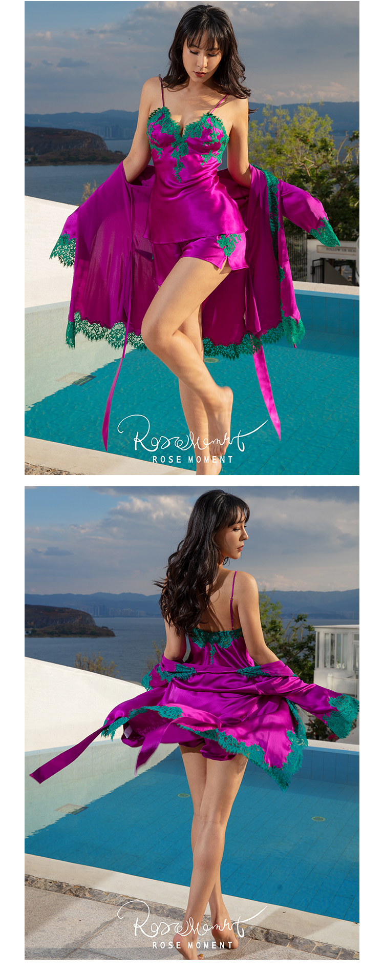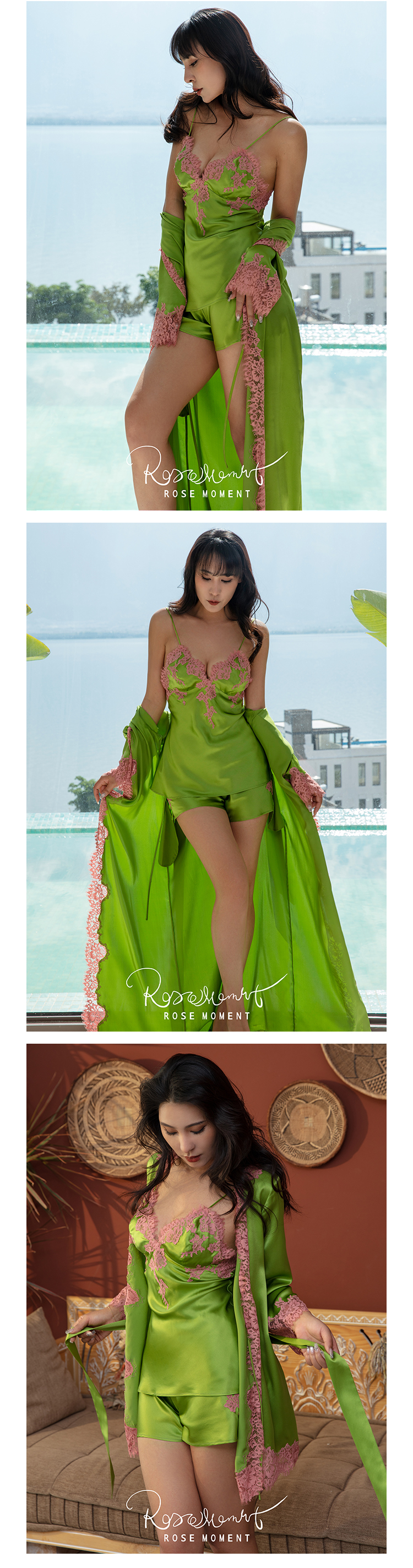 法式真丝短吊短裤长裤家居服 T9210