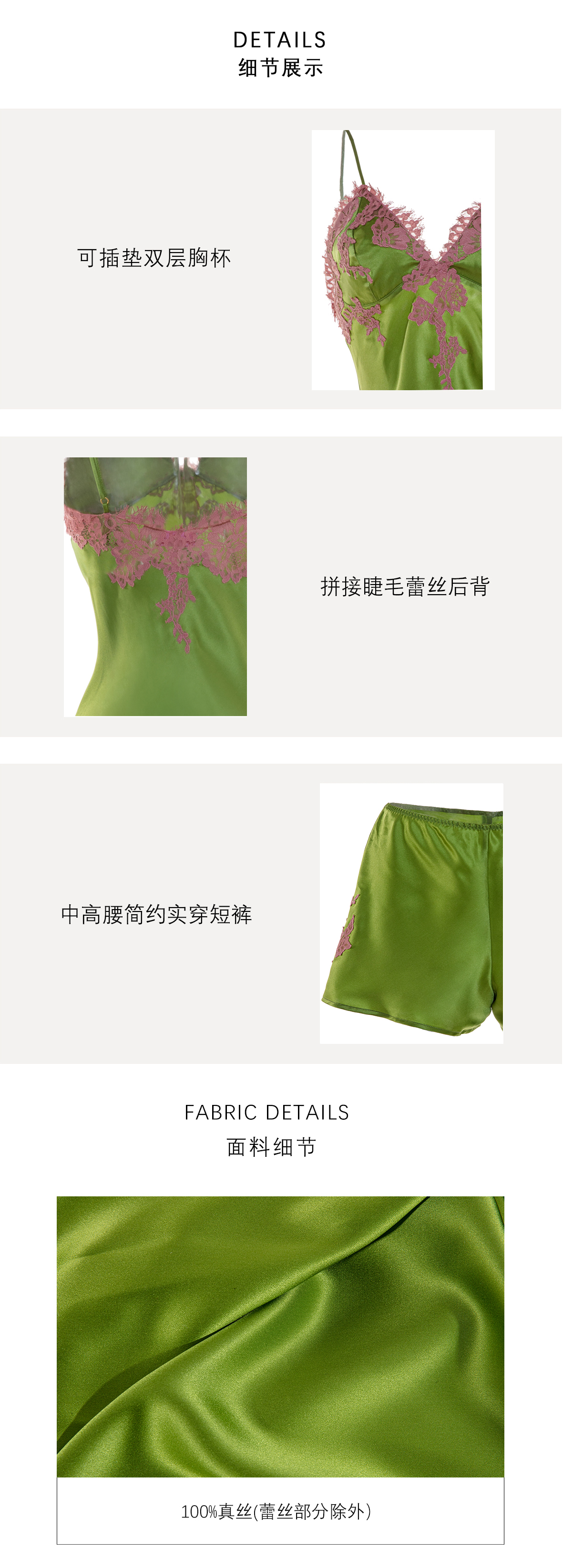 法式真丝蕾丝吊带短裤套装夏季性感睡衣家居服 T250313
