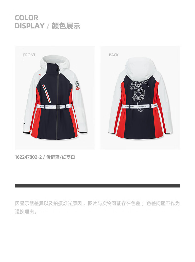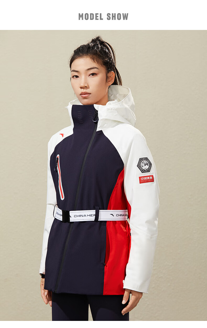 【无腰带,介意慎拍】【M/L断码】安踏中国冰雪女款外套冬滑雪棉服防水透湿连帽风衣162247802【库存有限,如无货将做退款,介意慎拍!】