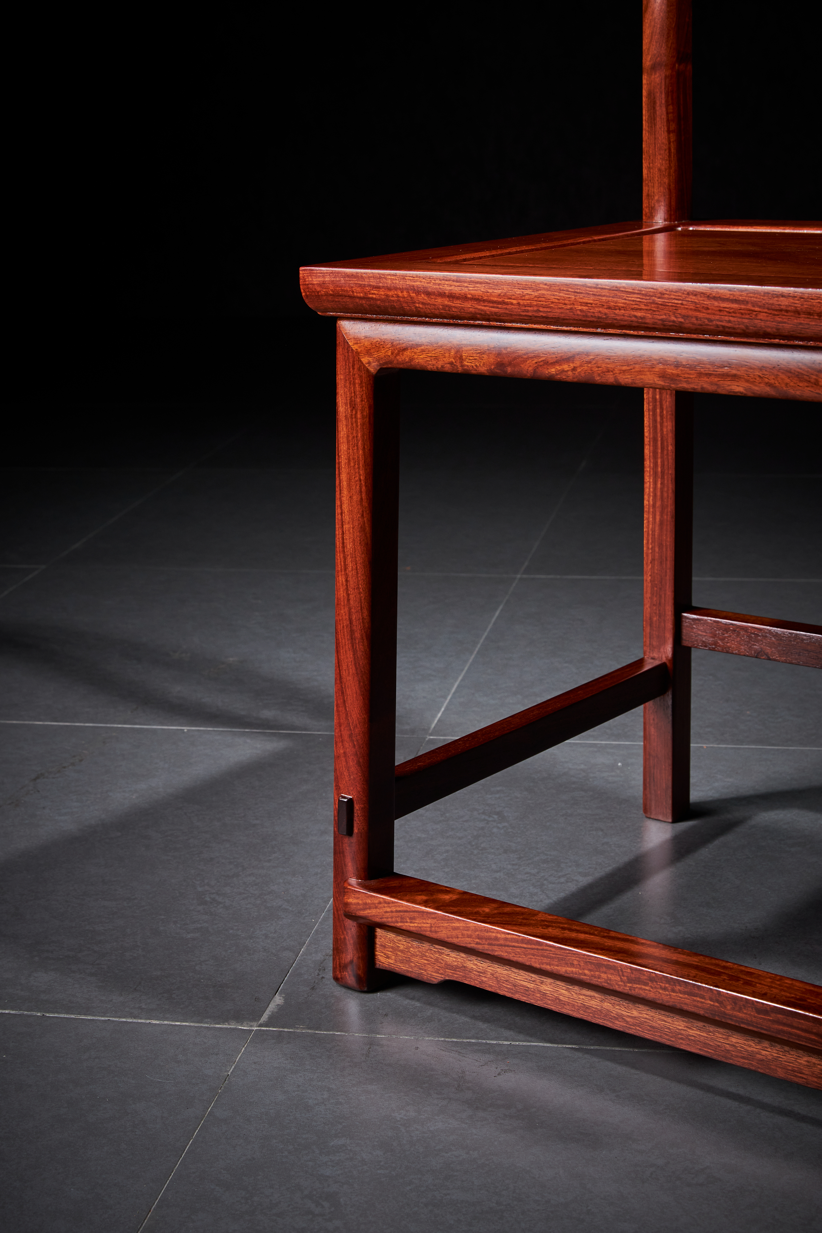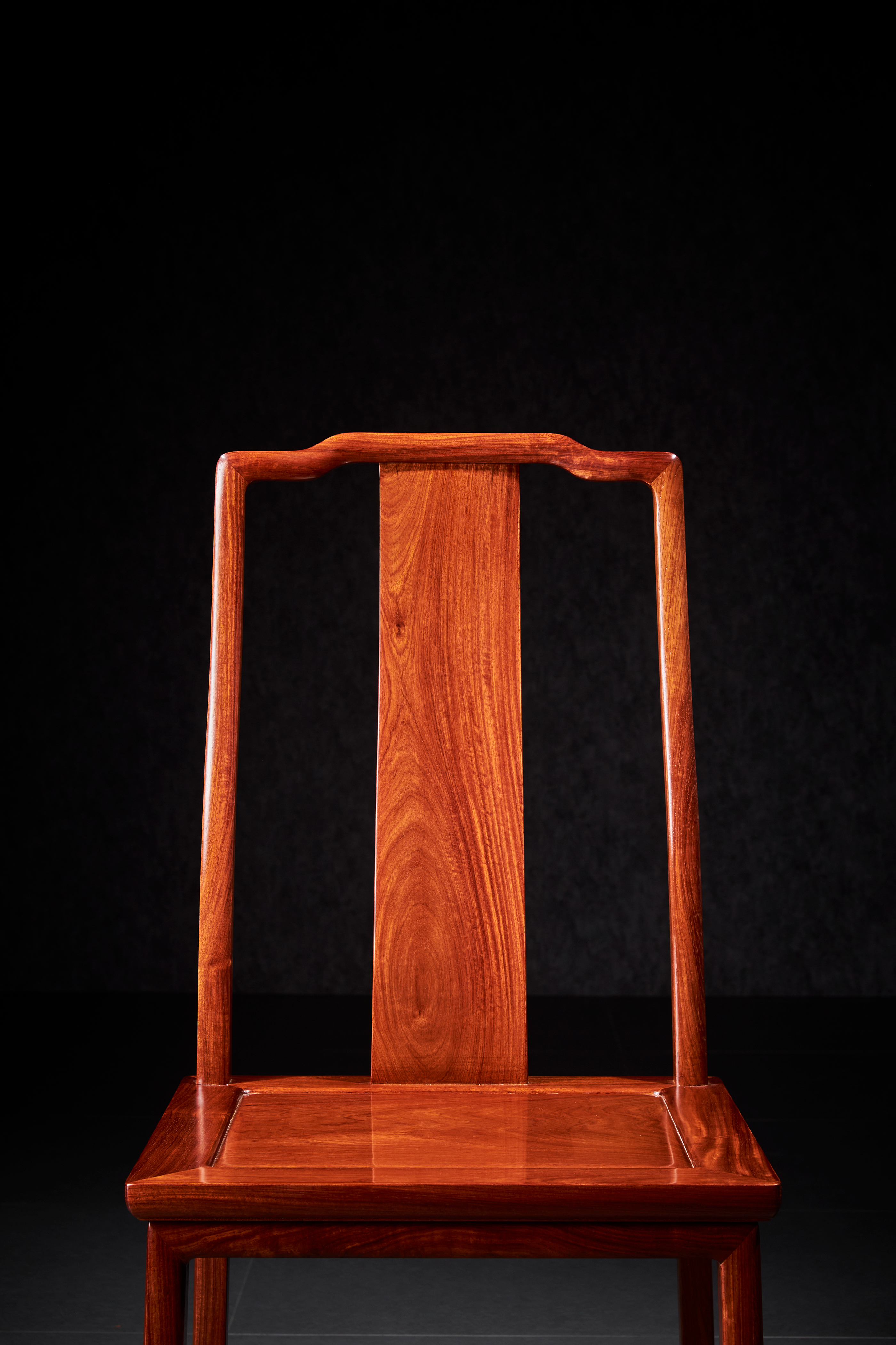攒框镶心独板,起落堂踩鼓面,边抹压线起混面,椅盘以下紧贴平直横枨无牙子,造法如棱台平座,与传统建筑结构渊源极深,但在传统椅类中并不多见。