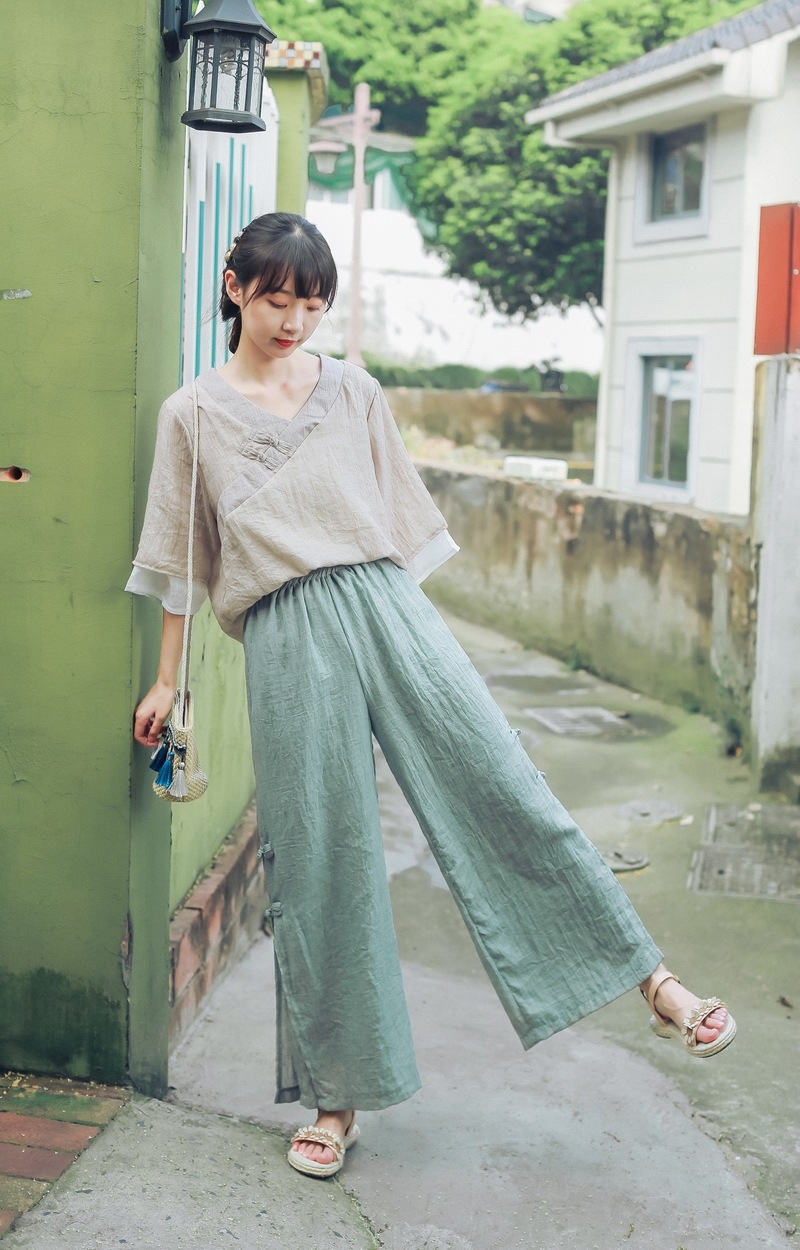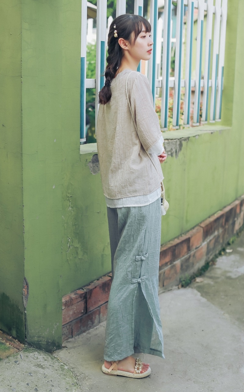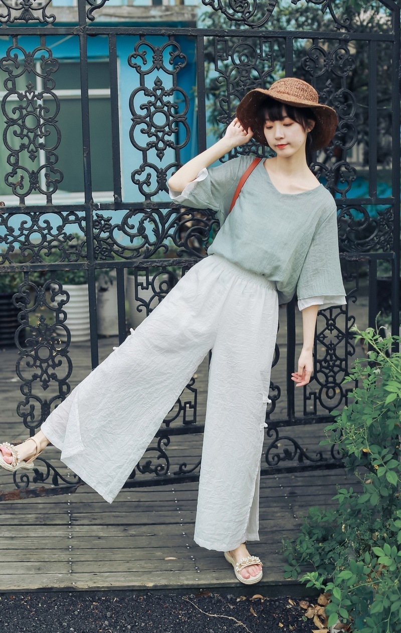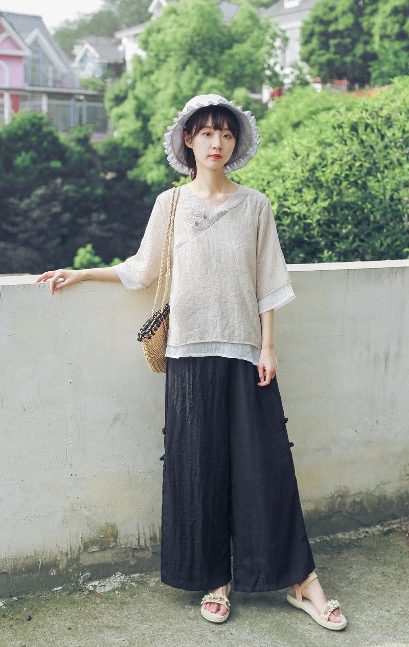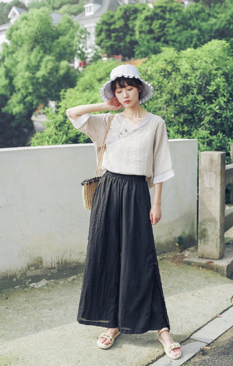2022年新款文艺范复古双层棉麻阔腿裤女宽松直筒瑜伽休闲裤XYF-882