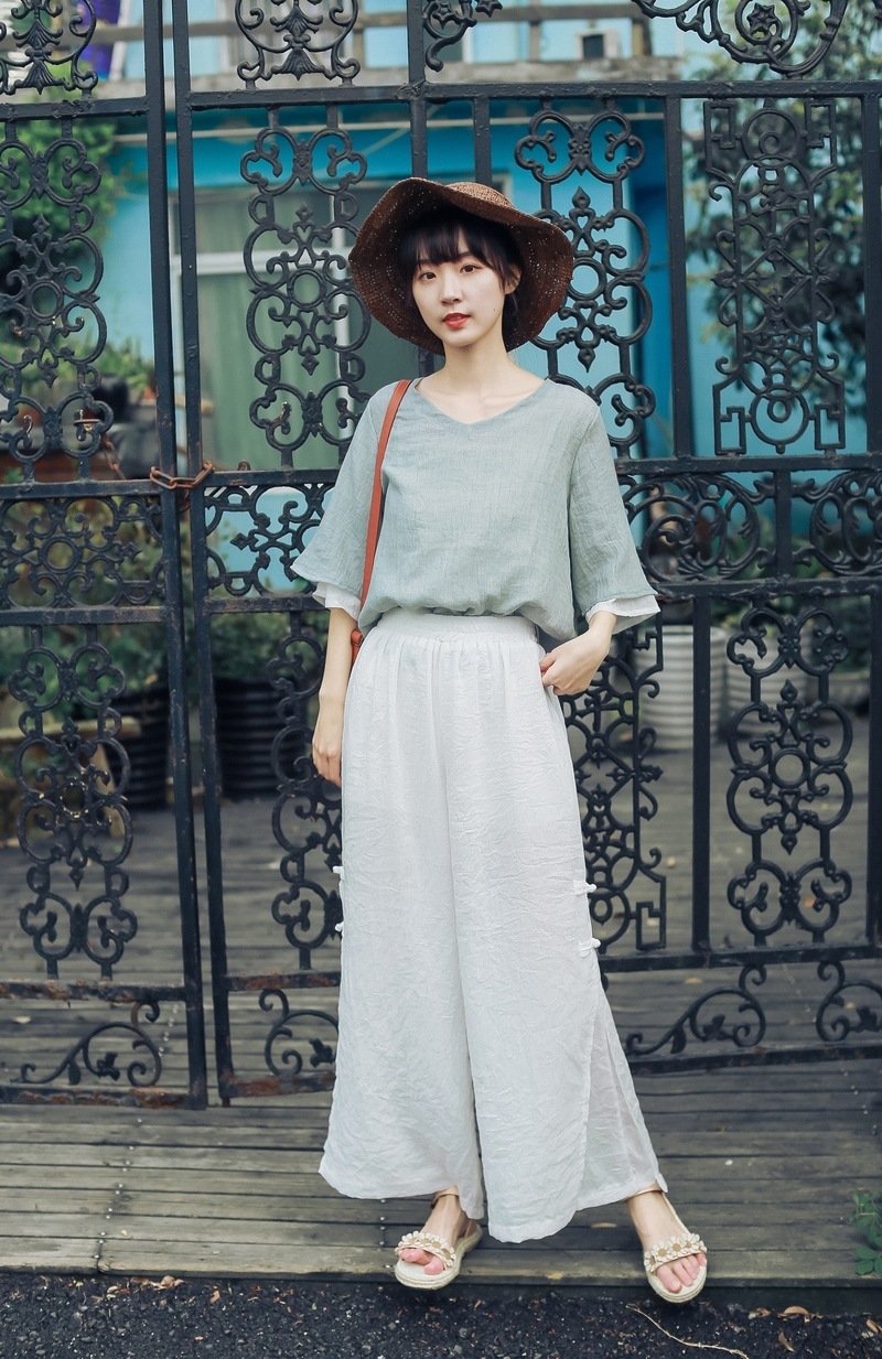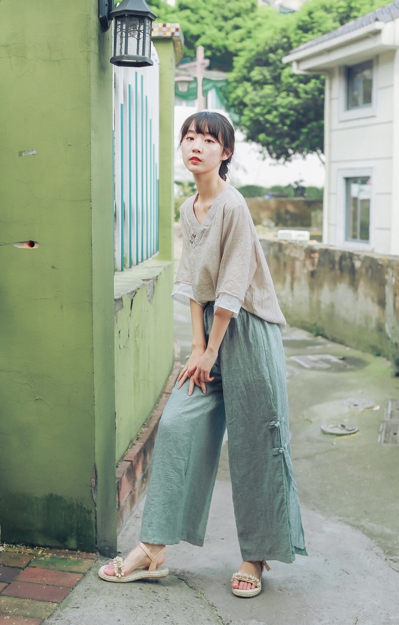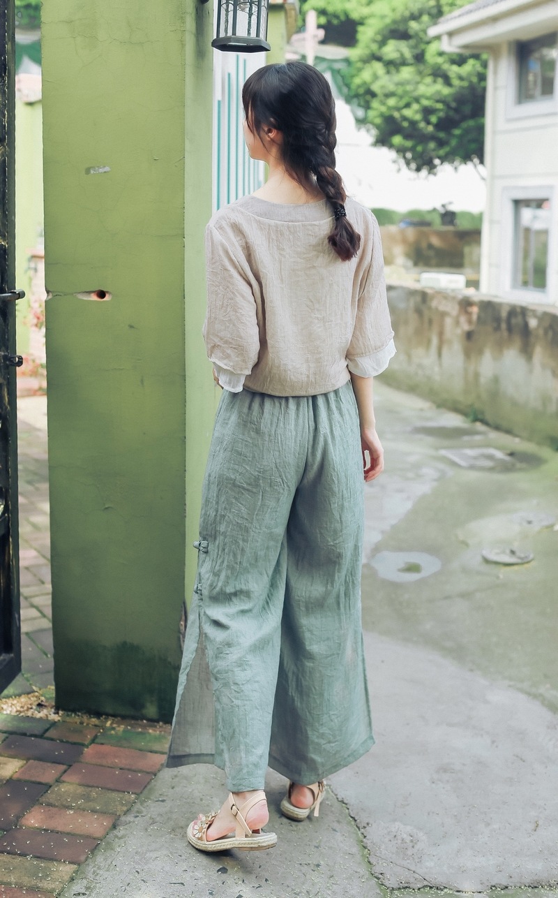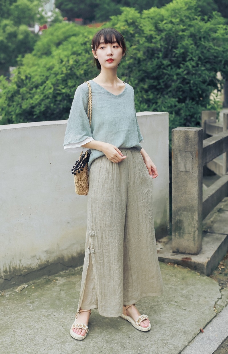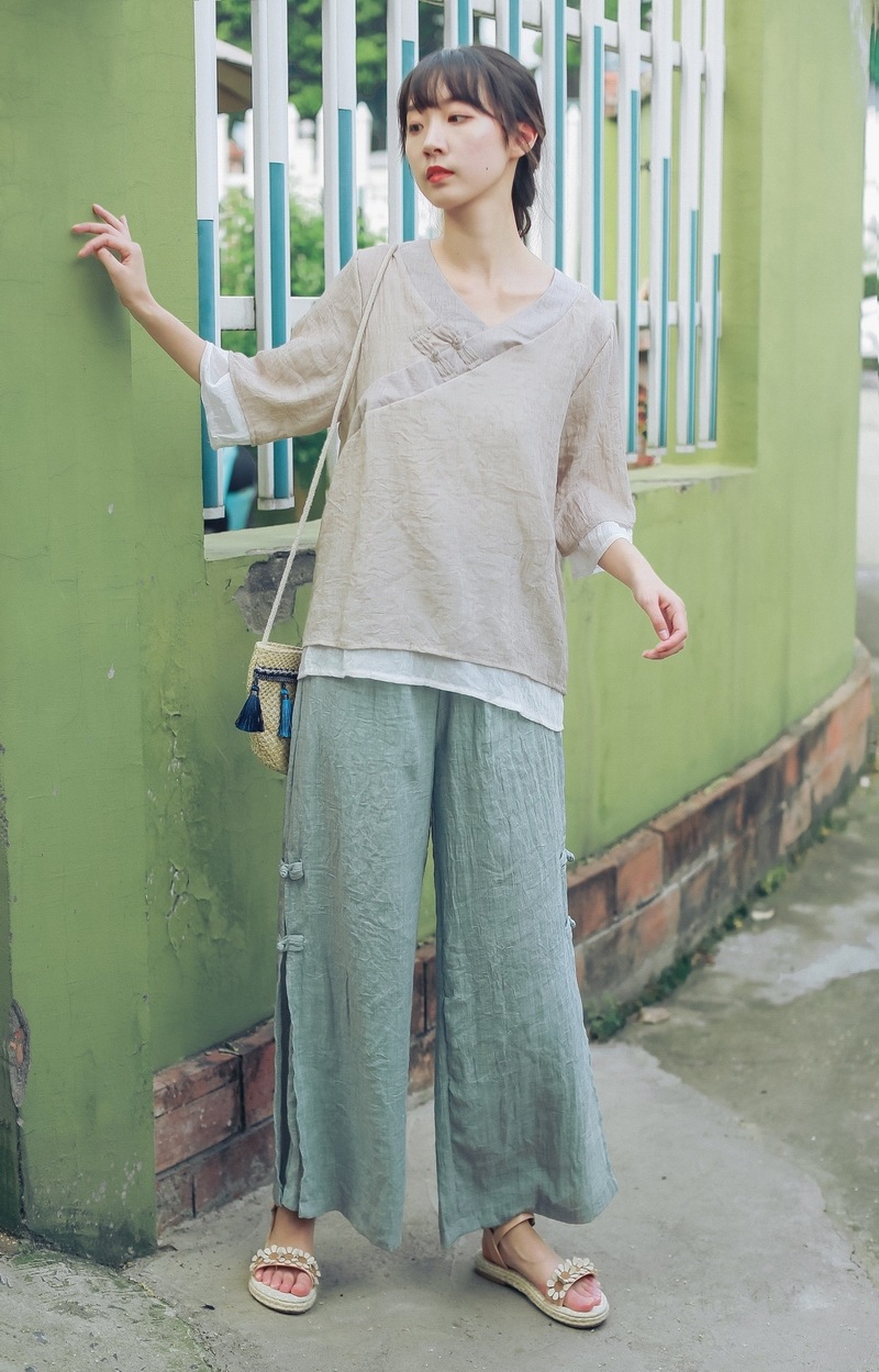 2022年新款文艺范复古双层棉麻阔腿裤女宽松直筒瑜伽休闲裤XYF-882