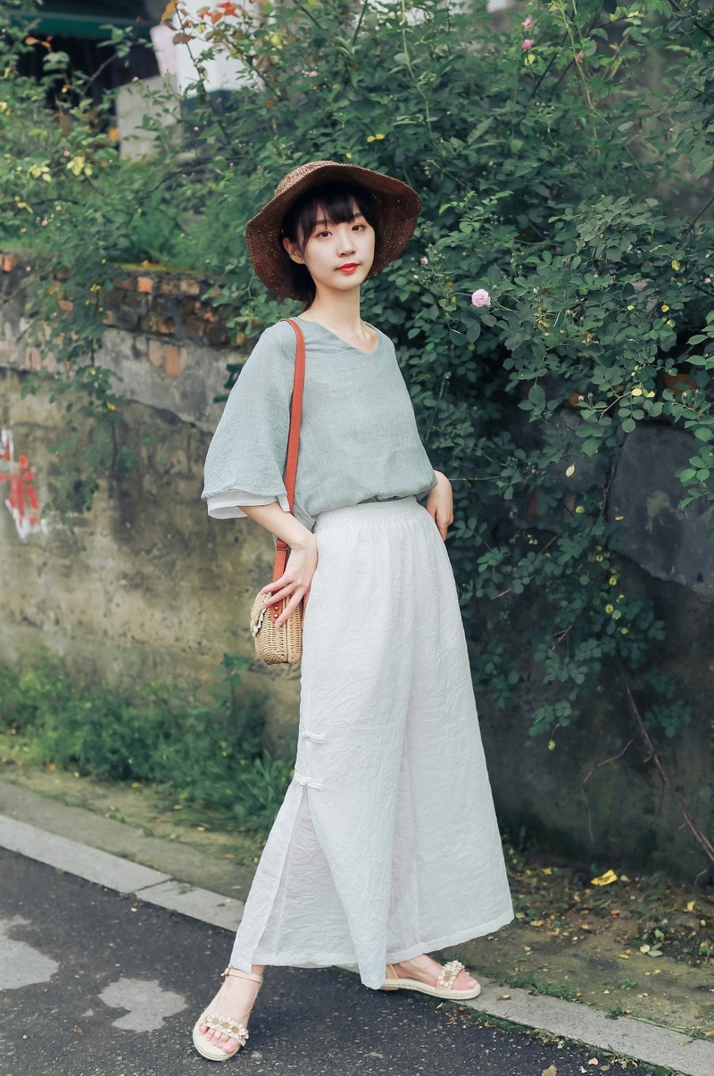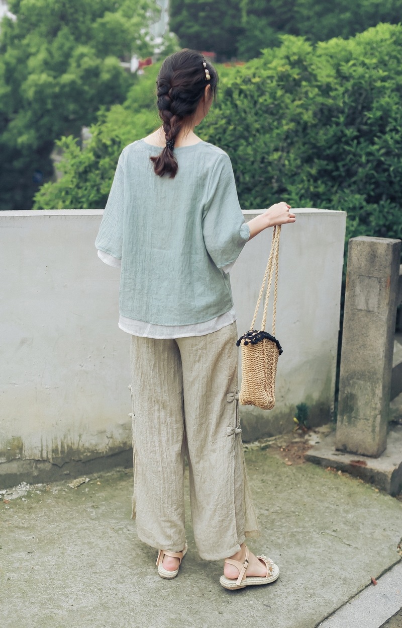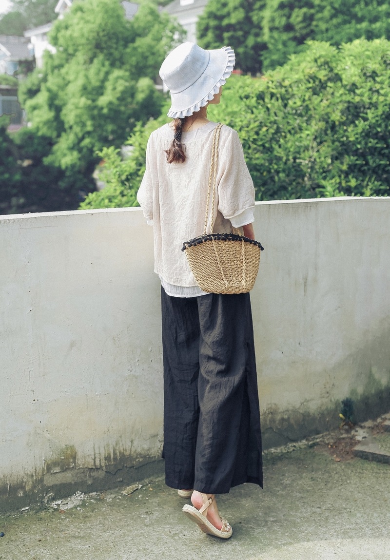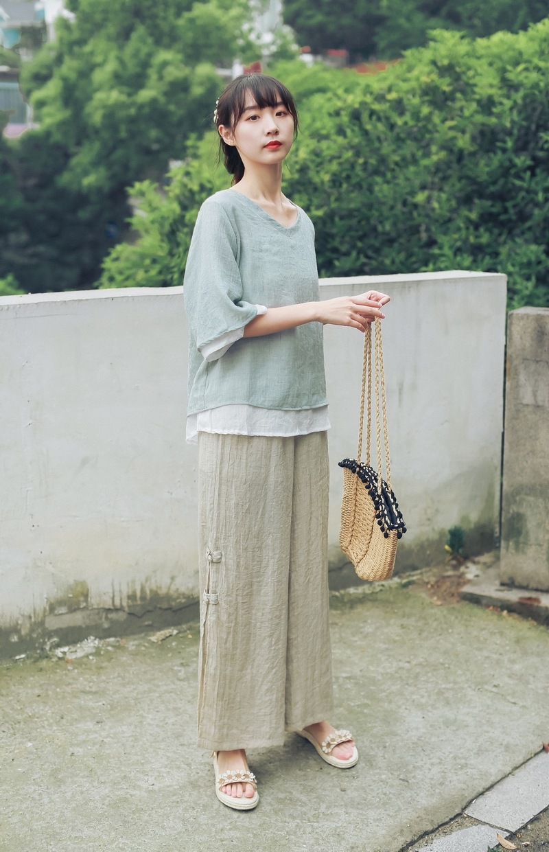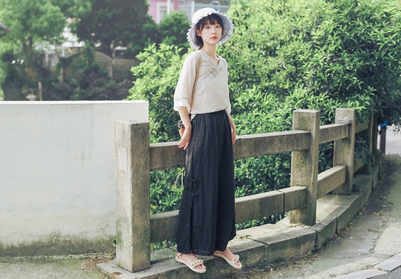 2022年新款文艺范复古双层棉麻阔腿裤女宽松直筒瑜伽休闲裤XYF-882