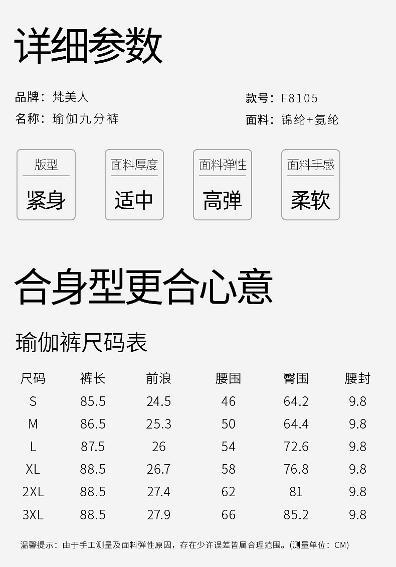 梵美人 F8105L 瑜伽九分裤 裸感 后腰口袋 无松紧