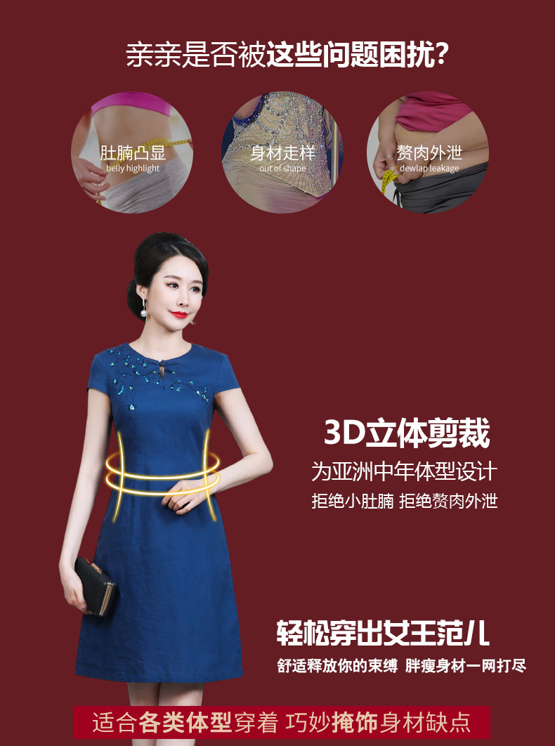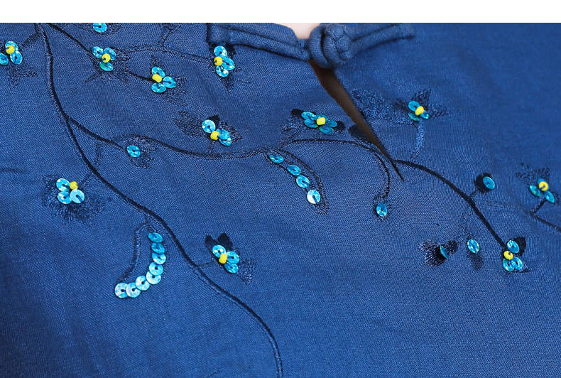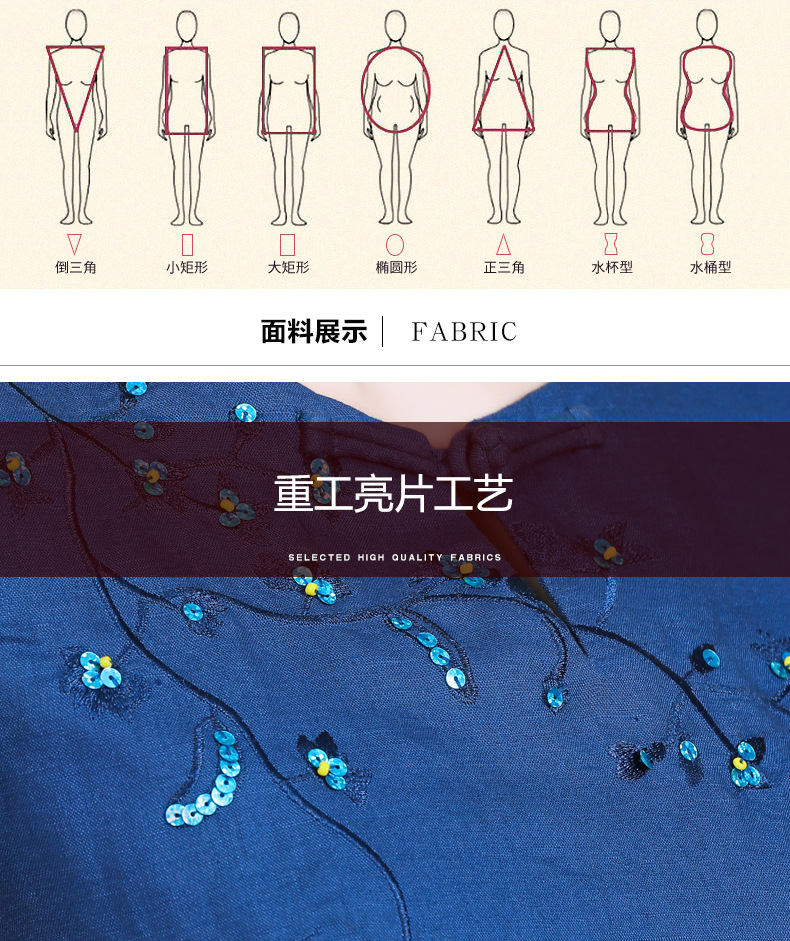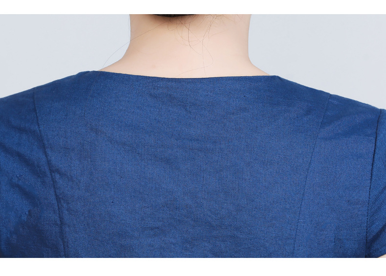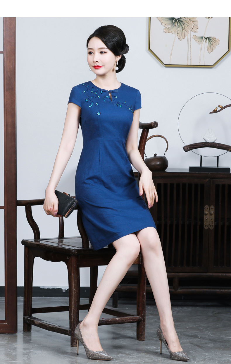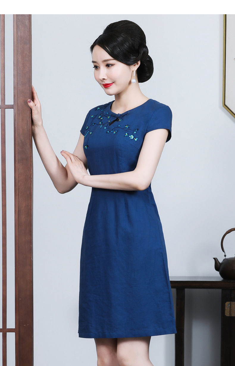上海旗袍厂JC-JY5059连衣裙夏季短袖新款时尚气质圆领棉麻绣花裙
