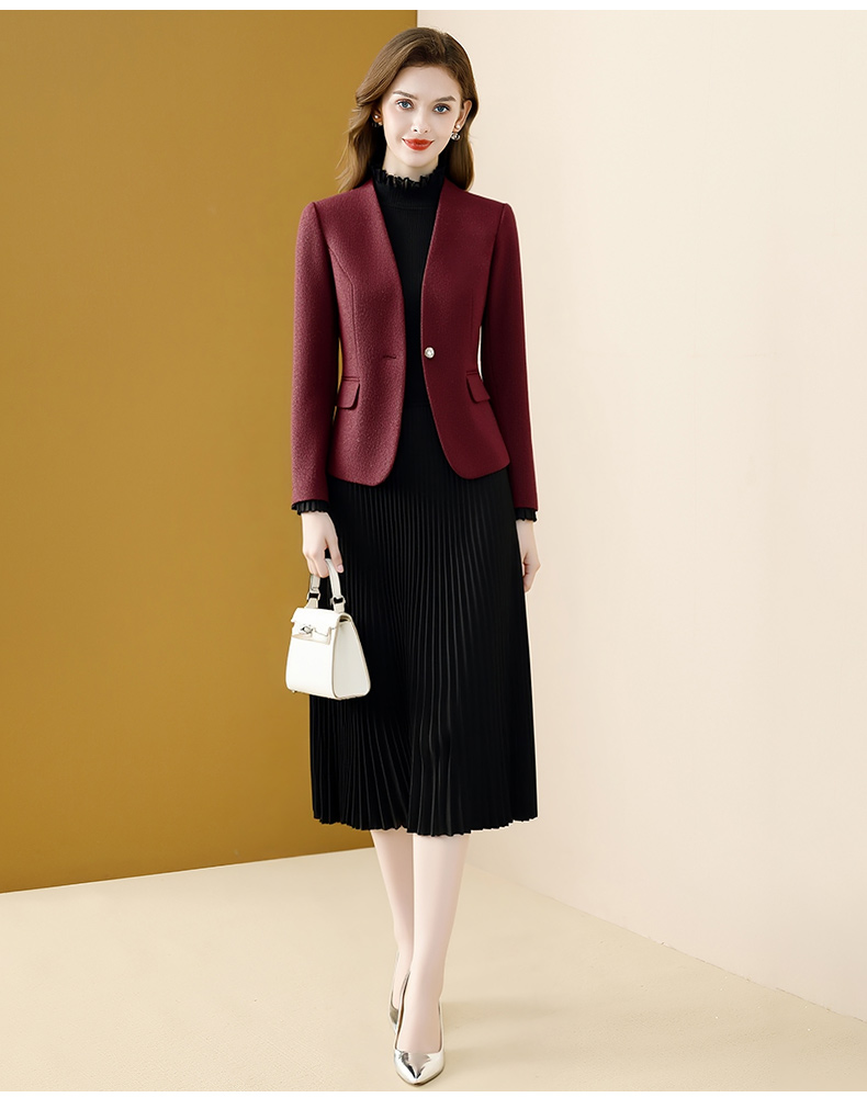 「自」全新升级【铂金会员220/天猫289/差价69】(05617)洛诗琳时尚纯色毛呢西装外套女2025秋冬新款小个子通勤百搭显瘦西服