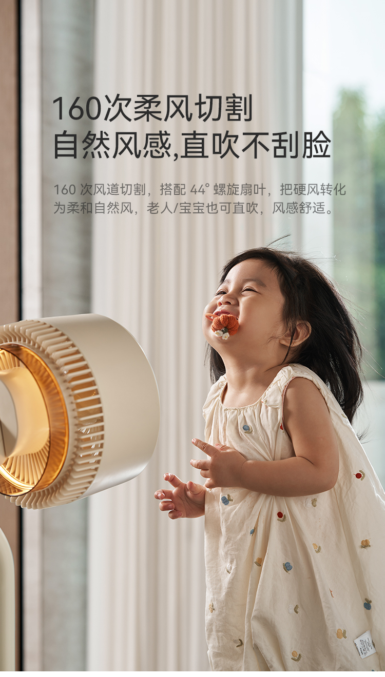 2、【全屋循环】:专利聚风导流设计,160次风道切割,广角送风,风感自然直吹不刮脸;