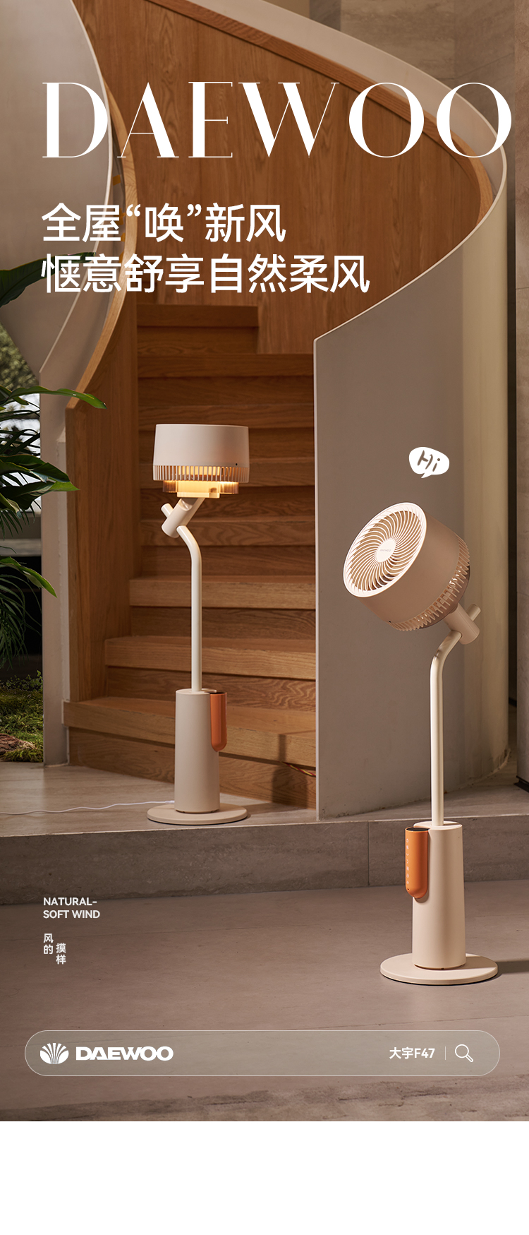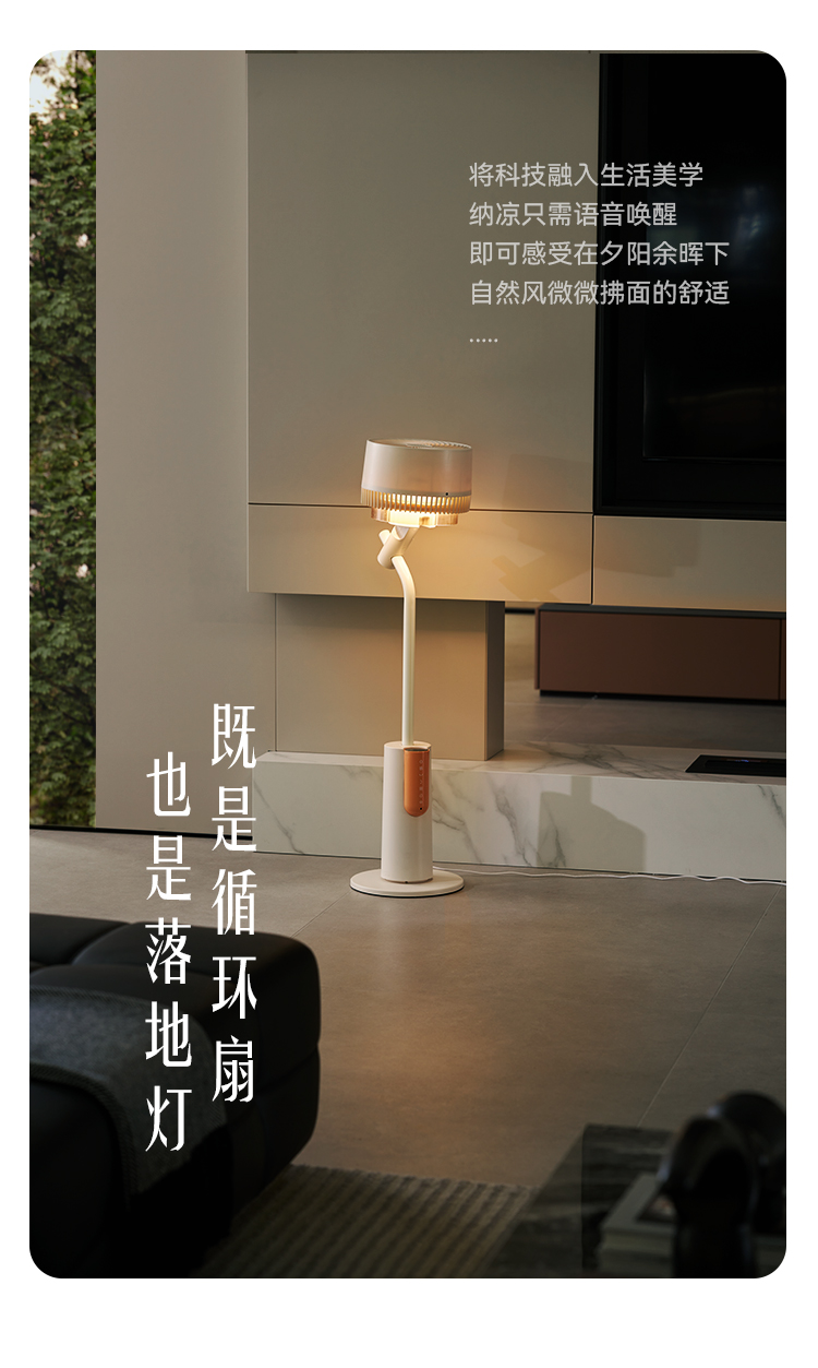 1、【家居美学】:落地灯&循环扇合体设计,三挡灯光调节,氛围灯中感受自然风感;