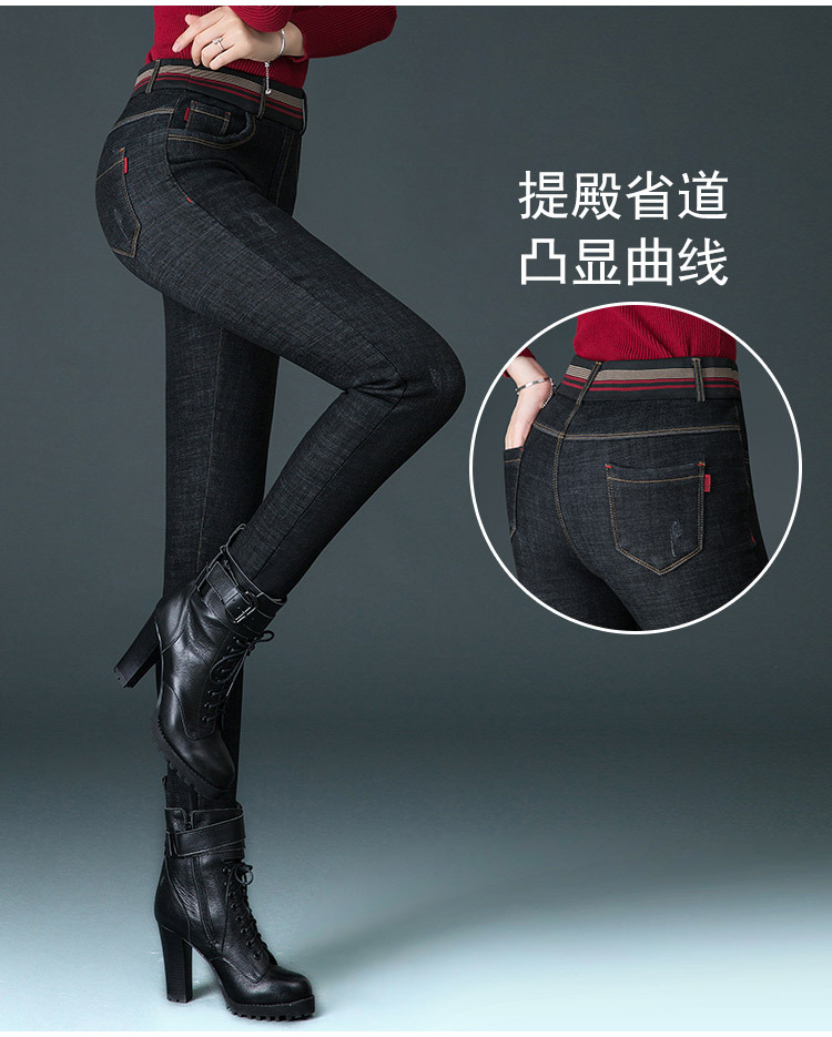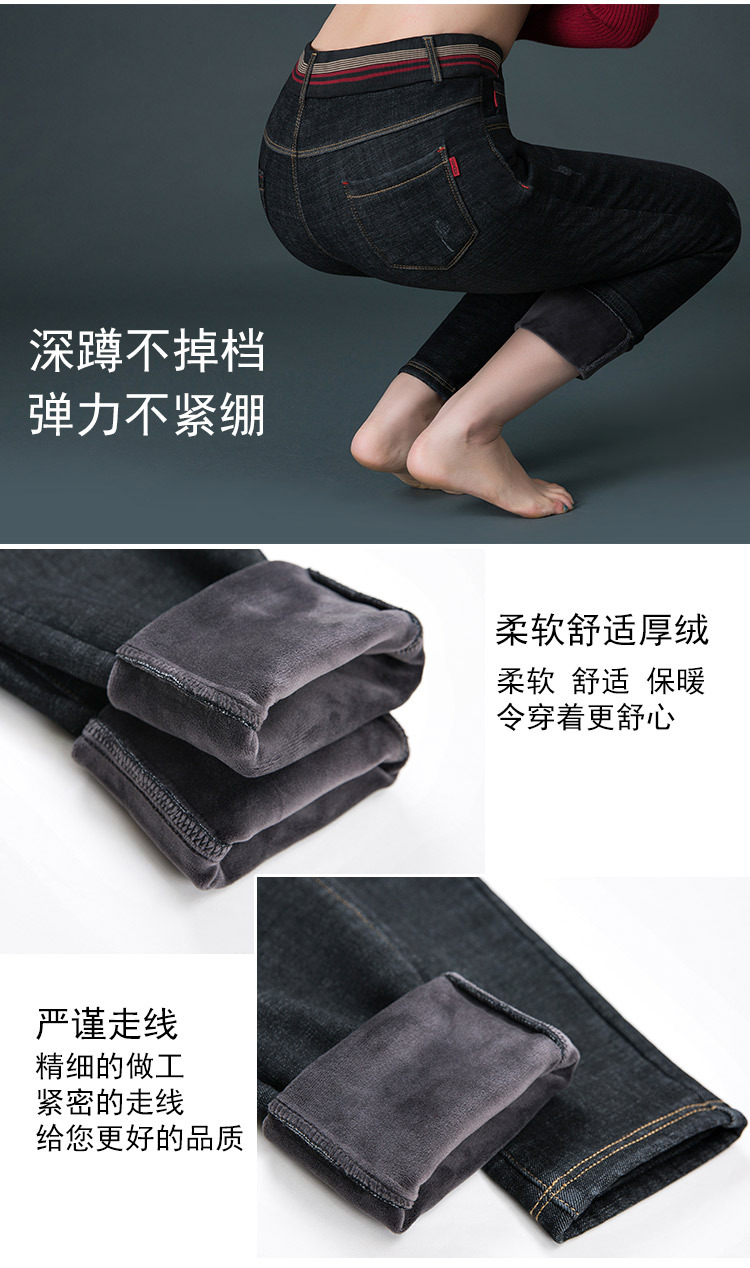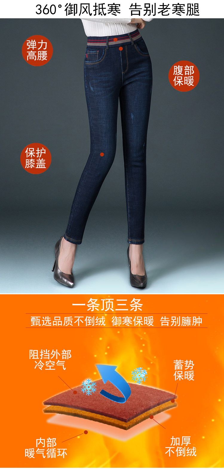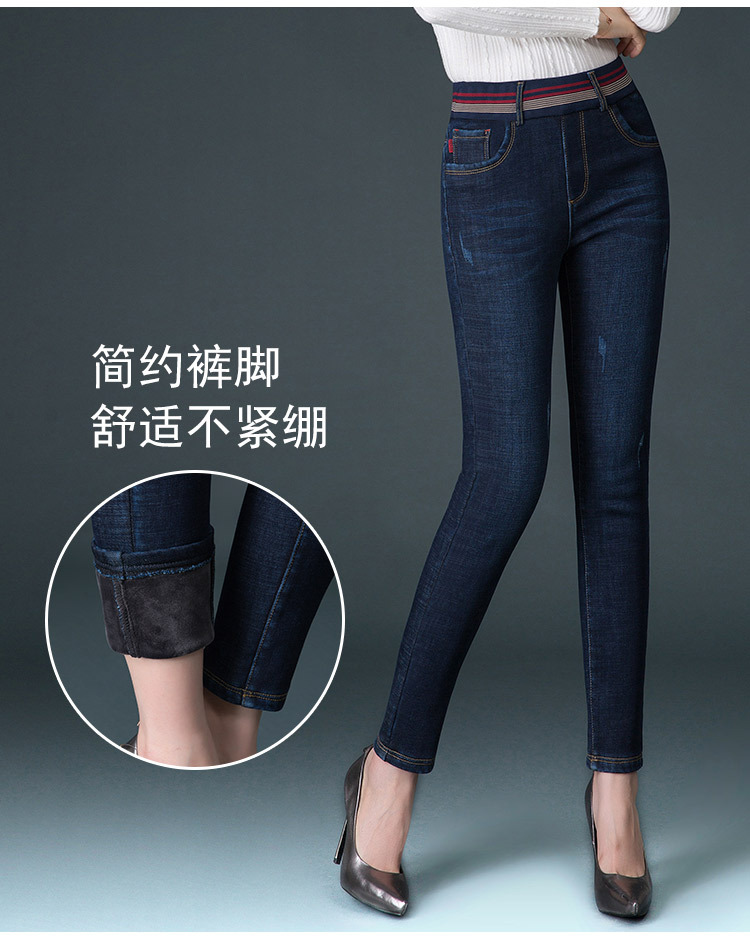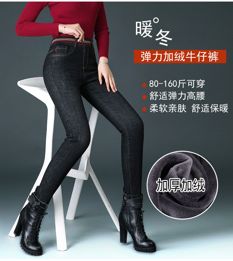 HSS-1955冬季加绒加厚牛仔裤女修身显瘦小脚裤弹力高腰大码中年妈妈裤