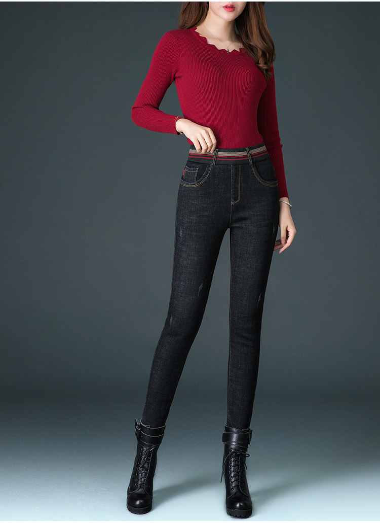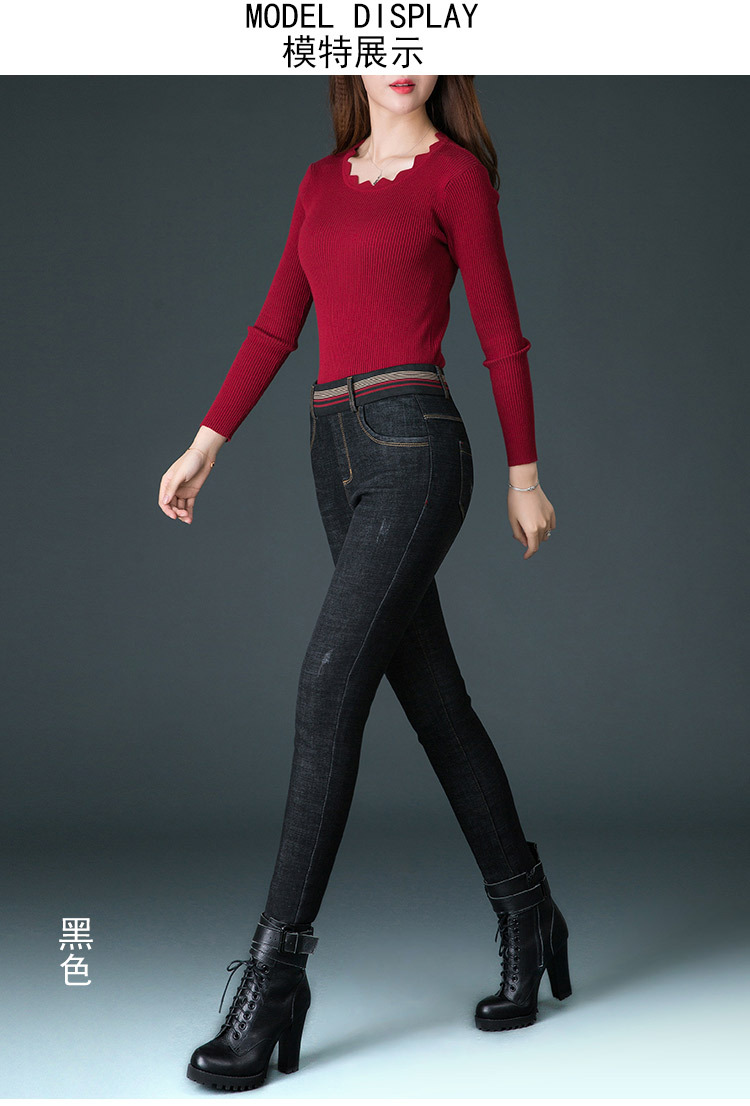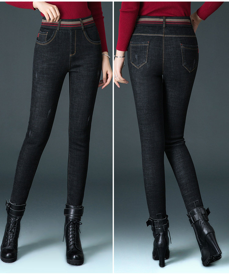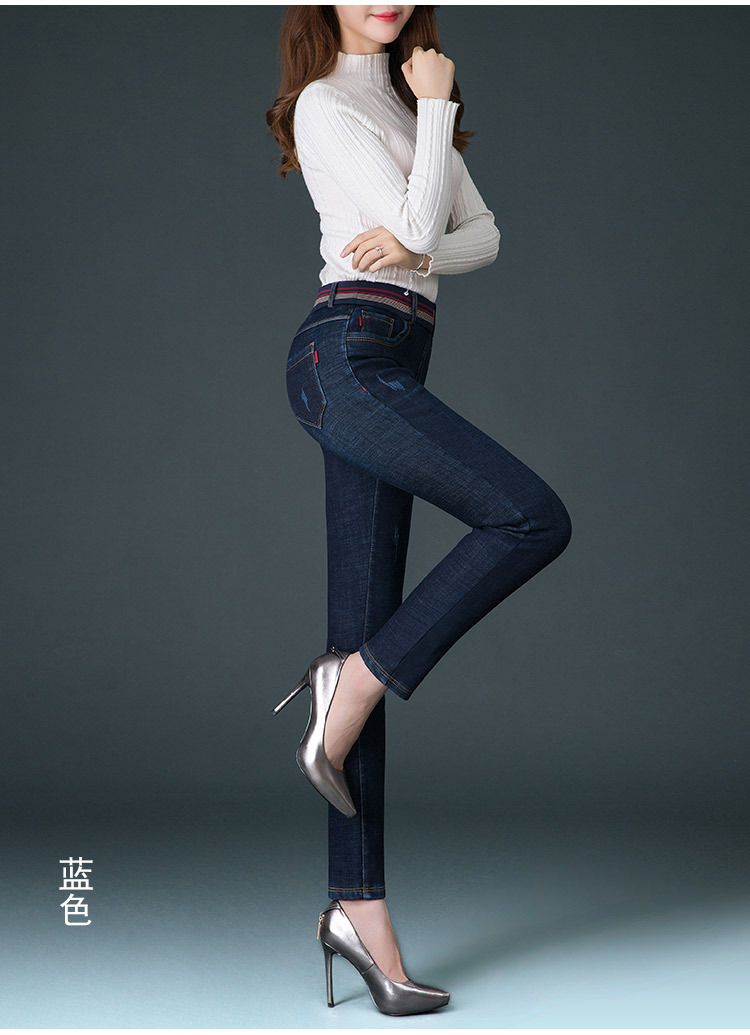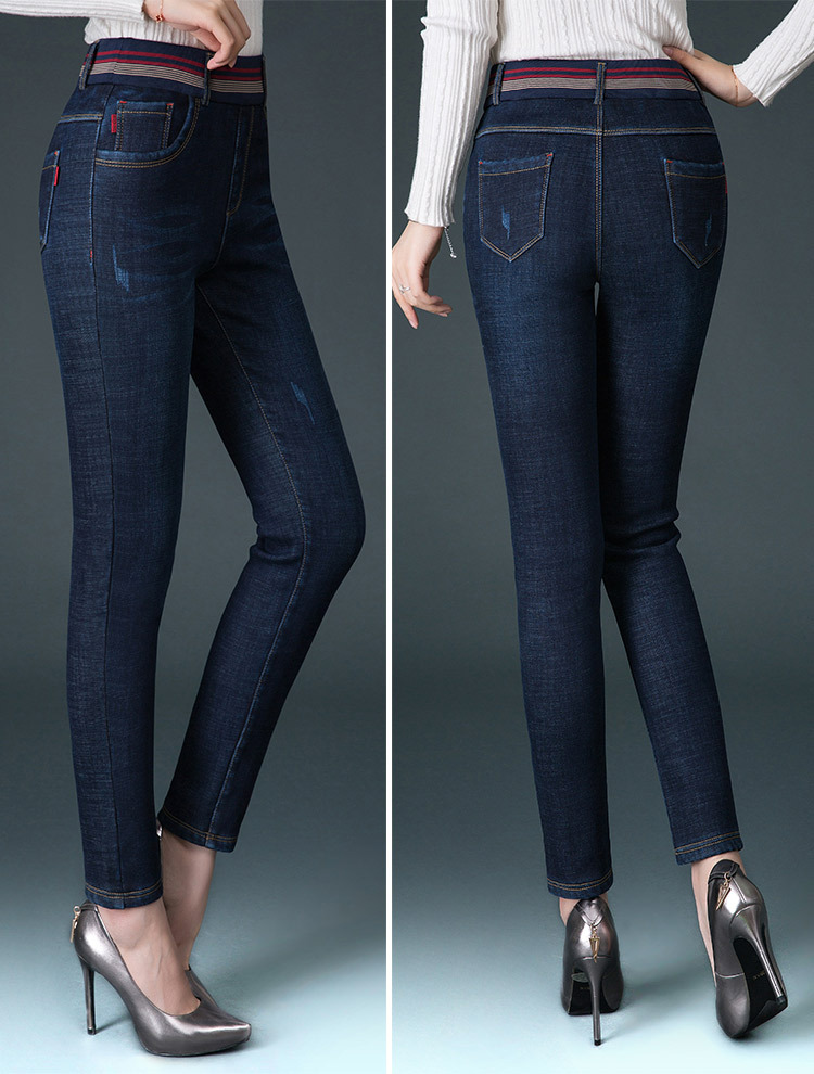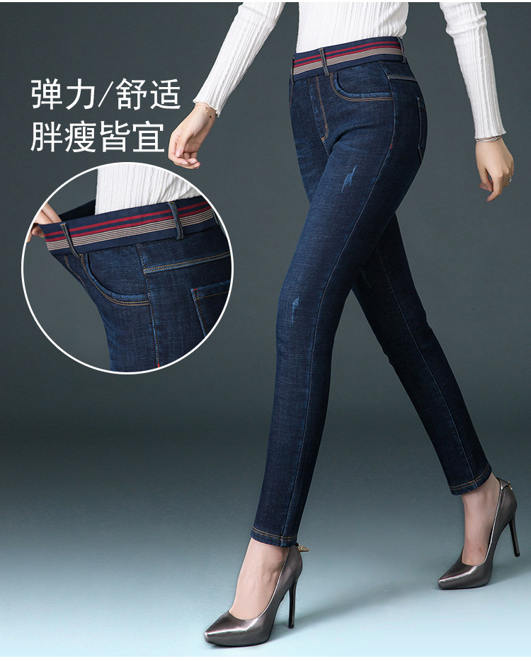 HSS-1955冬季加绒加厚牛仔裤女修身显瘦小脚裤弹力高腰大码中年妈妈裤