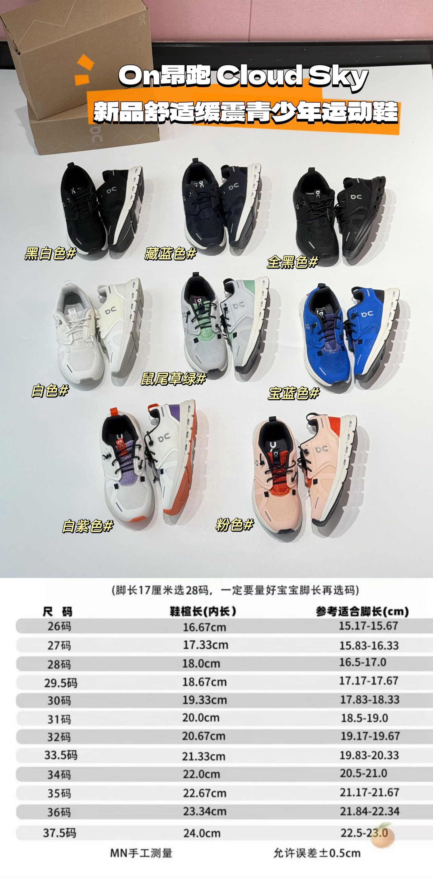 这是一双专业运动童鞋,可以让宝宝们尽情享受运动了!!!也作为On童鞋销量榜首的鞋款,官网售价¥690,我们全部出口正规订单;直接专柜试穿购买!!作为符合儿童的使用习惯和身体发育特点,又具有专业的功能性,可以让孩子们在运动时更加安全、舒适、自信,更能穿出洋气高级感的童鞋,给宝宝们的开学礼物 走起来!!