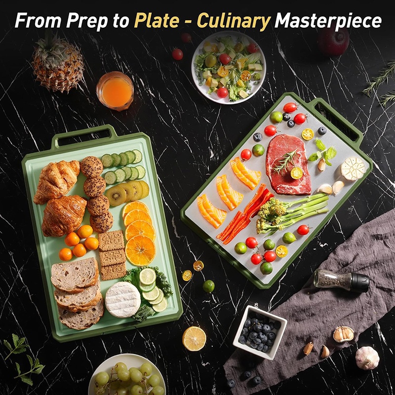 尺寸48✖️31✖️2.2出美国单,双面抗菌菜板,抑菌纯钛面+环保PP面,砍剁轻划痕,食材不打滑,高效抗菌防霉,便于使用收纳,轻便实用。 这个蕾姐都要自留!普通木质菜板容易滋生细菌🦠 颜色随机发