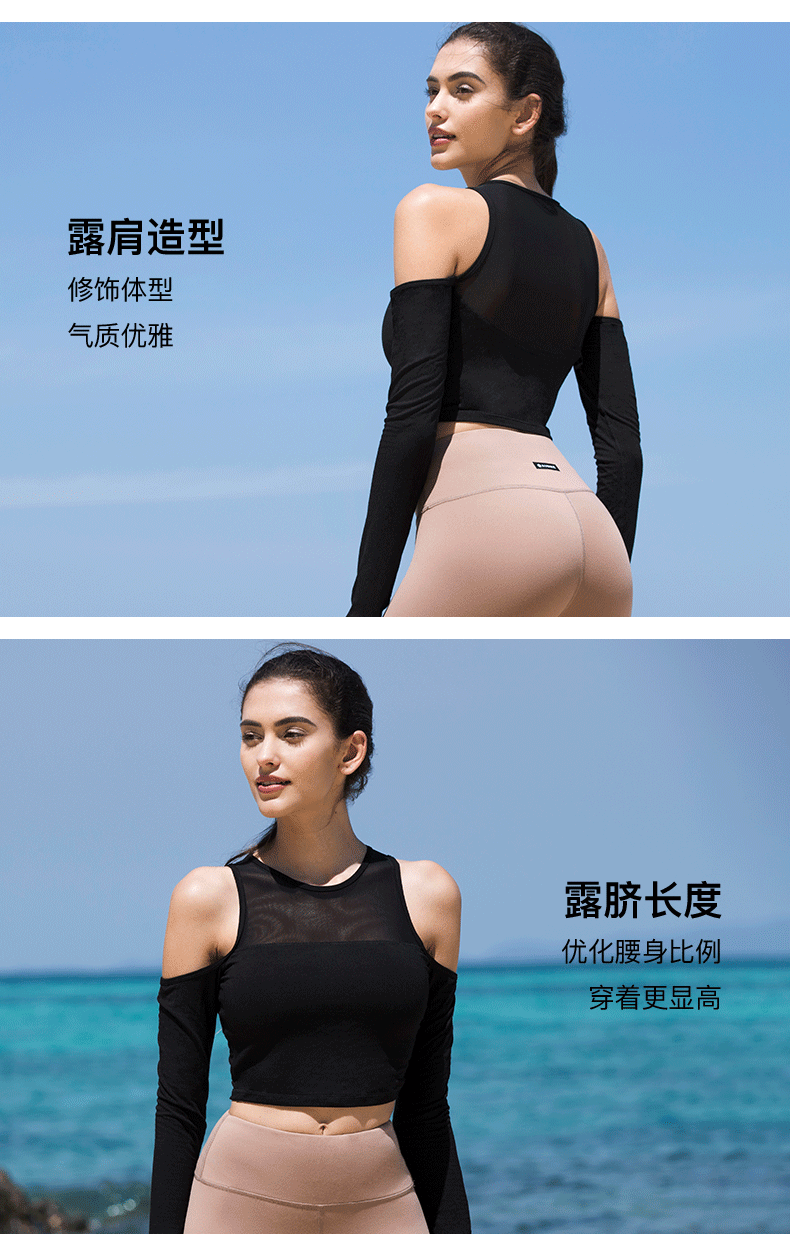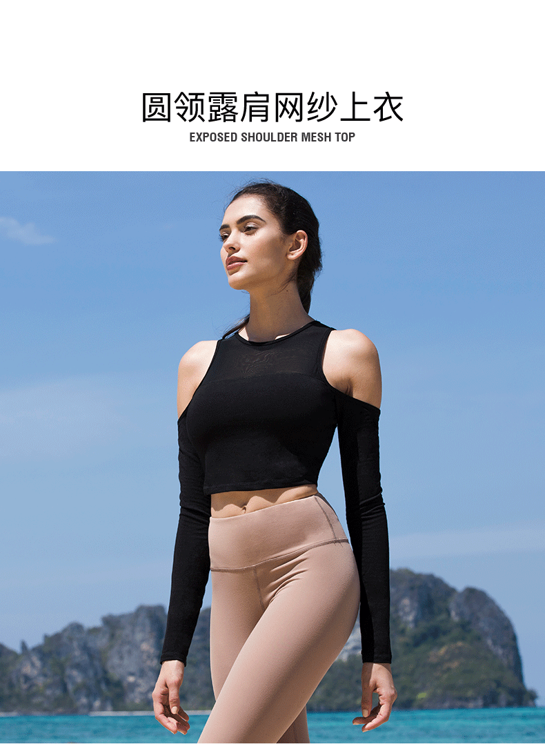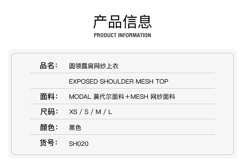 EXPOSED SHOULDER MESH TOP/圆领露肩网纱上衣 含胸垫