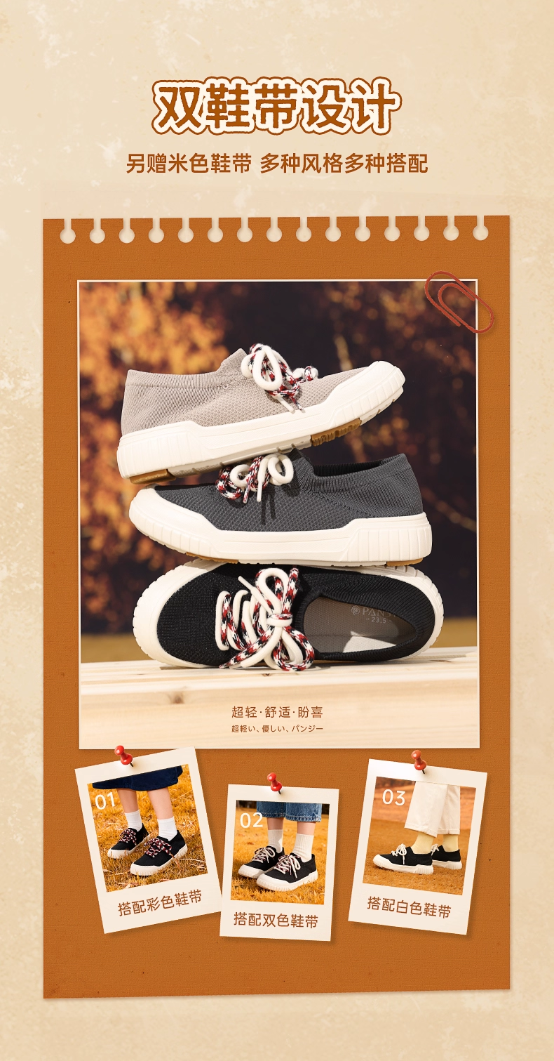 Pansy盼喜日本板鞋女轻便舒适透气百搭飞织休闲鞋2025秋季