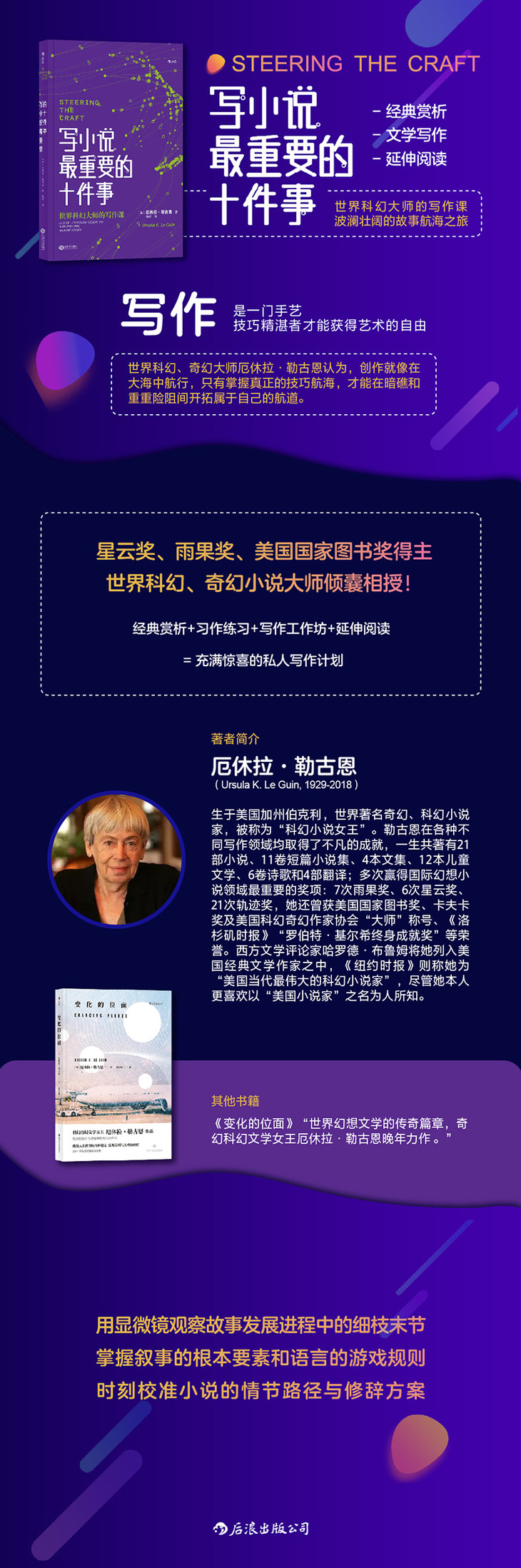 勒古恩在这本书里揭露了技巧为何是一门艺术。这本书就像一颗明亮之星,能够指引所有航行在写作之海的人。