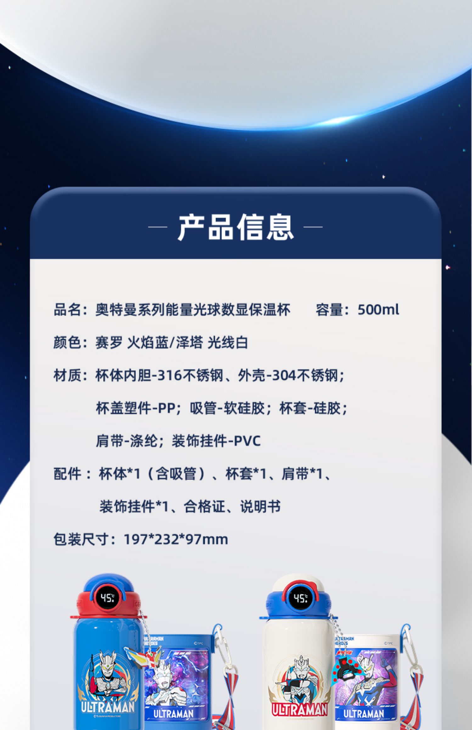 【GERM】奥特曼系列能量光球数显保温杯赛罗 500ml
