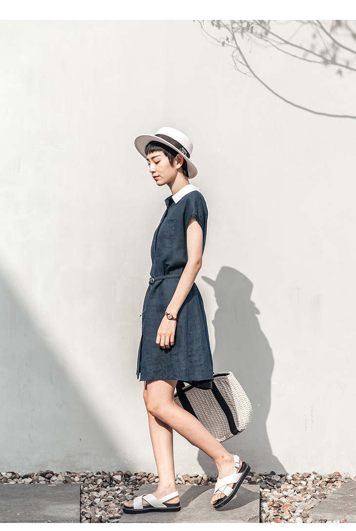 JIANG棉质短袖衬衫连衣裙2018夏装新款极简主义