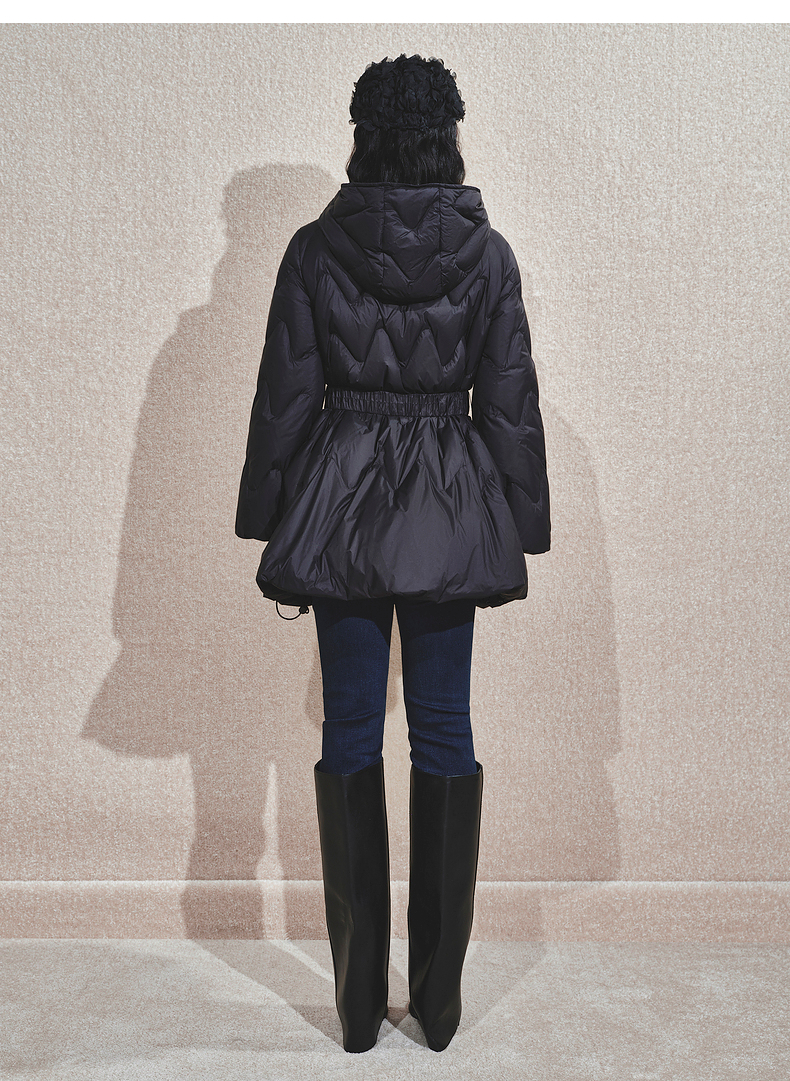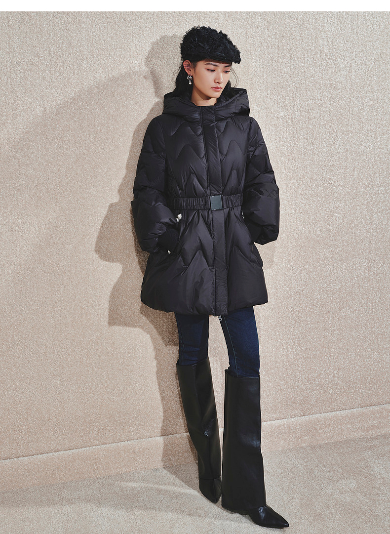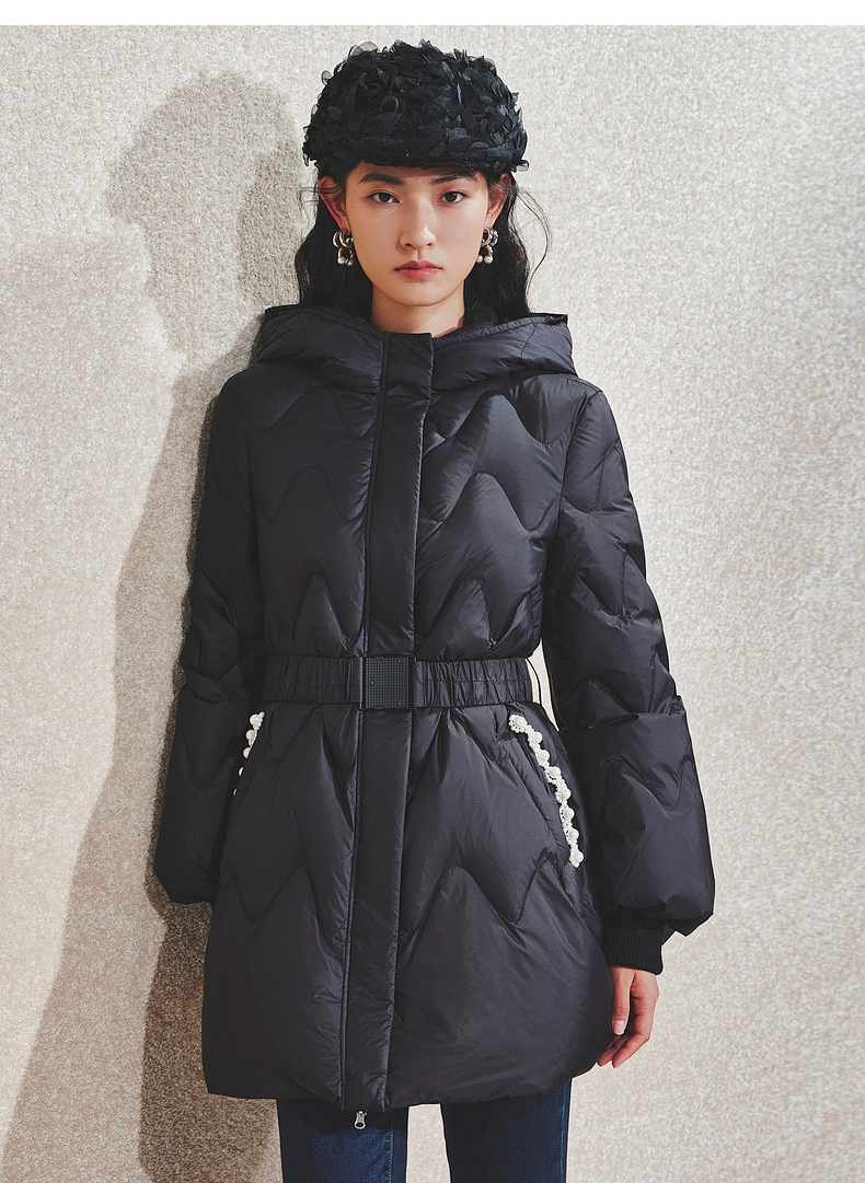 【商场同款】MAXRIENY钉珠织带收腰羽绒服24冬新款保暖外套中长款(货号:MS85DC752)