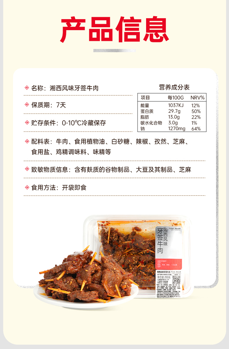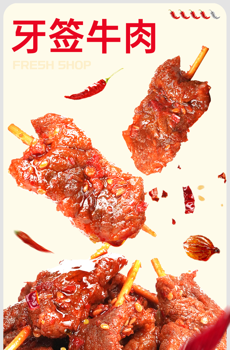 【鲜食】黑色经典牙签牛肉 200g 鲜辣劲爽 撸串般过瘾
