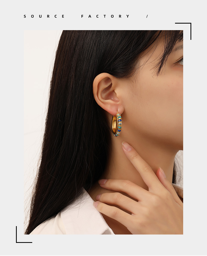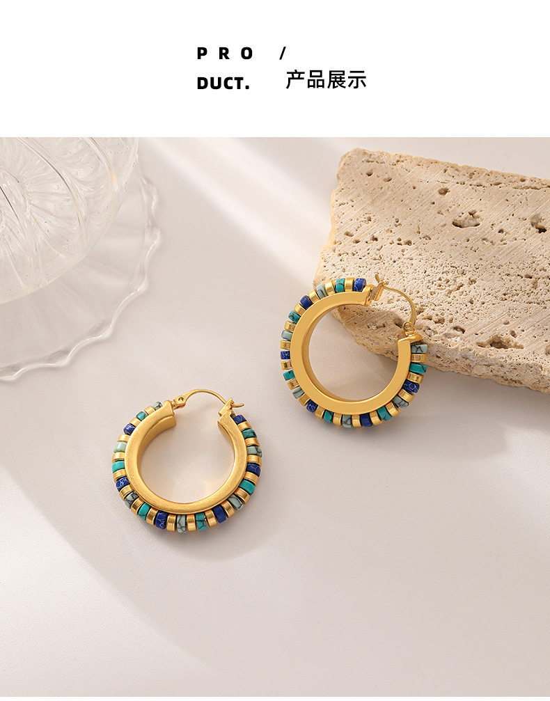 复古vintage小众设计感,手工串珠绿松石耳饰DMS-00243