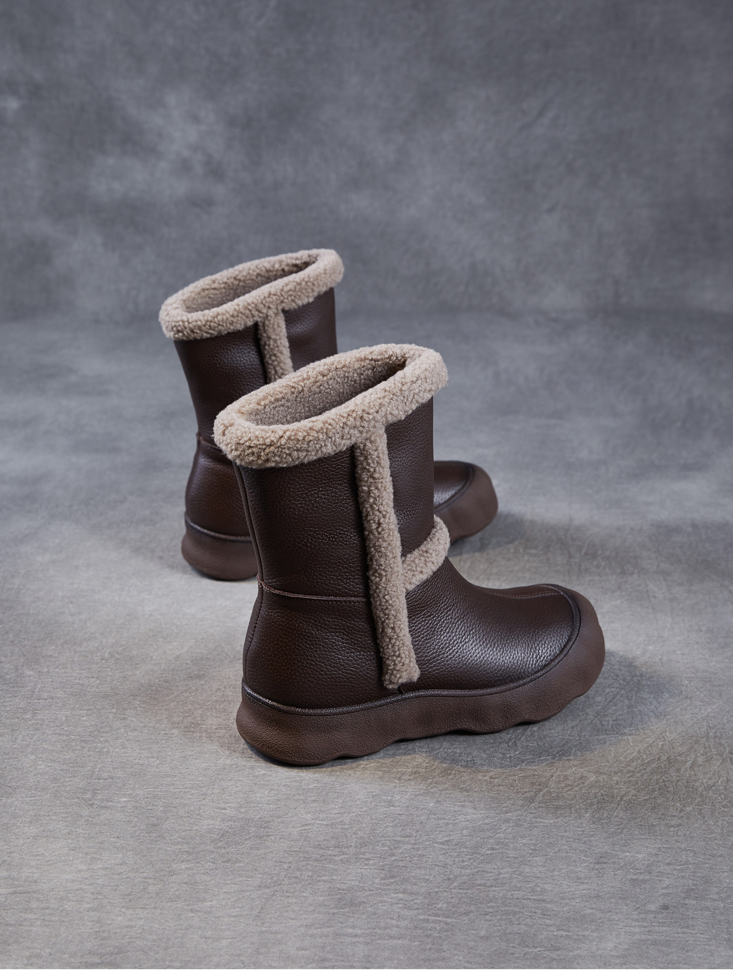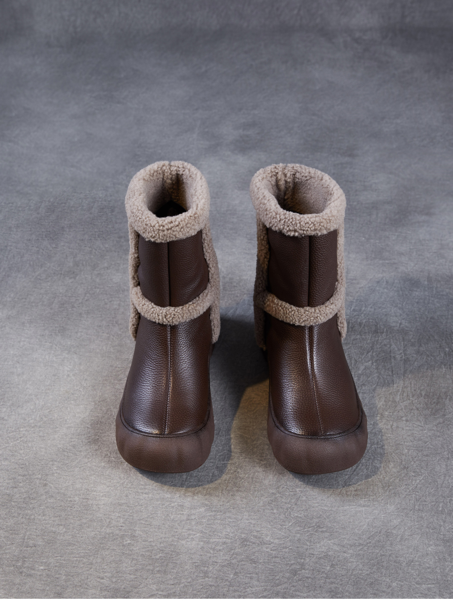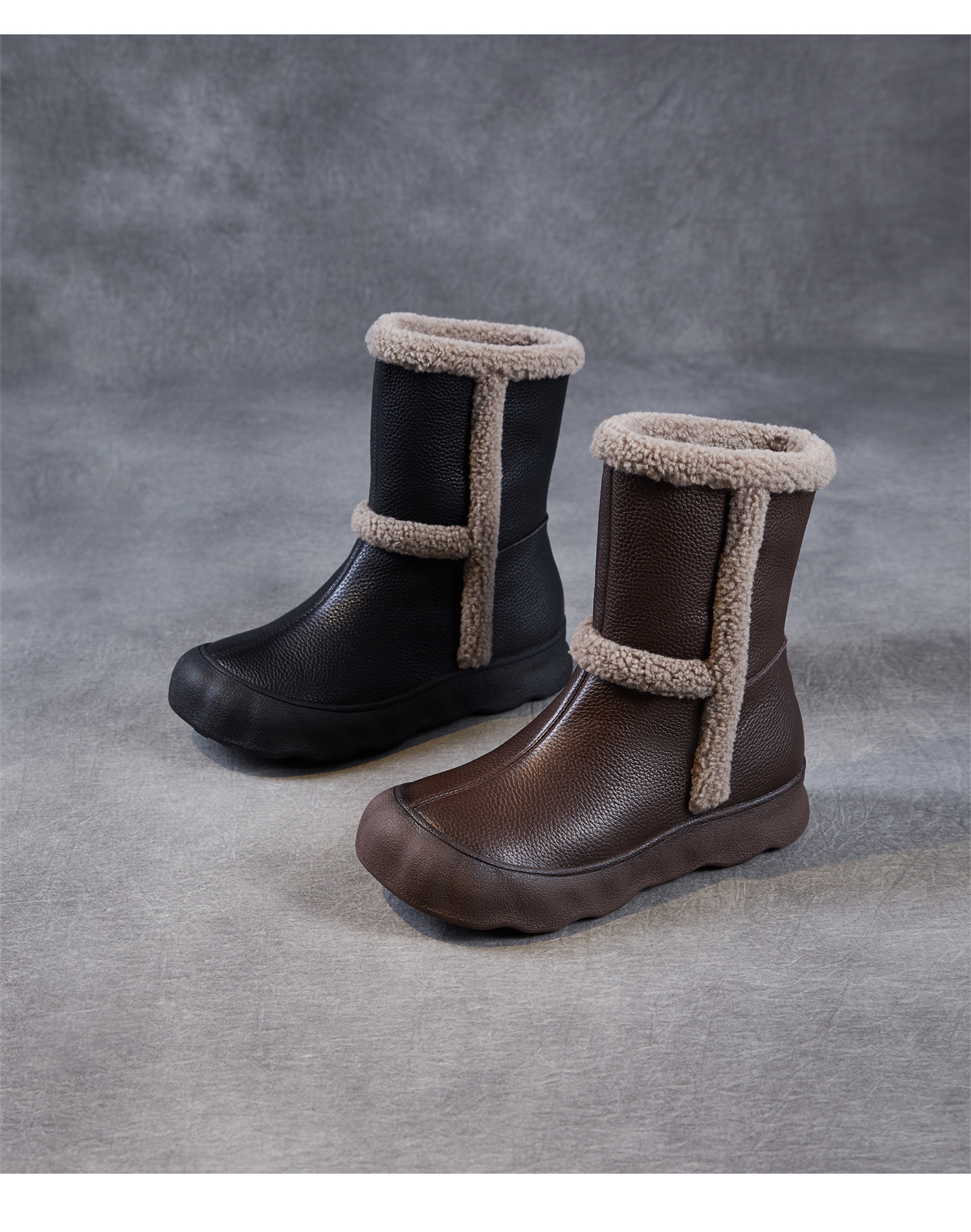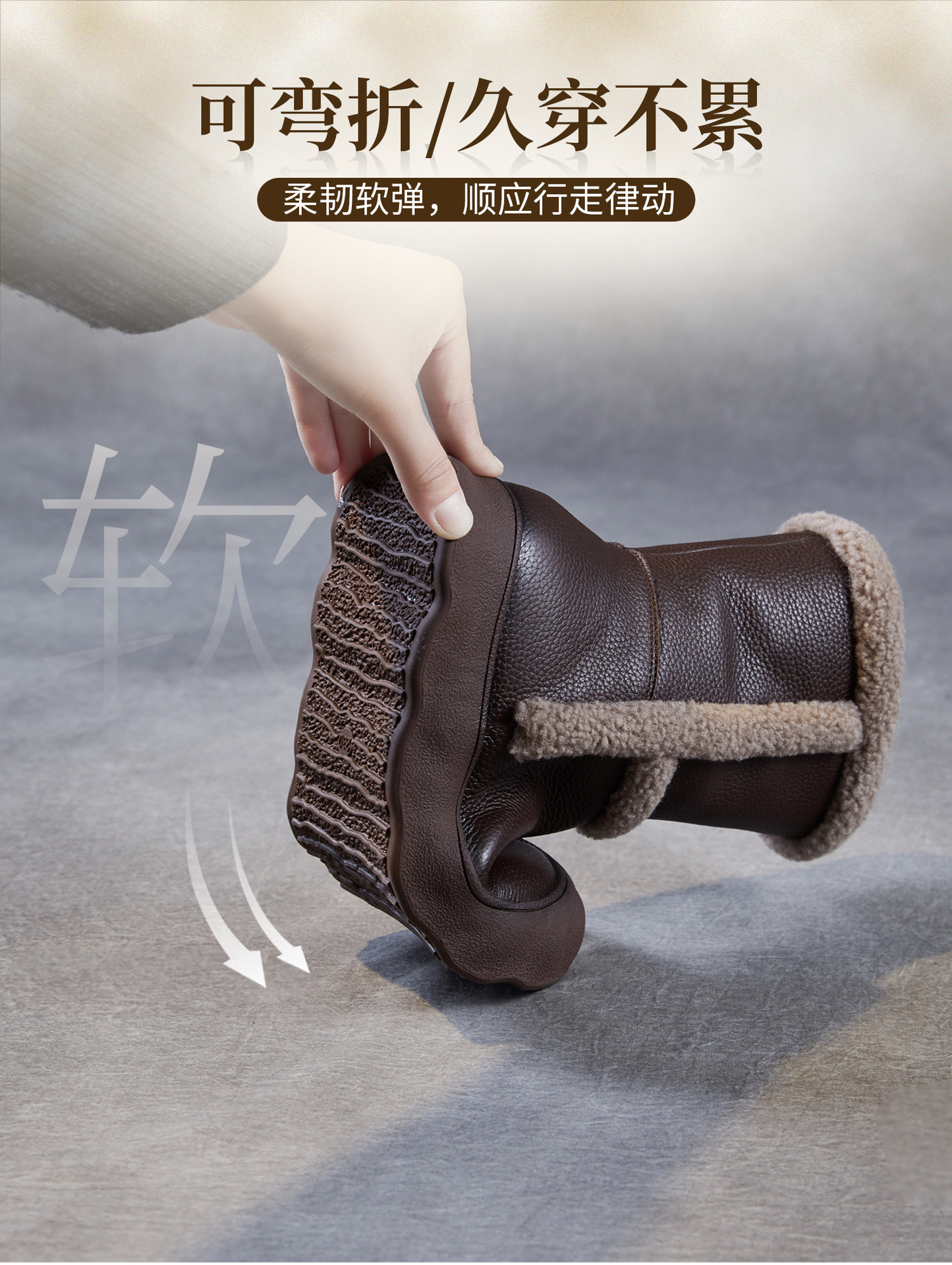 头层牛皮雪地靴,真皮加绒加厚短靴保暖东北羊羔绒棉鞋ZM258739