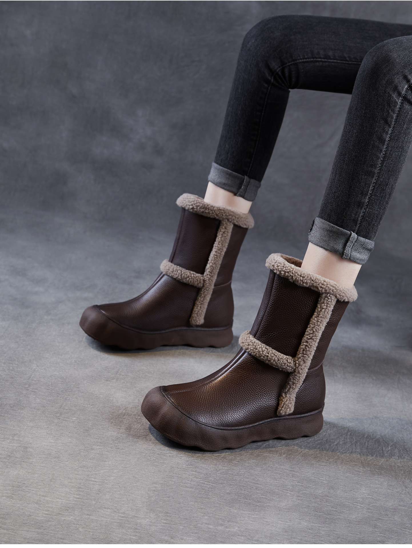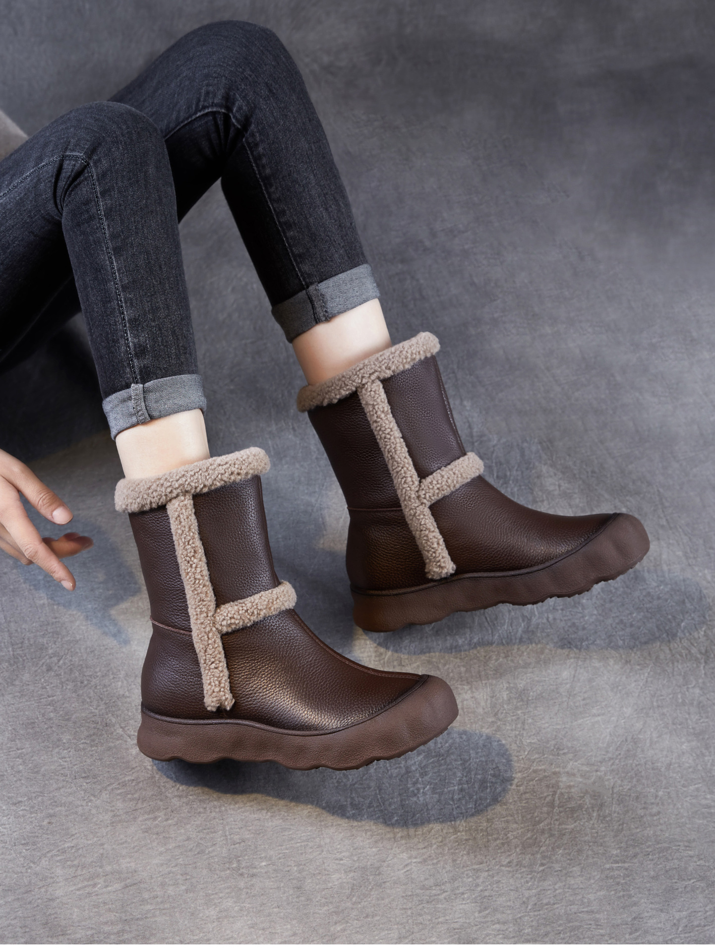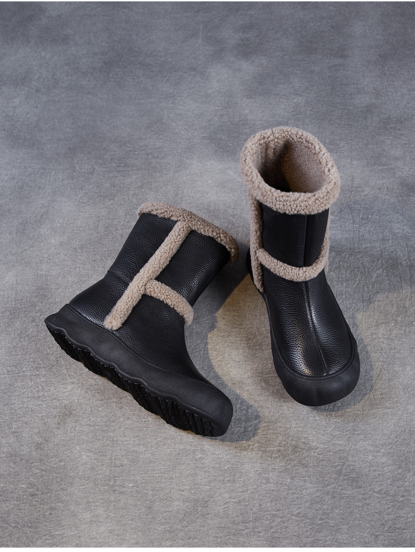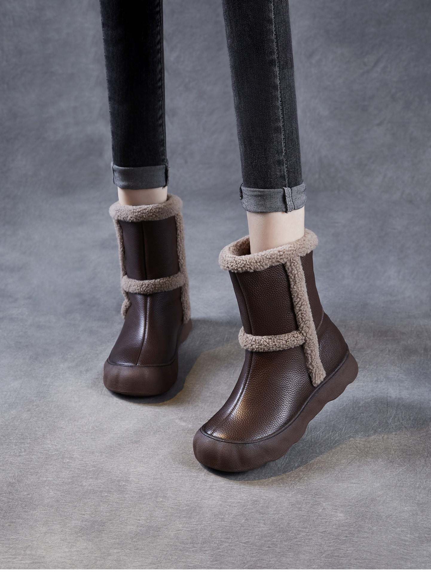 头层牛皮雪地靴,真皮加绒加厚短靴保暖东北羊羔绒棉鞋ZM258739