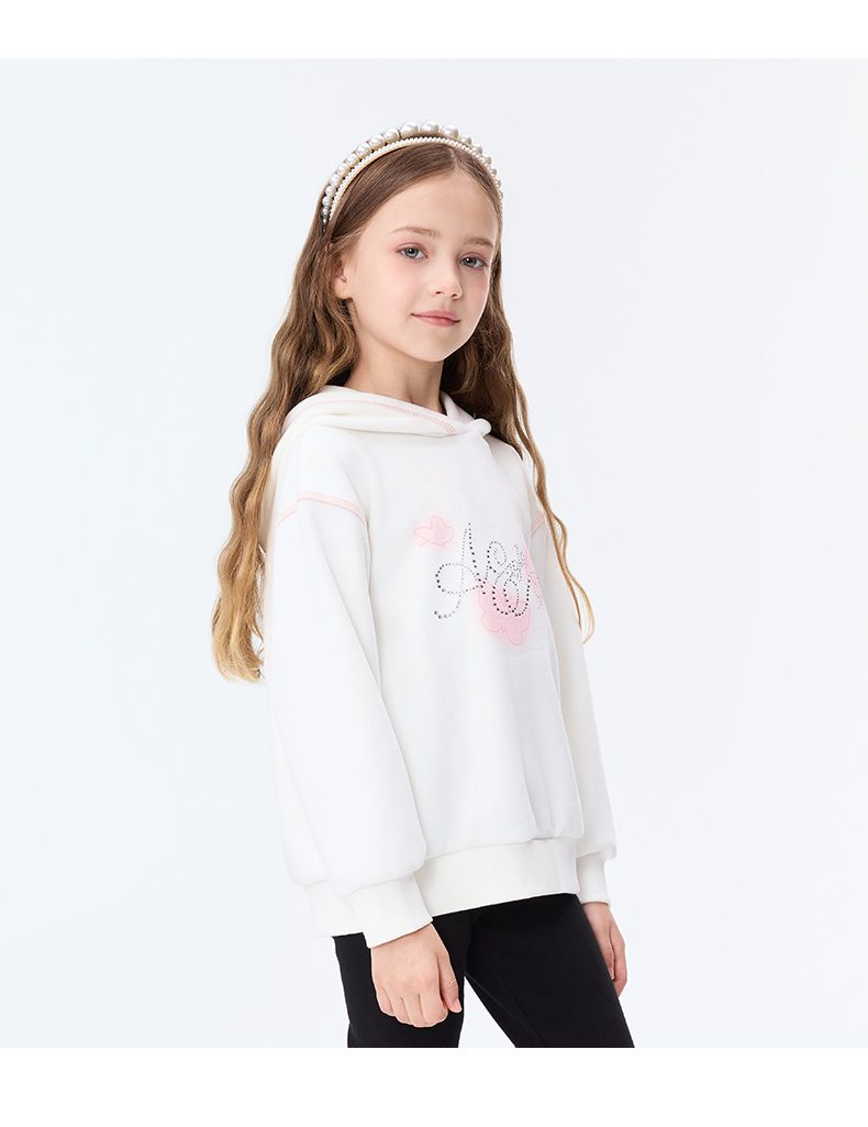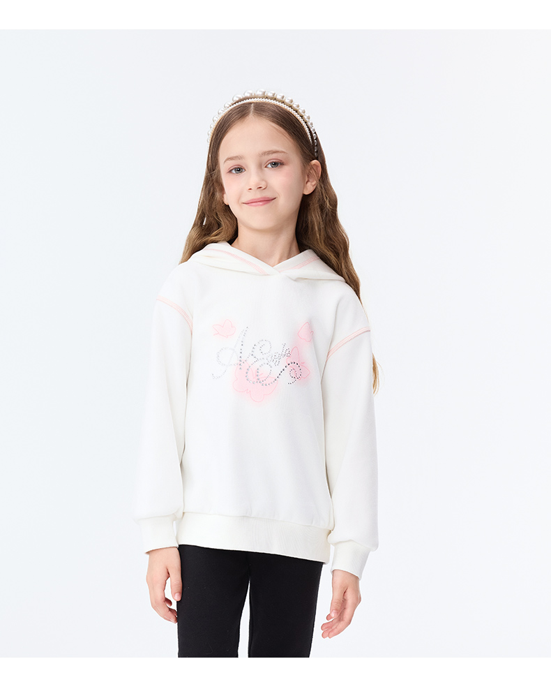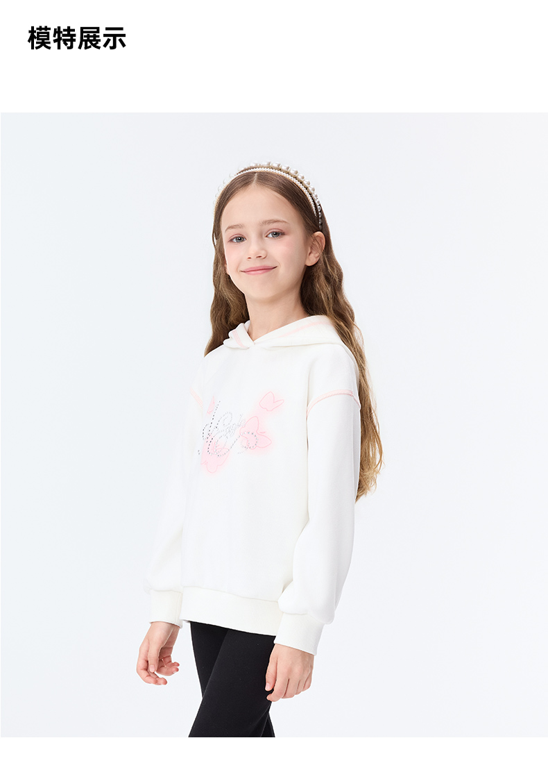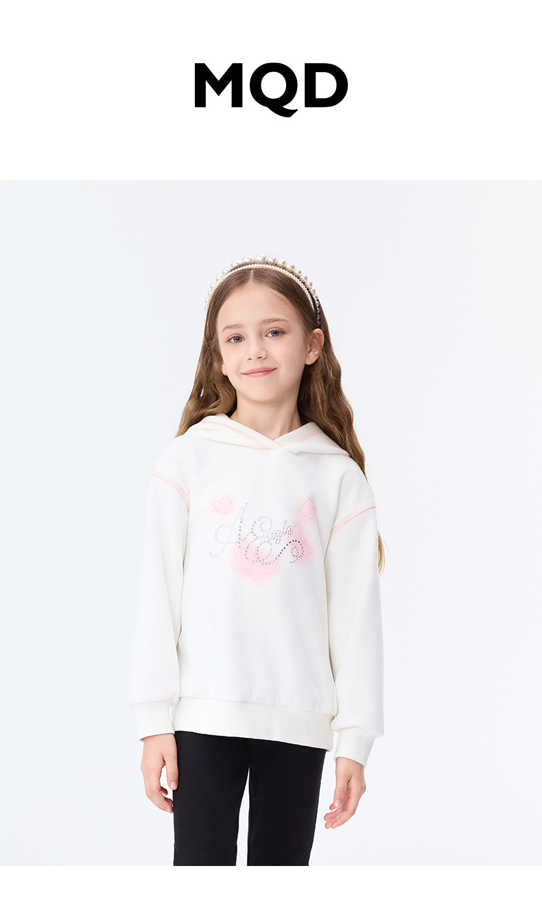 【秒3】【MQD】女童冬季甜美蝴蝶印花休闲连帽卫衣