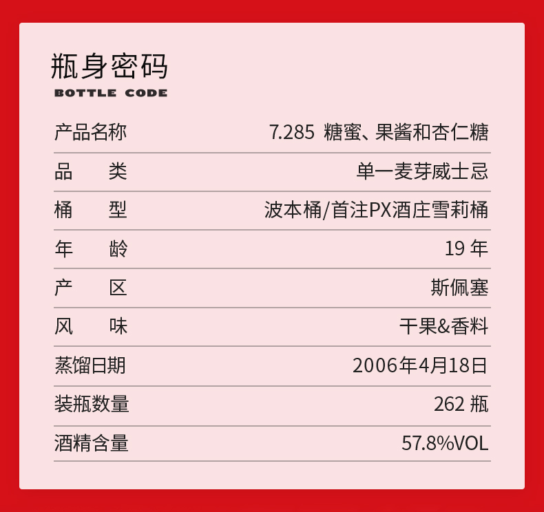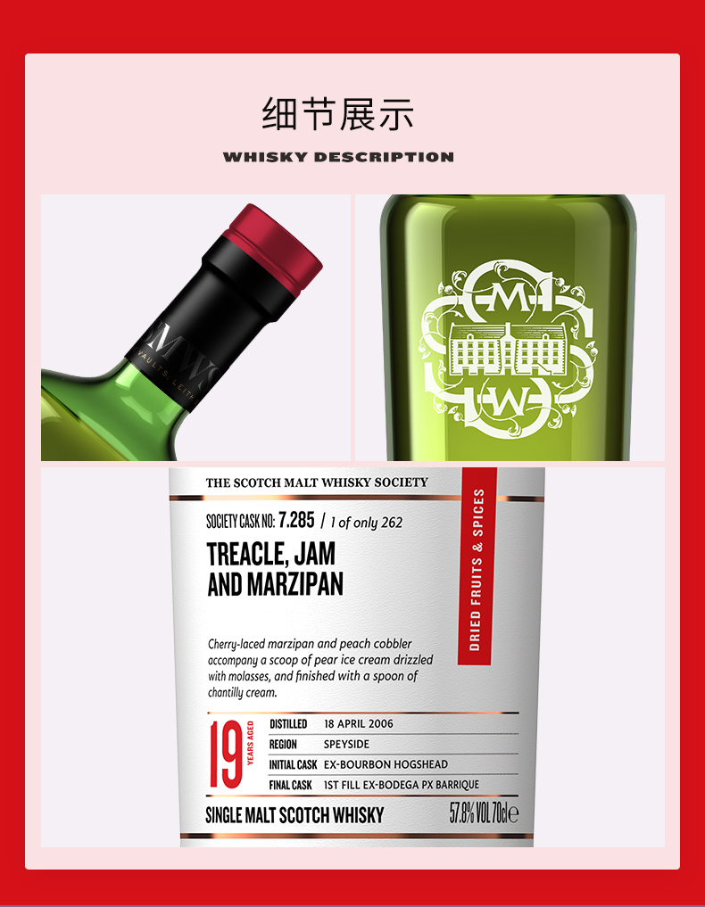 【SMWS】 7.285 糖蜜、果酱和杏仁糖 19年 单一麦芽 威士忌
