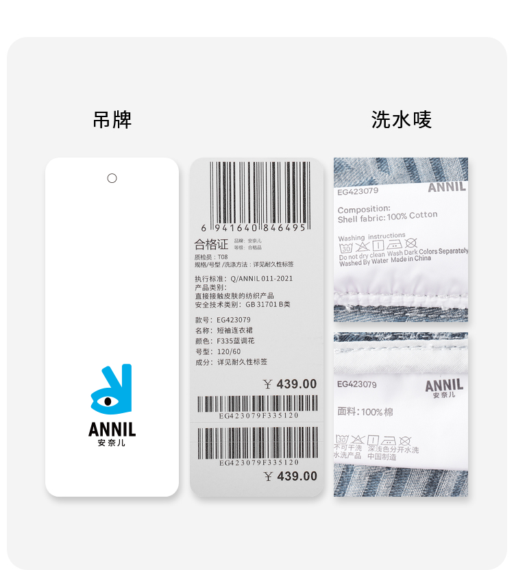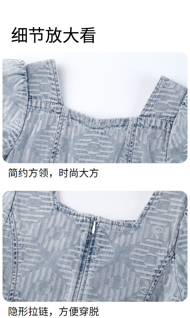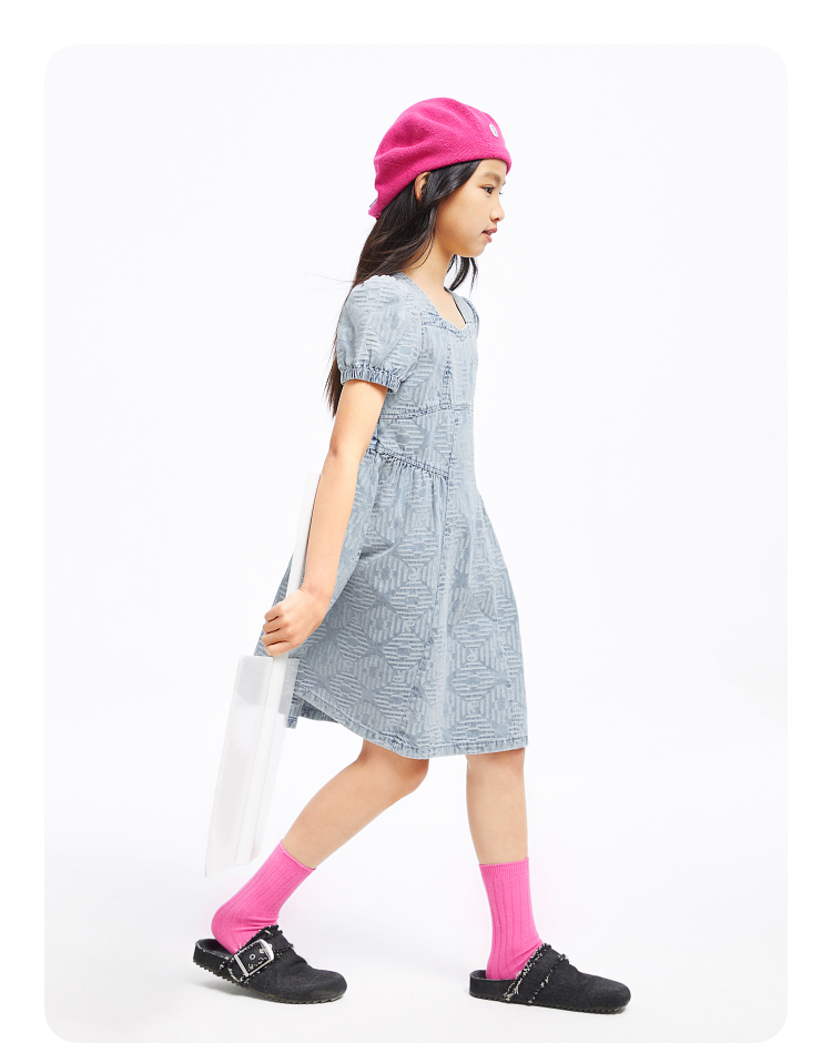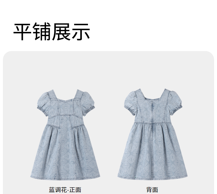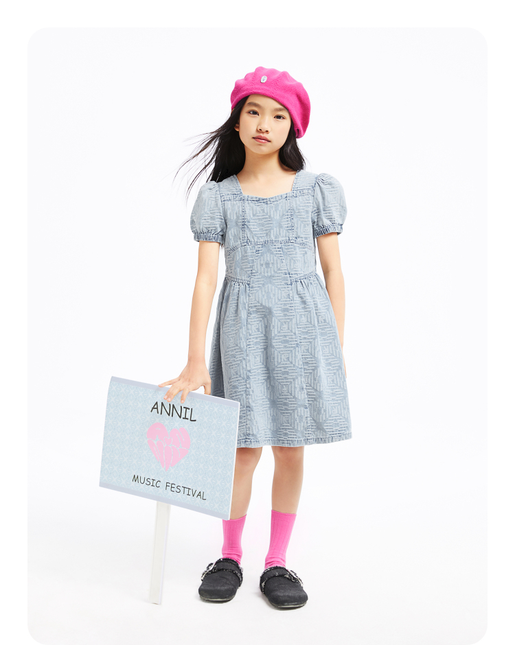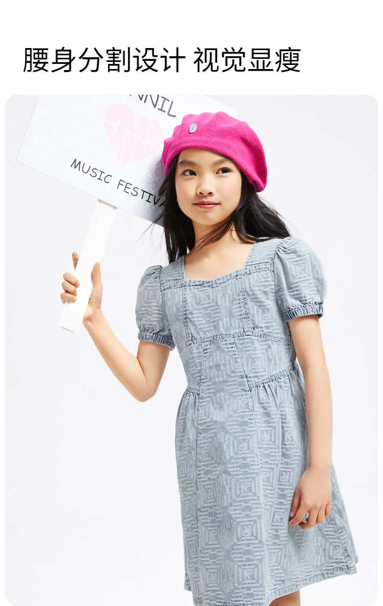 女童牛仔连衣裙新款夏纯棉简约纯色提花公主裙子安奈儿童装EG423079