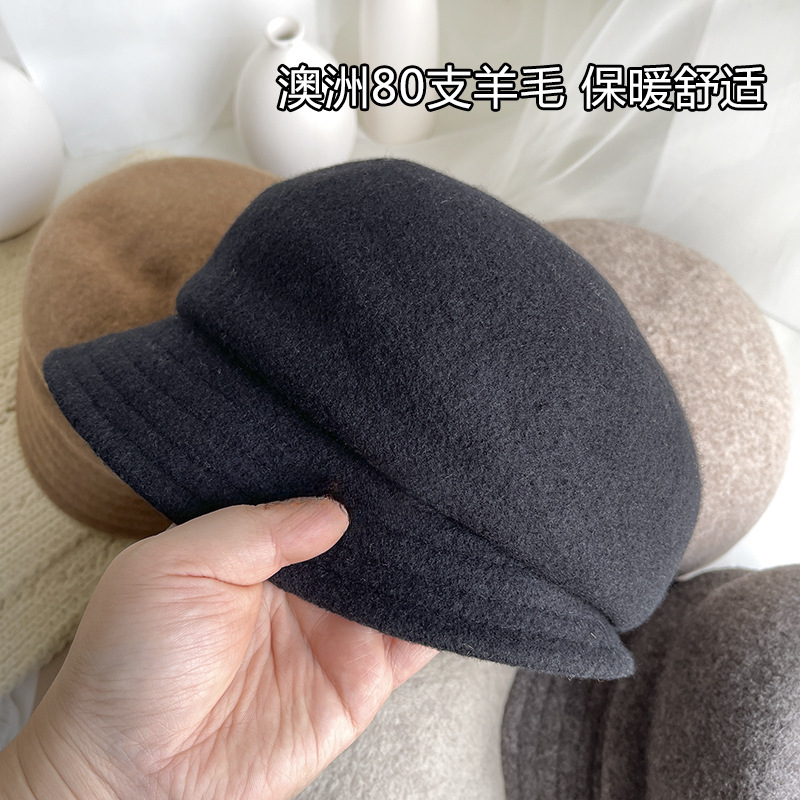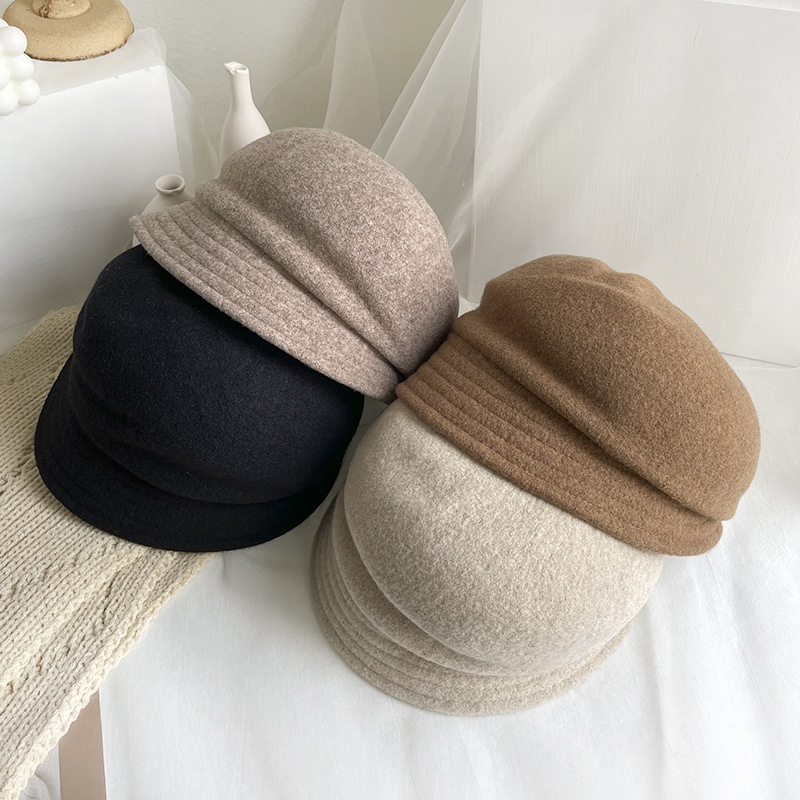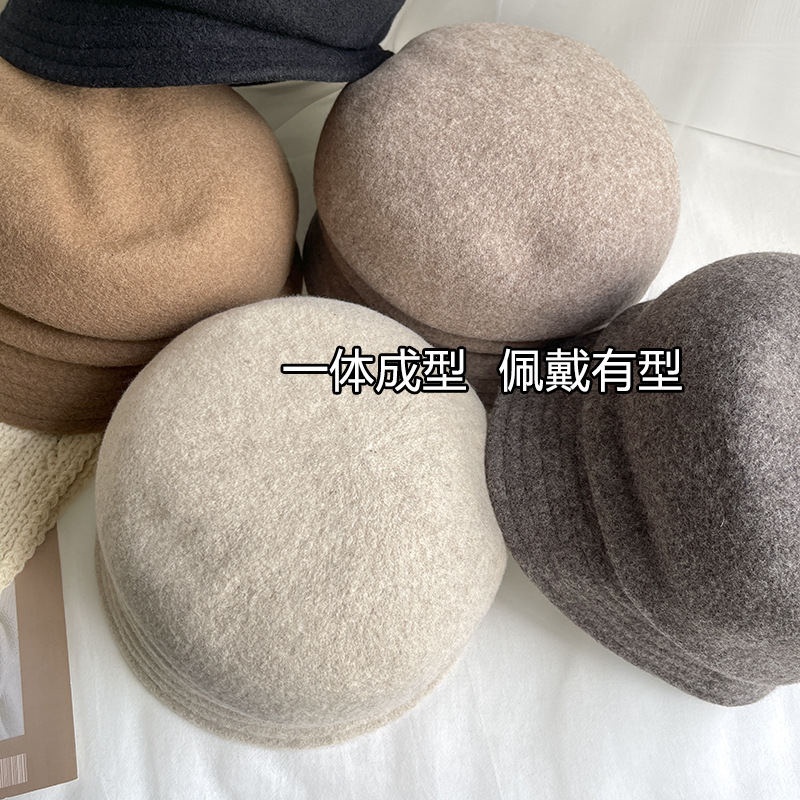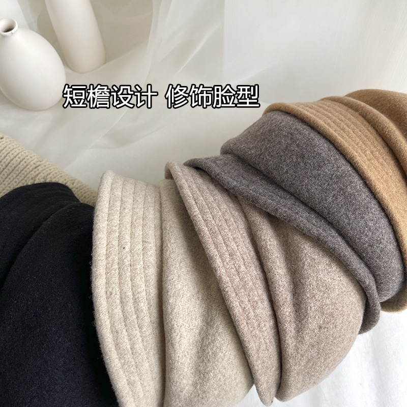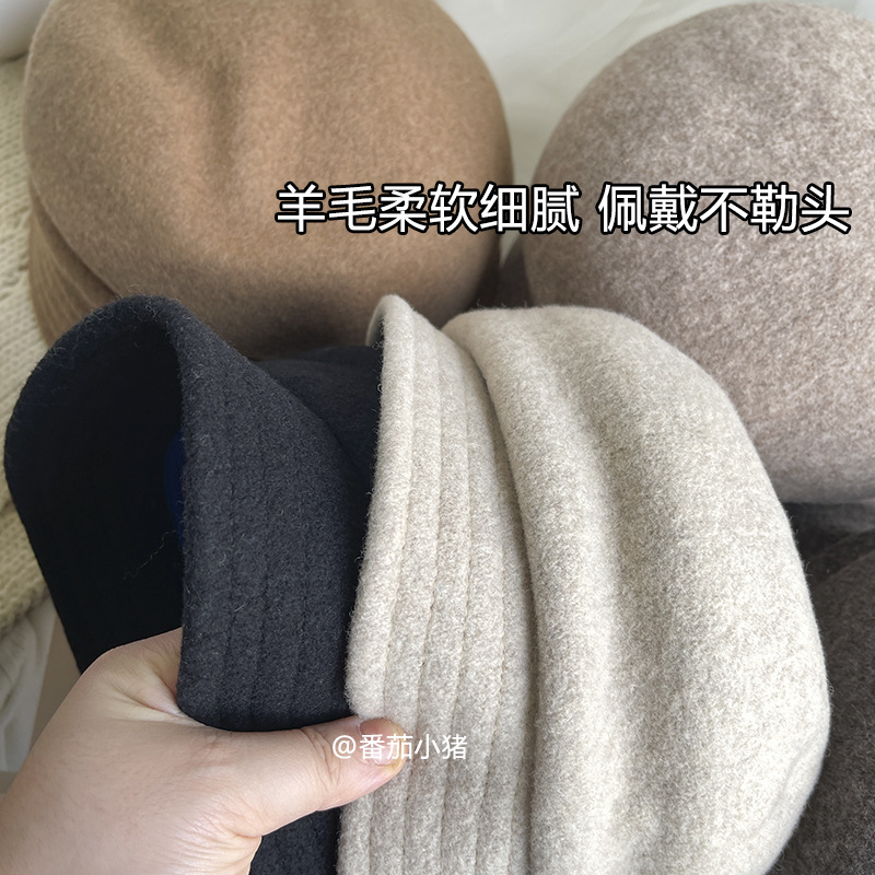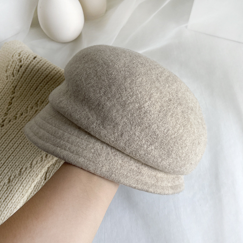 日系羊毛呢短檐贝雷帽,优雅盆帽时尚礼帽冬季保暖画家帽复古潮LJX-XY042