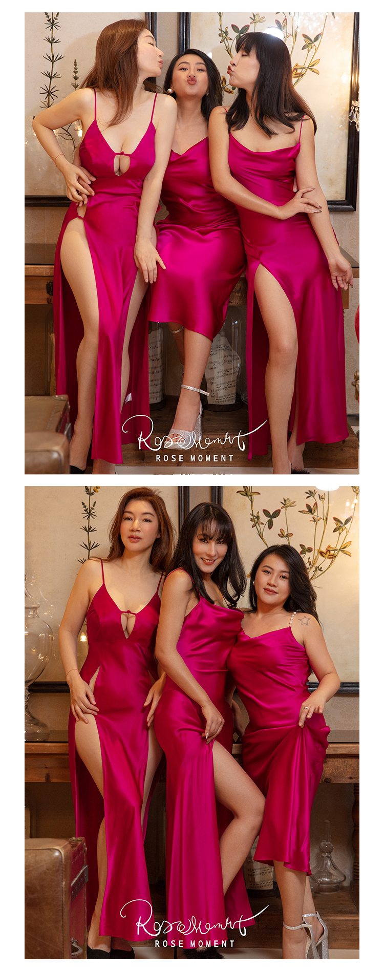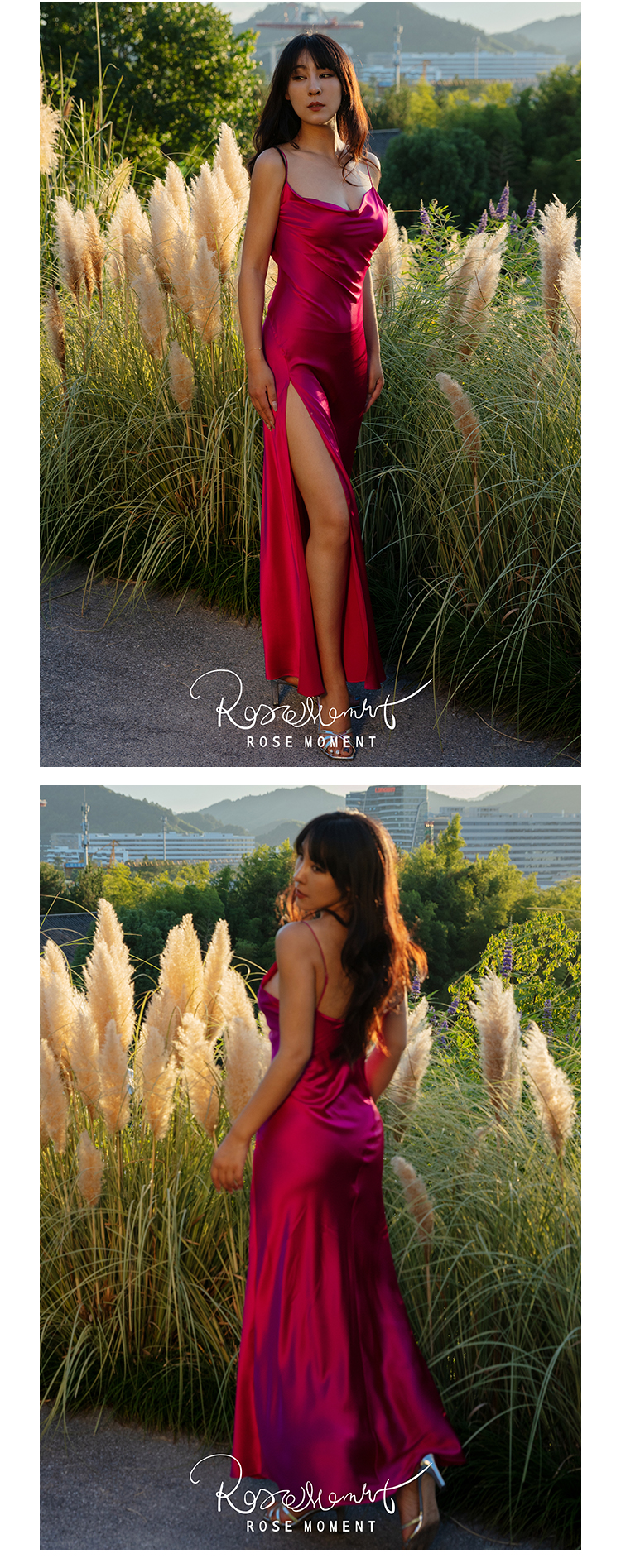 氛围感荡领真丝侧开叉长裙 A230801