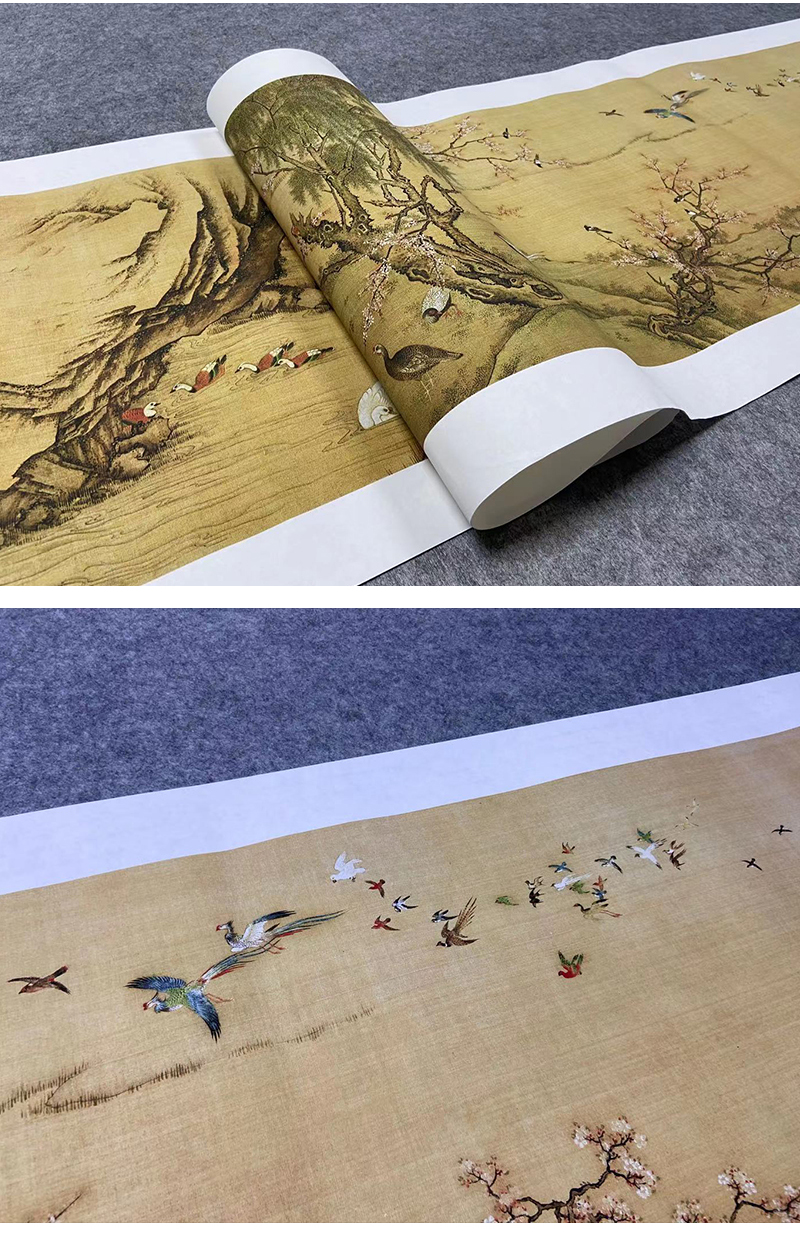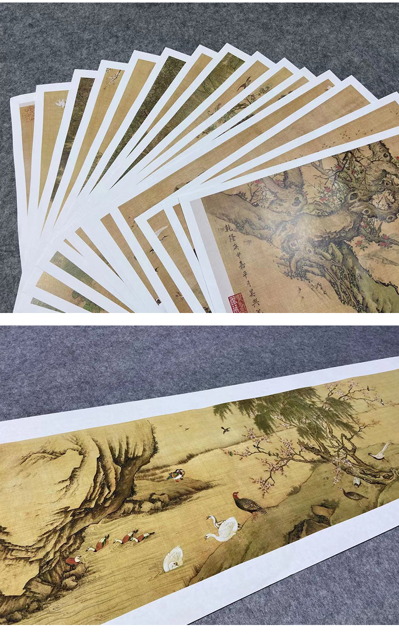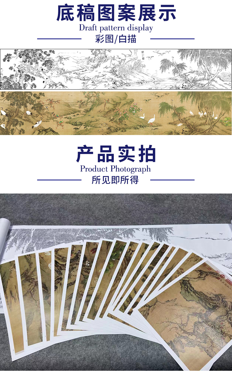 【长卷】工笔花鸟画白描底稿古画长卷沈铨《百鸟朝凤图》多种白描尺寸可选G041