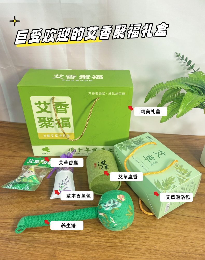 【品名】艾香聚福礼盒 【规格】艾草泡浴包+艾草盘香+艾草香囊+养生锤+香薰包 【发货地】云仓 【发货快递】随机不指定 【发货时效】48-72小时 【加运费地区】甘肃内蒙青海宁夏+5元 【不发货地区】新疆西藏 港澳台不发 【售后说明】在不影响二次销售的情况下支持7天无理由退货,运费自理