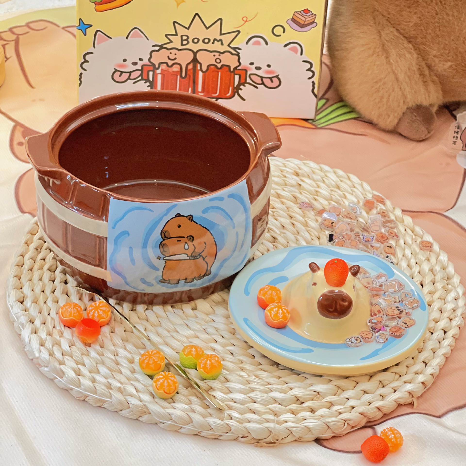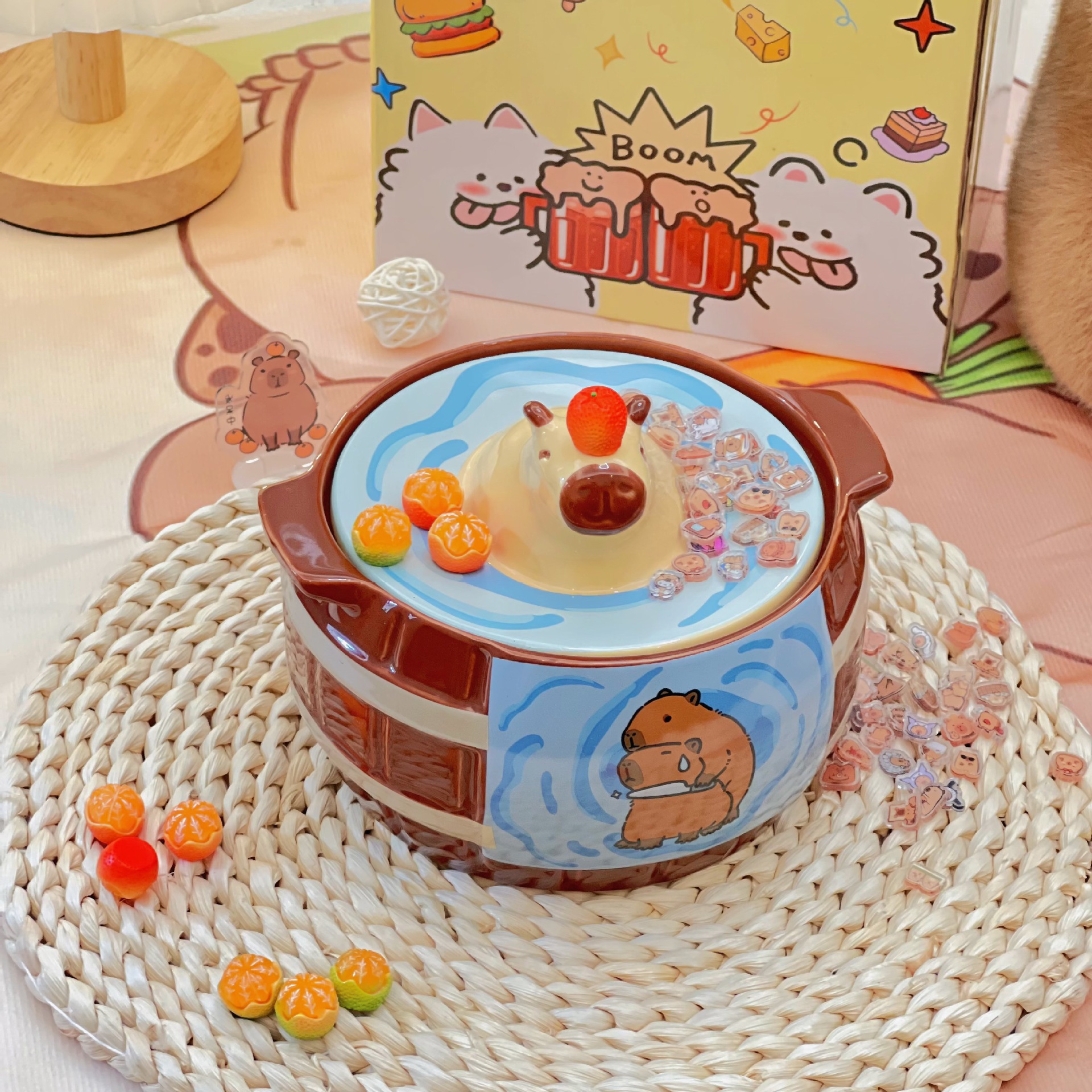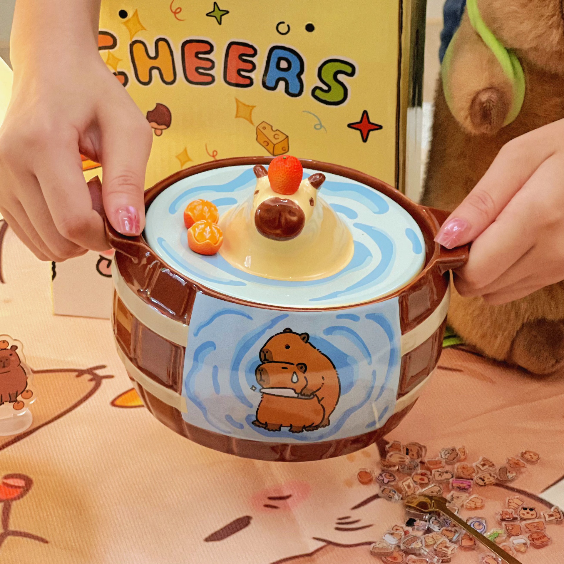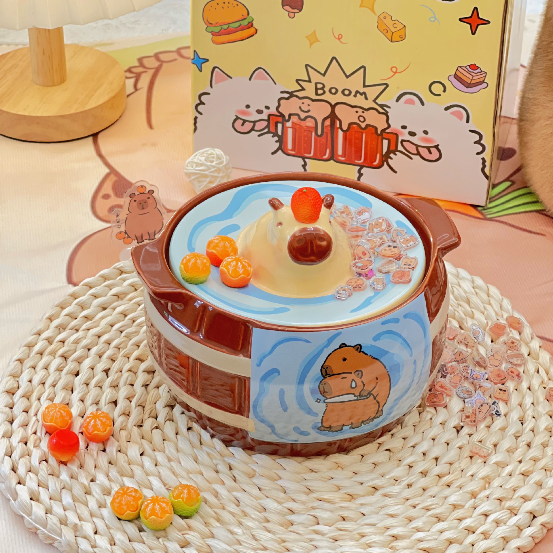 【小众高颜值,干饭神器!】卡皮巴拉泡面碗 大容量带盖陶瓷碗 学生干饭碗小众款 高颜值早餐燕麦-QQ