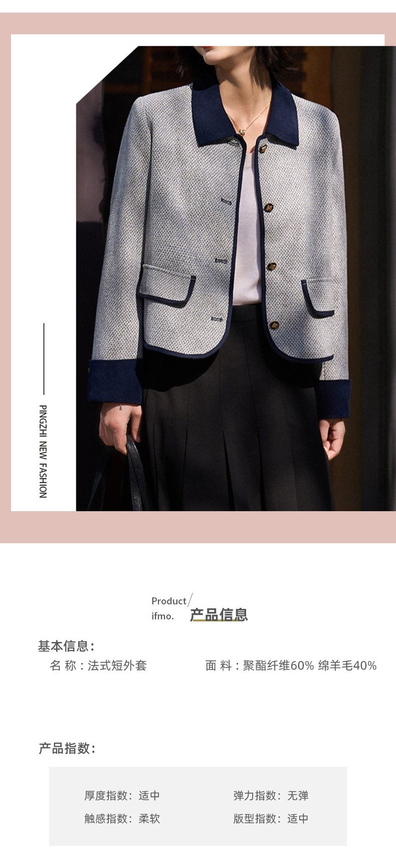 「预售」全新升级【铂金会员321/天猫429/差价108】(90713)洛诗琳羊毛粗花呢外套2026春季新款撞色小香风短外套