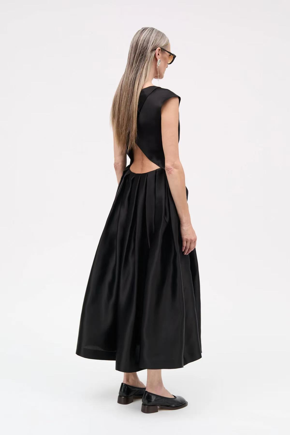 Mark Kenly Domino Tan 26PS 黑色真丝dilia百褶无袖连衣裙