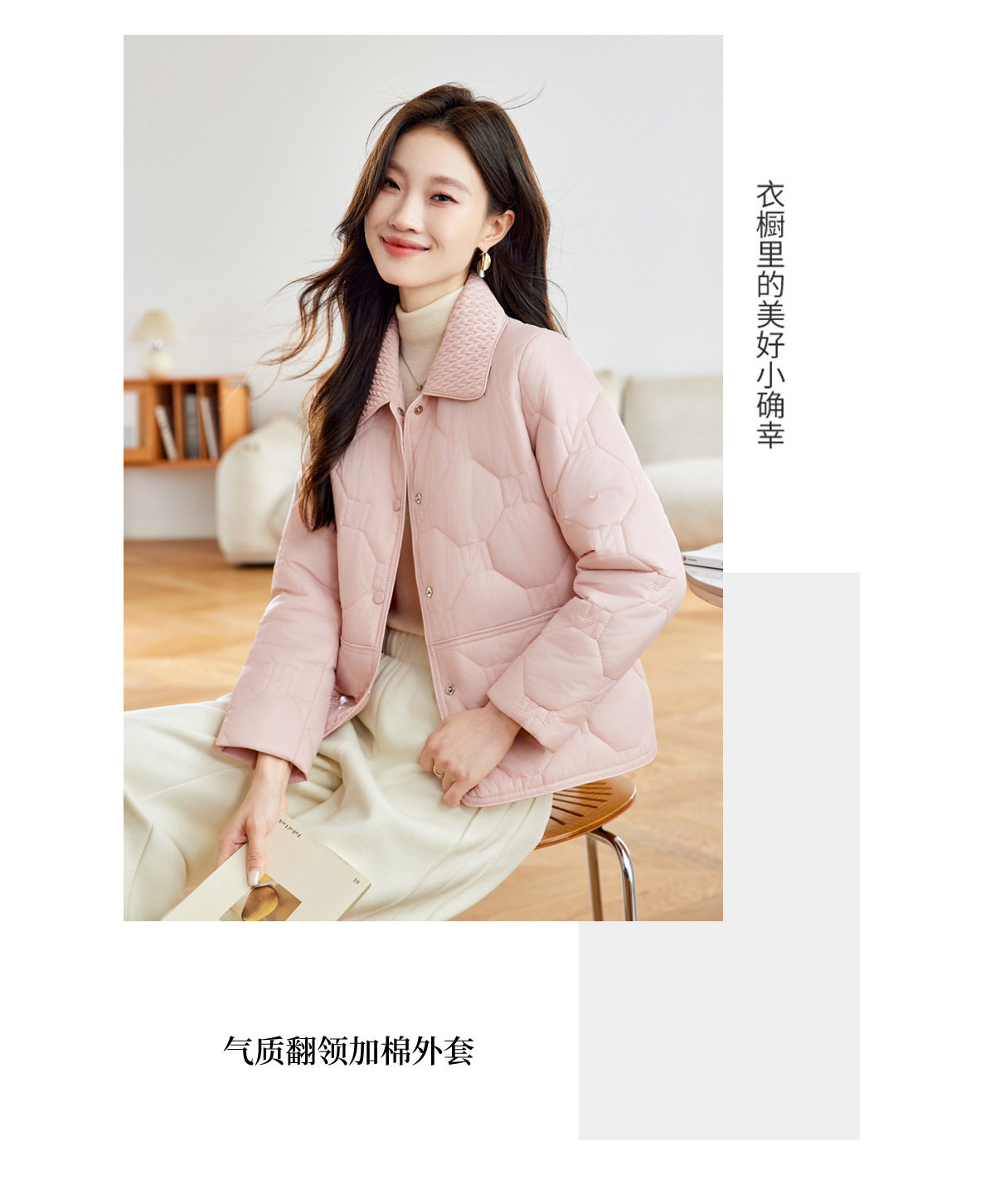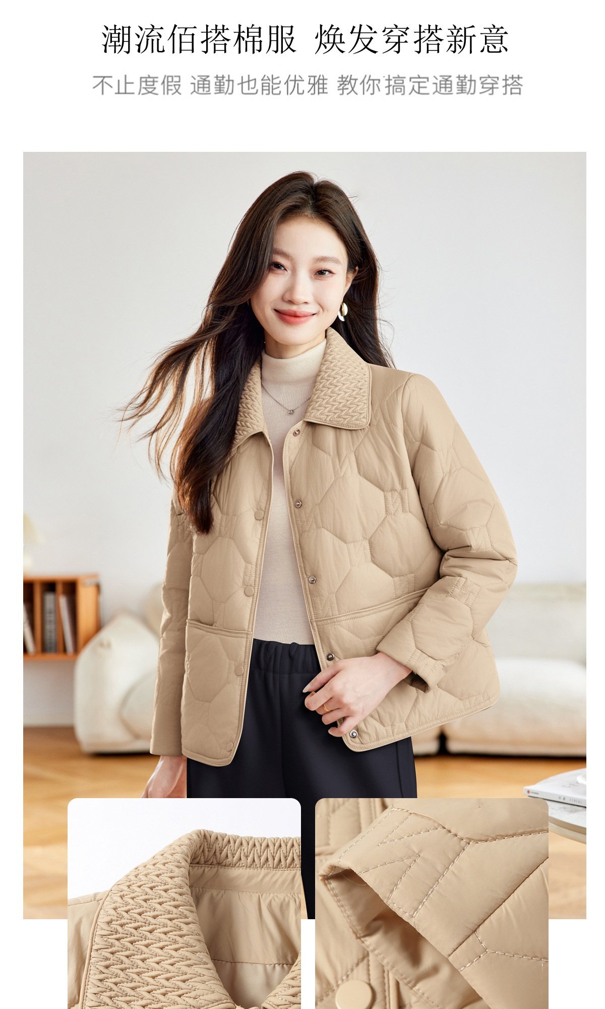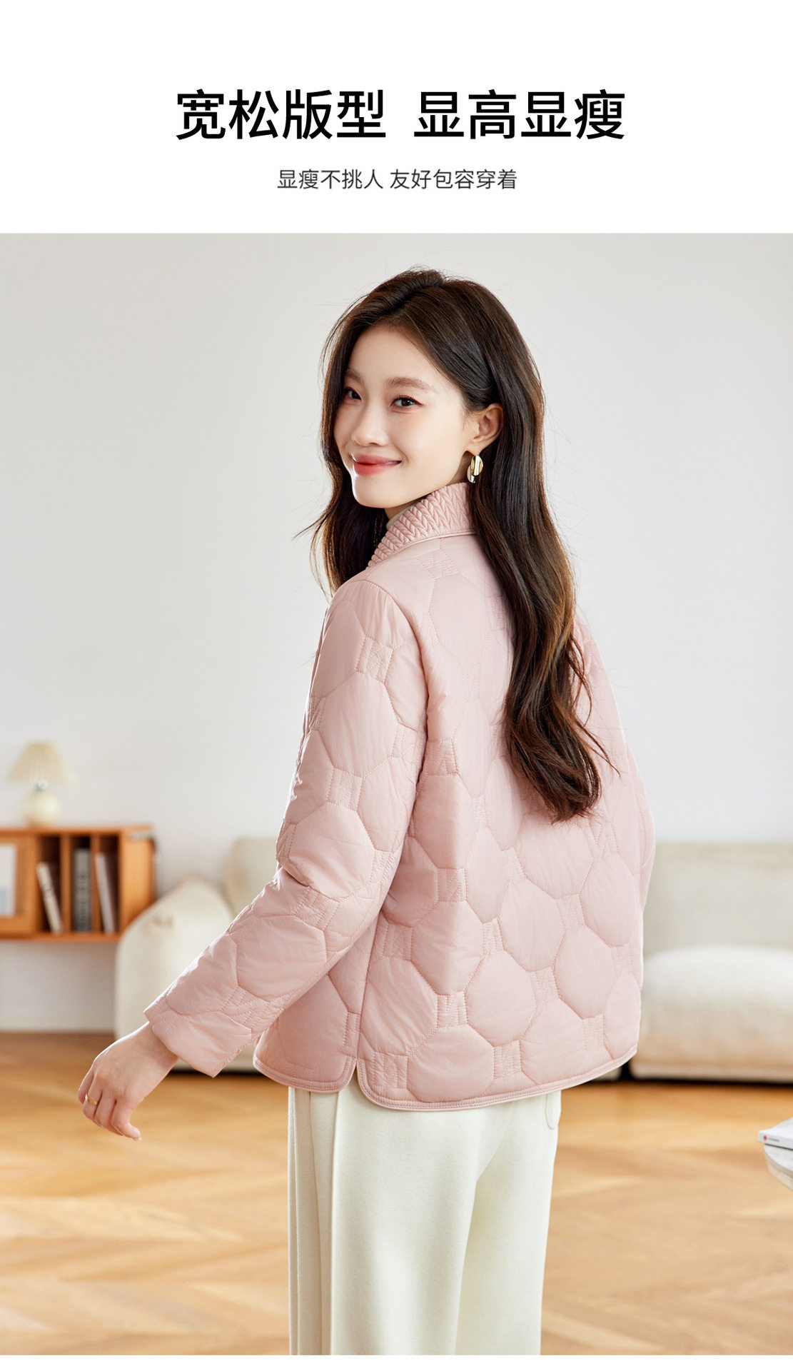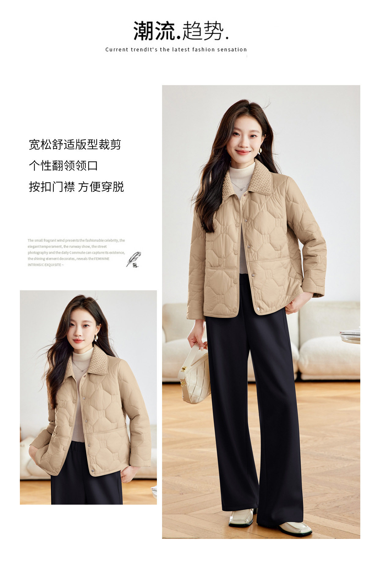 「自」全新升级【铂金会员293/天猫399/差价106】(04408)洛诗琳新款翻领菱格外套2026春季小个子短款轻薄夹棉外套