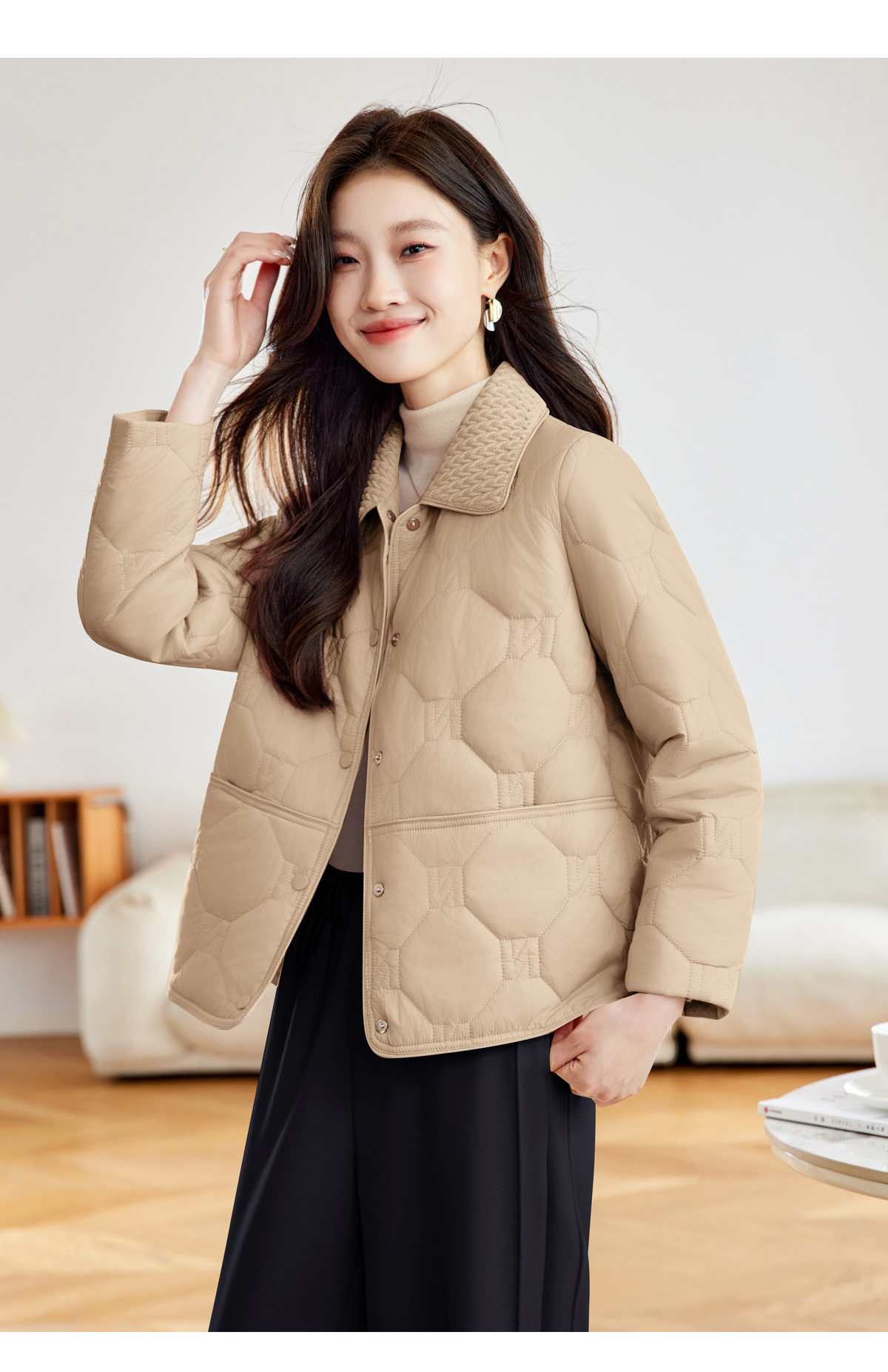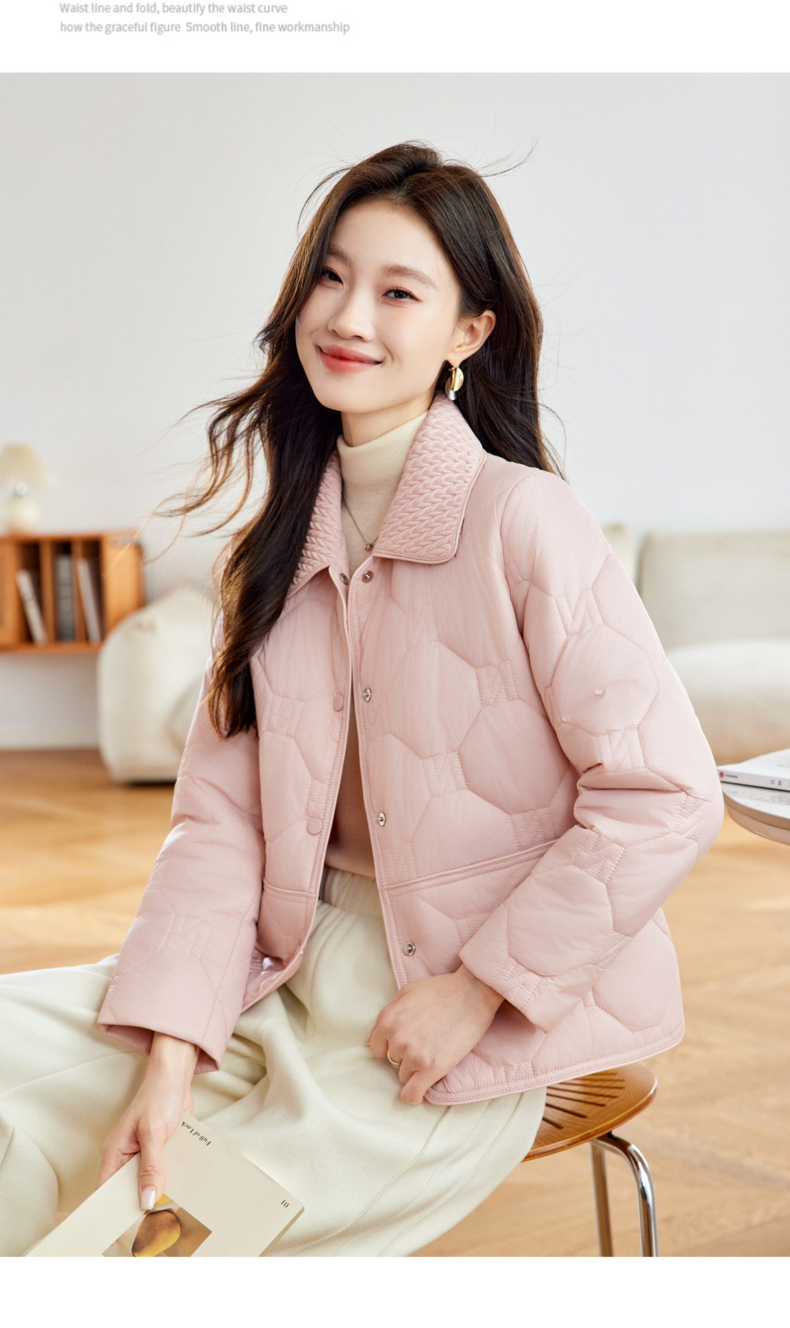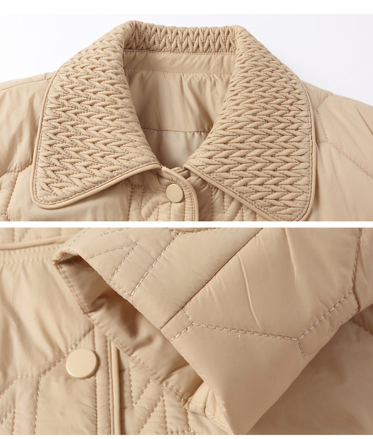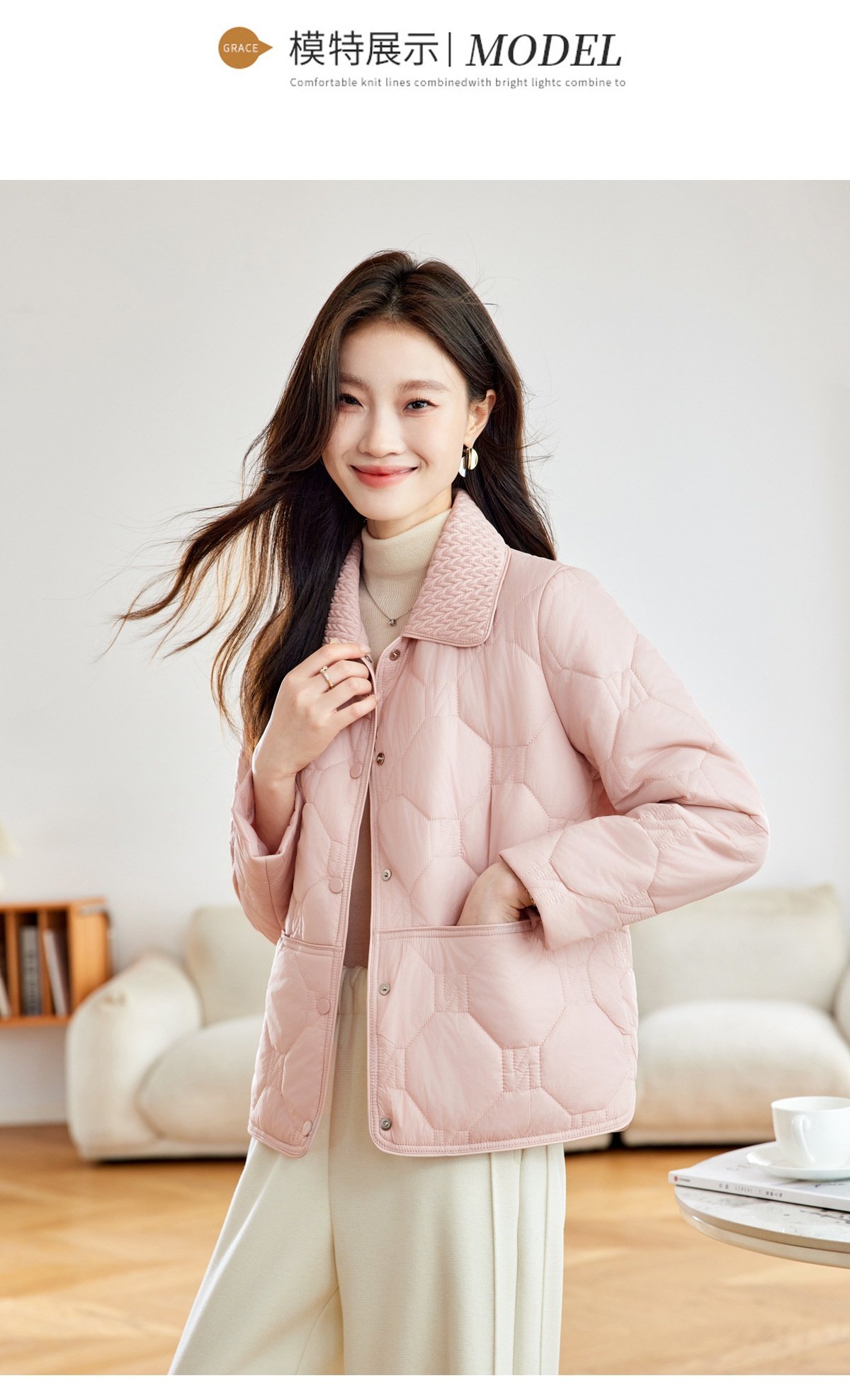 「自」全新升级【铂金会员293/天猫399/差价106】(04408)洛诗琳新款翻领菱格外套2026春季小个子短款轻薄夹棉外套