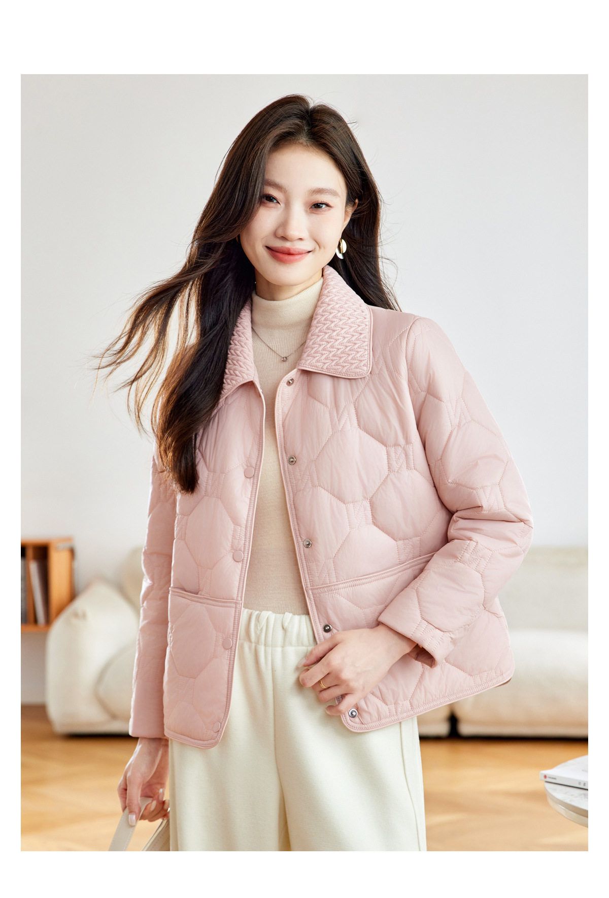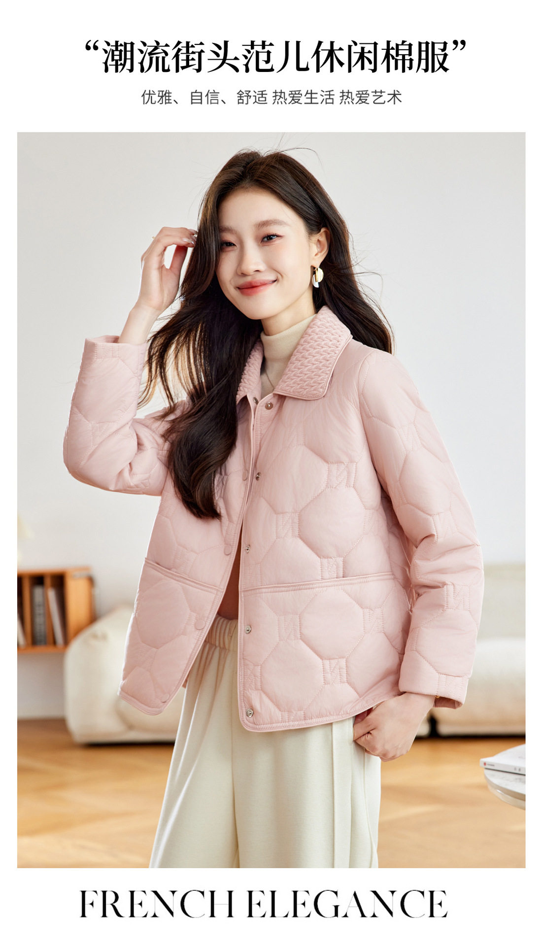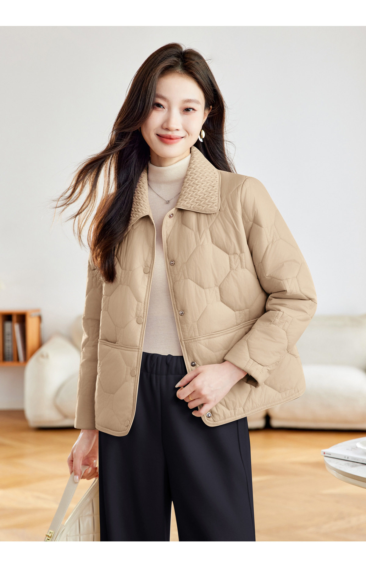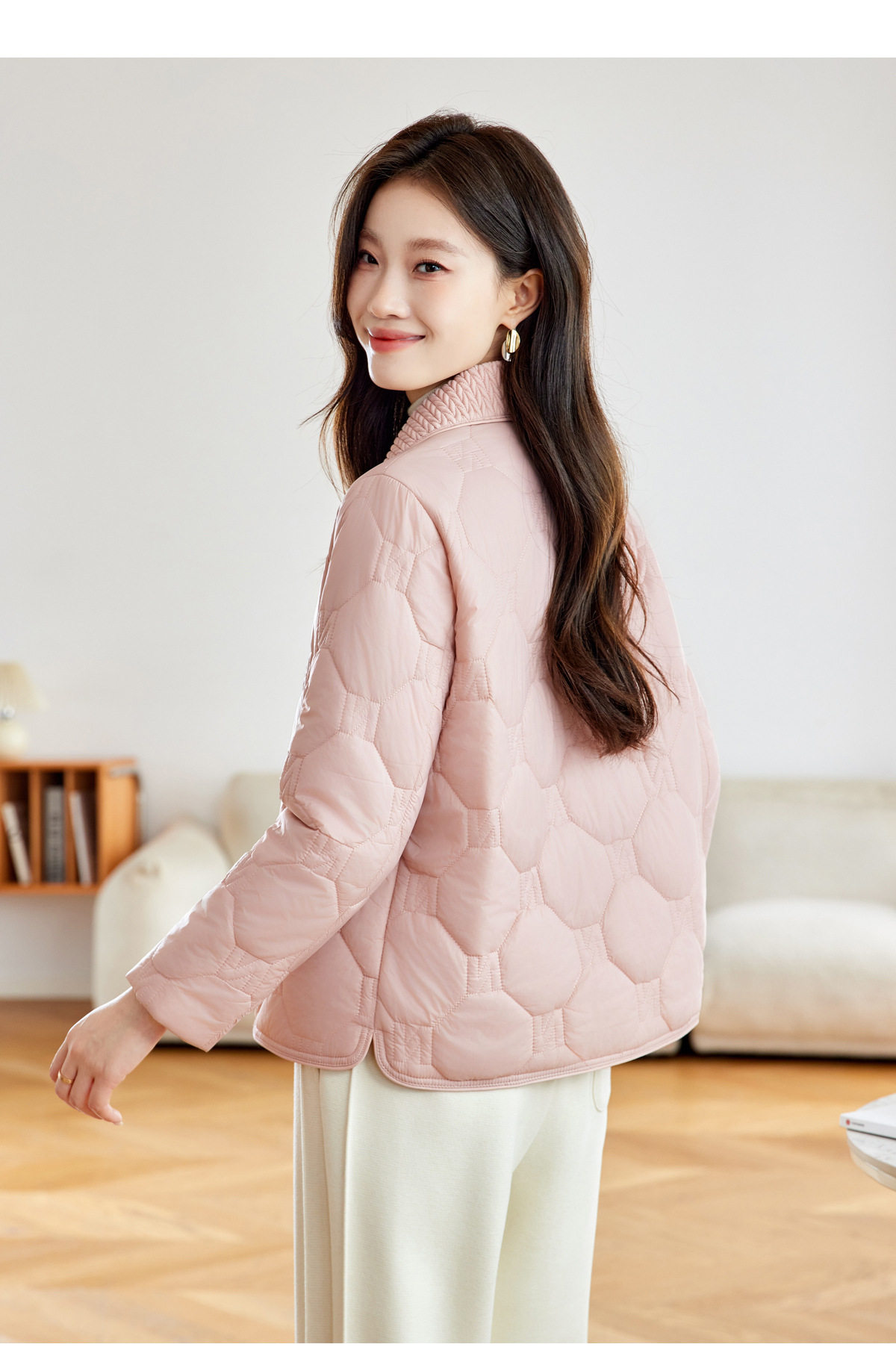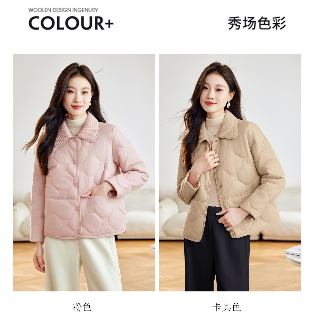 「自」全新升级【铂金会员293/天猫399/差价106】(04408)洛诗琳新款翻领菱格外套2026春季小个子短款轻薄夹棉外套