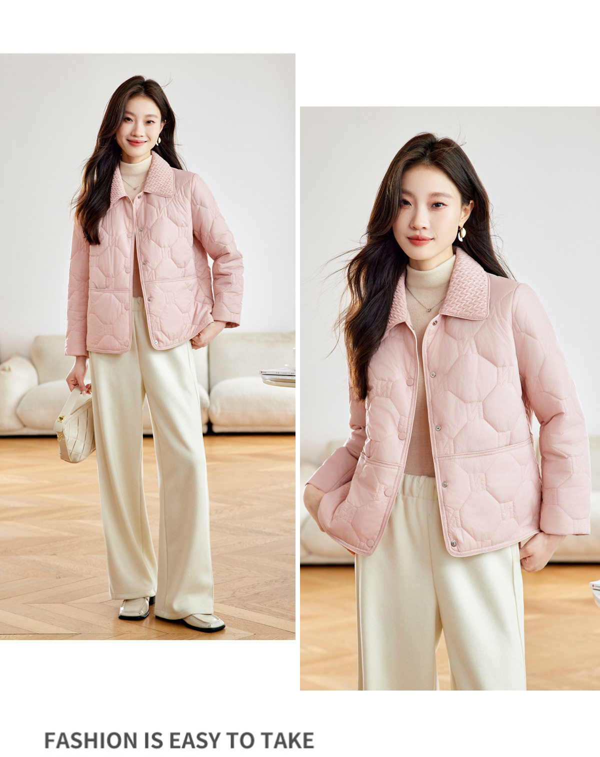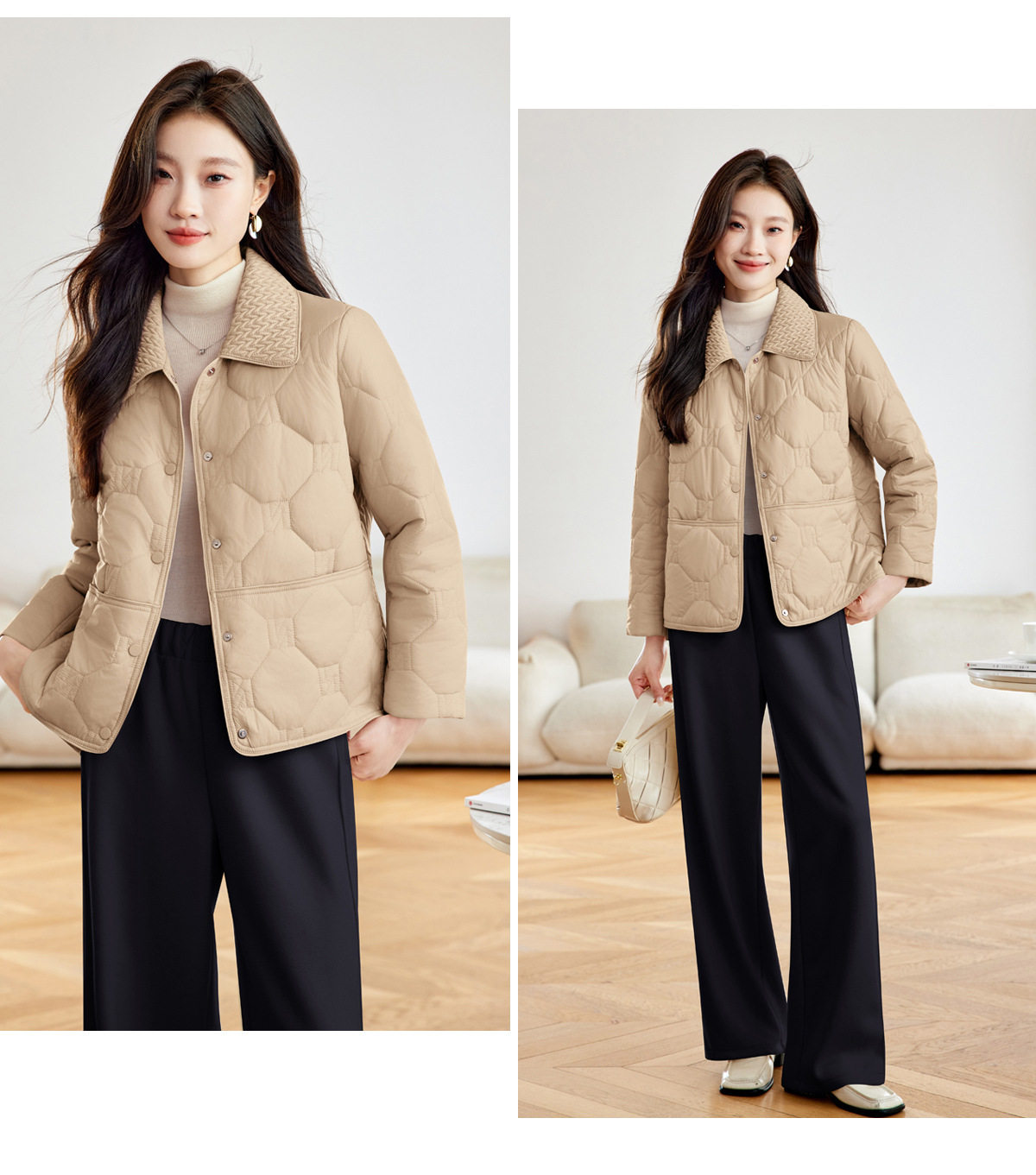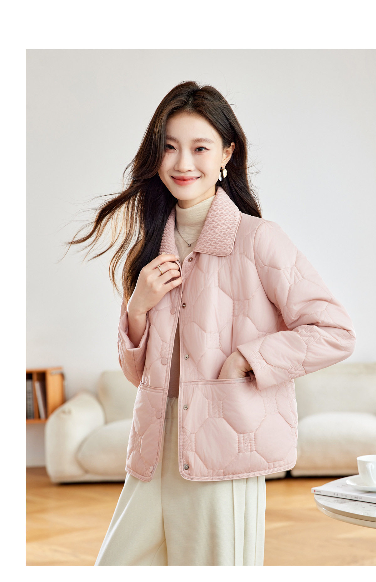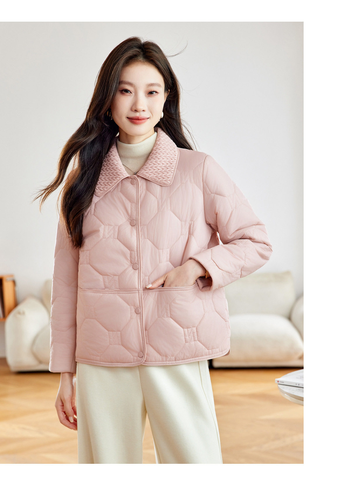 「自」全新升级【铂金会员293/天猫399/差价106】(04408)洛诗琳新款翻领菱格外套2026春季小个子短款轻薄夹棉外套
