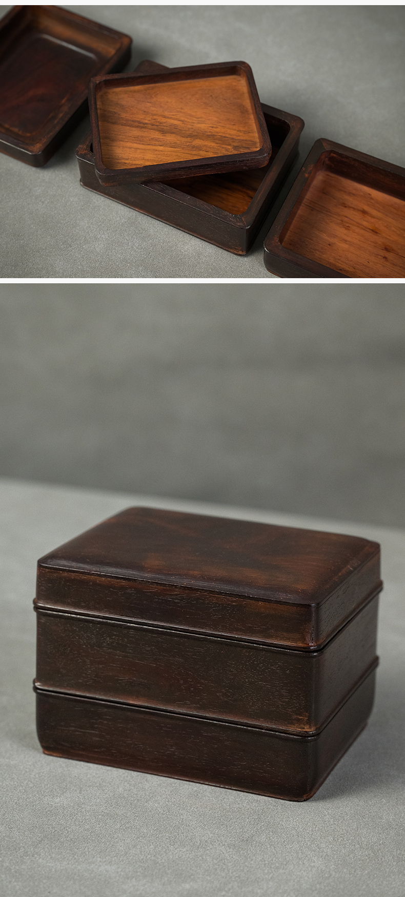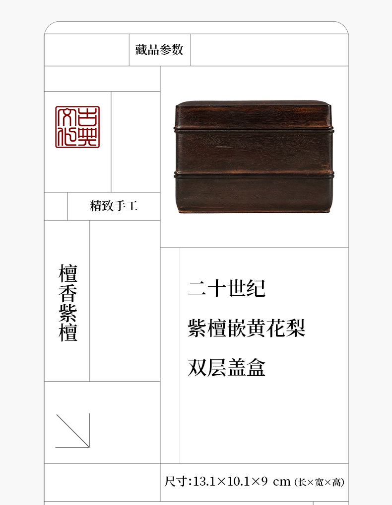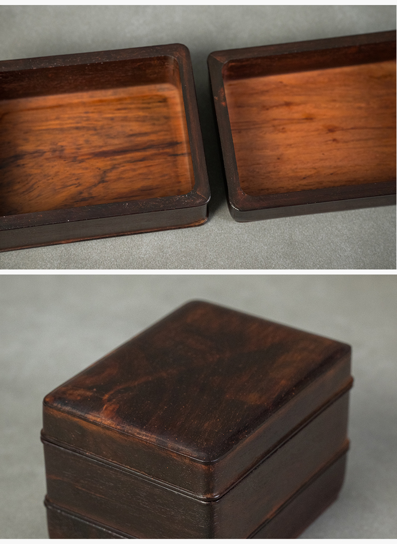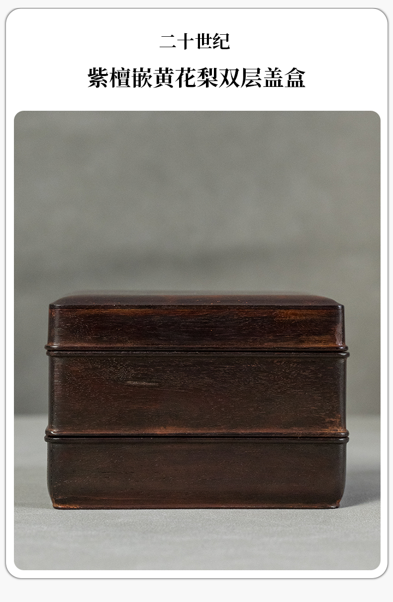 二十世纪 紫檀嵌黄花梨双层盖盒